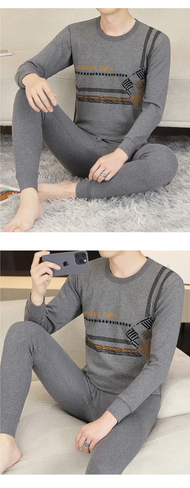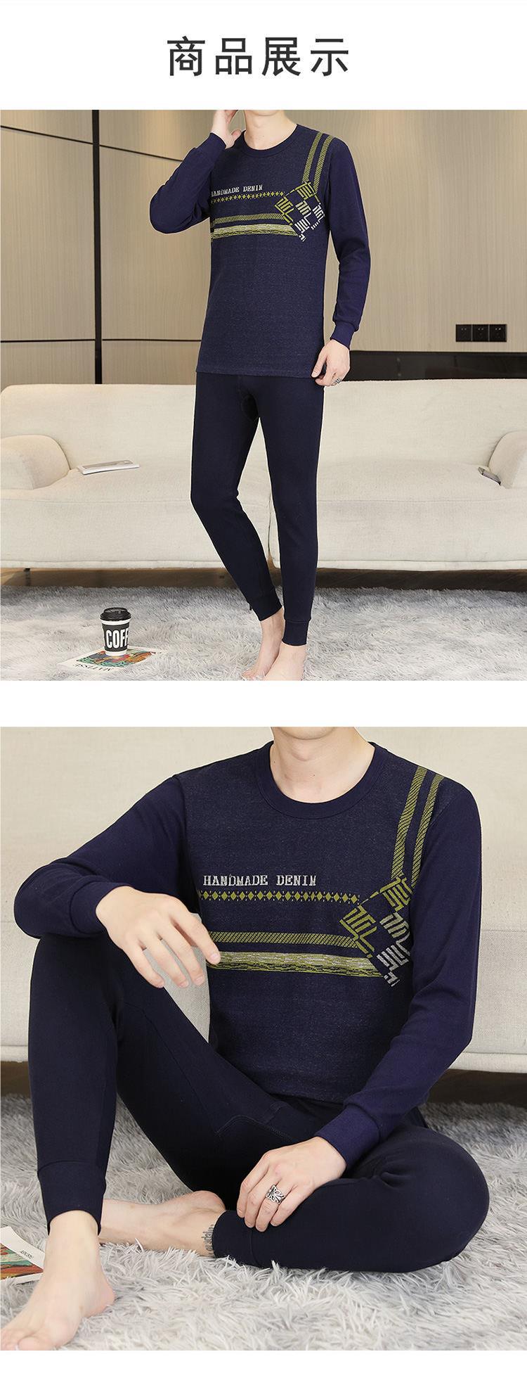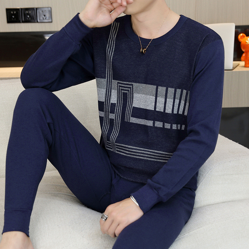 가을 옷과 바지 순수한 면화 세트 남자의 봄과 가을 겨울베이스 속옷 둥근 목 자카드 따뜻한 중년 및 젊은 면화 스웨터