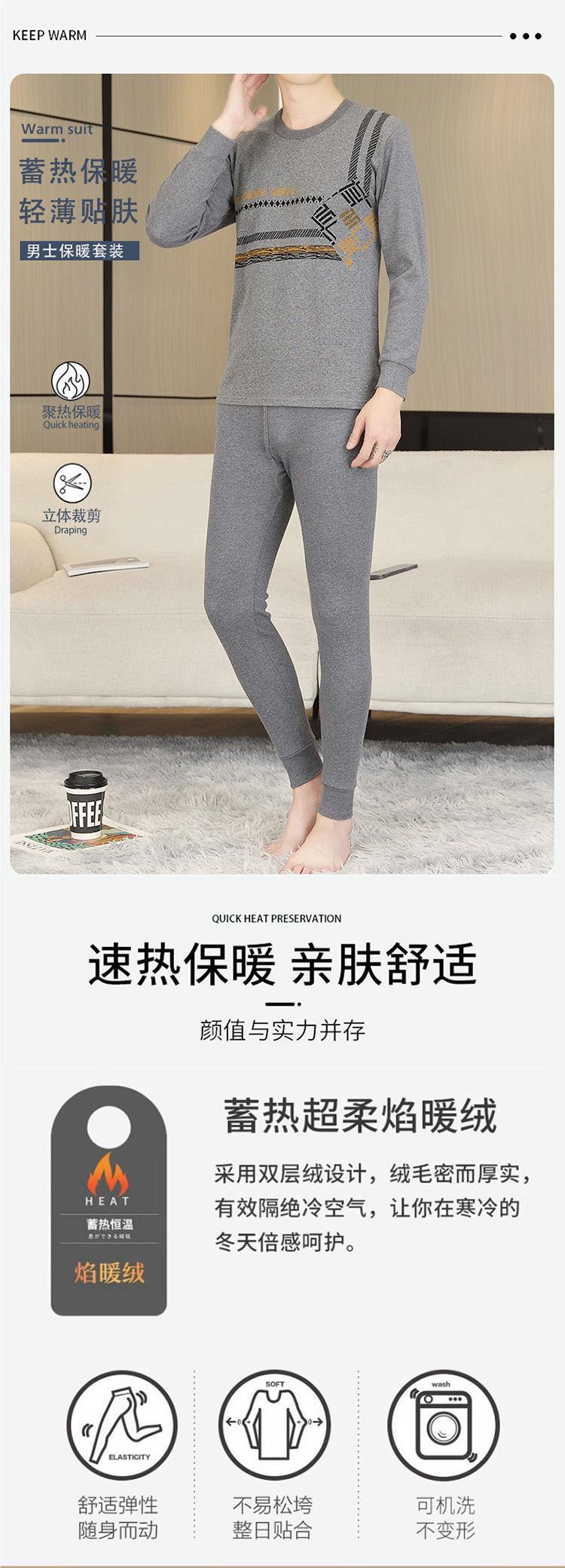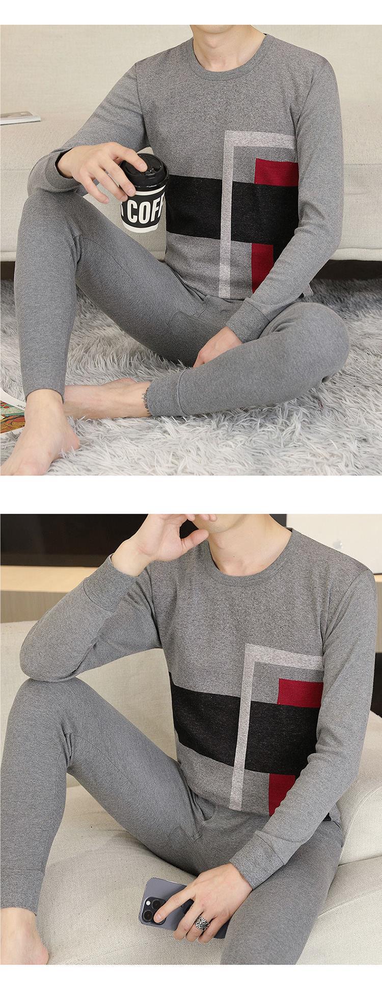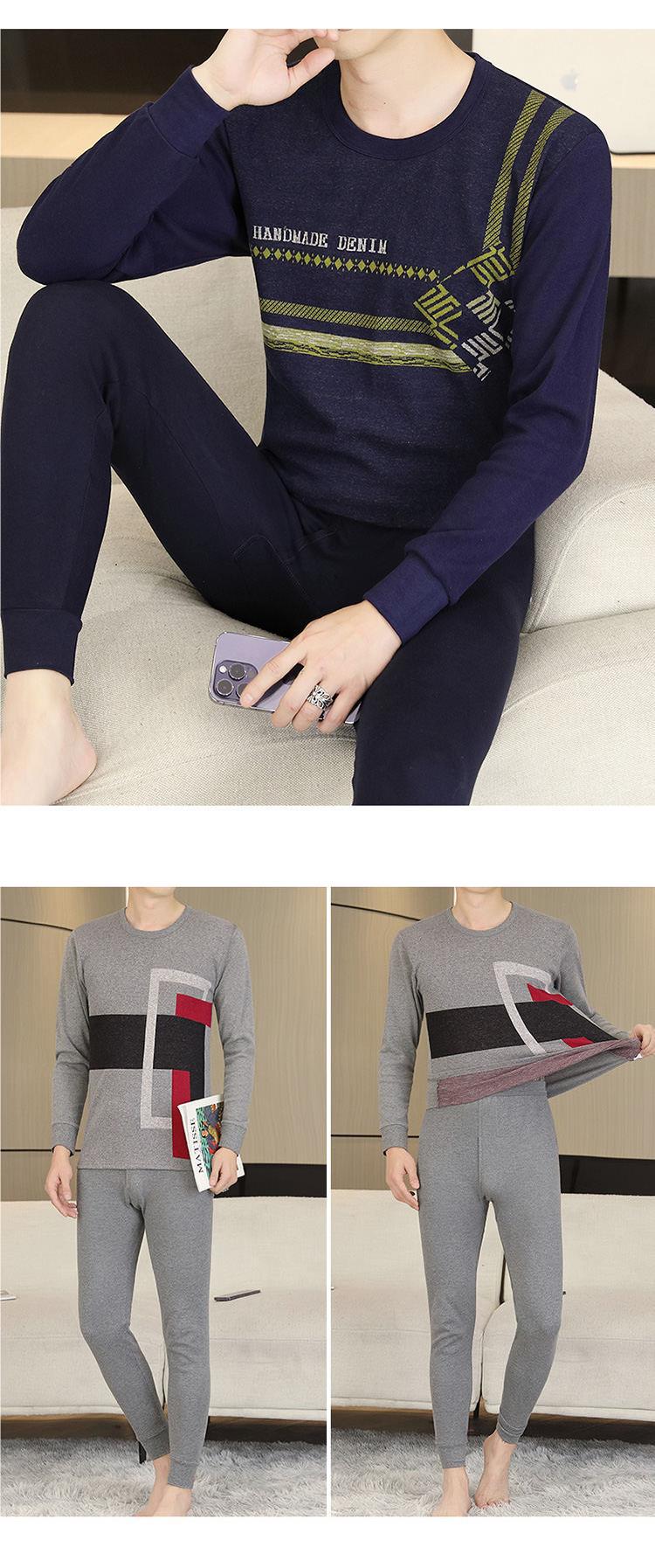가을 옷과 바지 순수한 면화 세트 남자의 봄과 가을 겨울베이스 속옷 둥근 목 자카드 따뜻한 중년 및 젊은 면화 스웨터