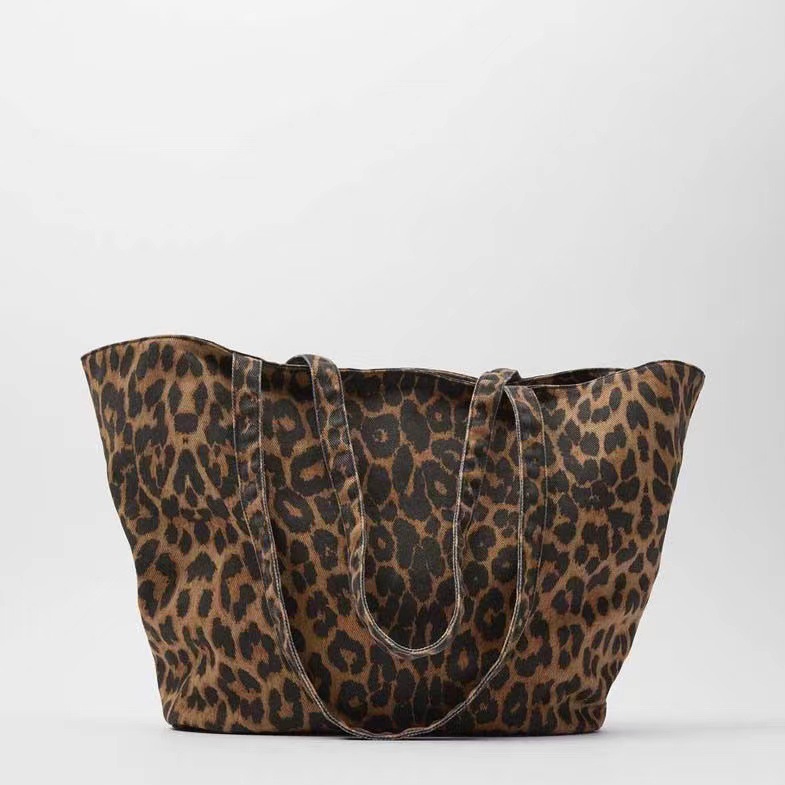 봄 새로운 표범 어깨 가방 토트 백 슈퍼 인 무료 스타일 대용량 쇼핑백 대학생 과외 가방