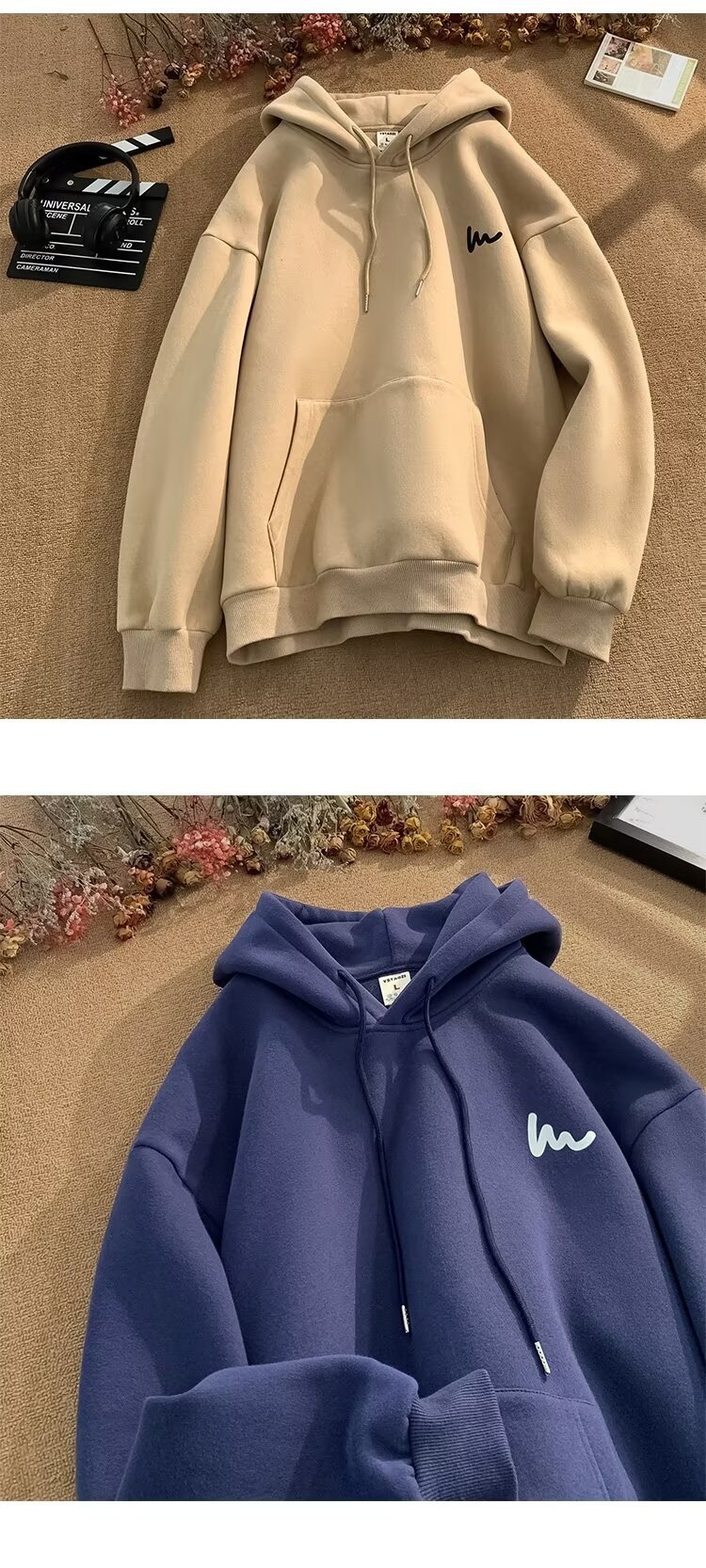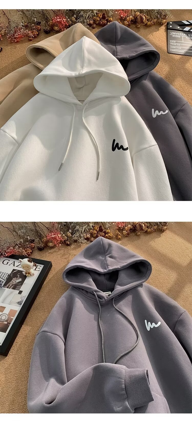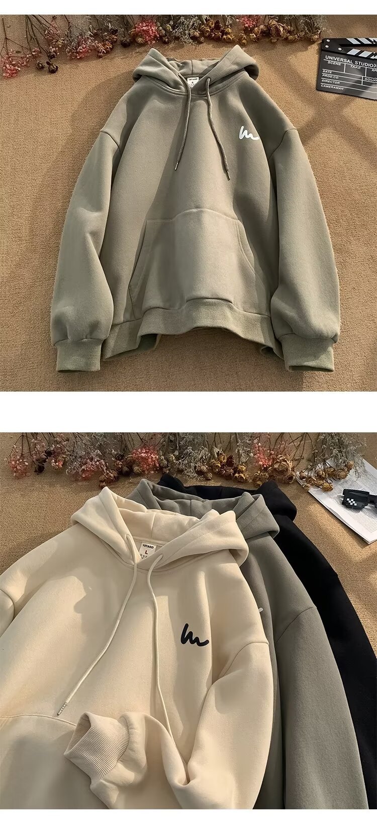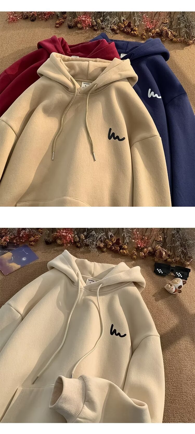 250g 헤비 후드 스웨터 남자 가을과 겨울 2024 새로운 느슨한 미국 가을 소년 후드 남성 코트