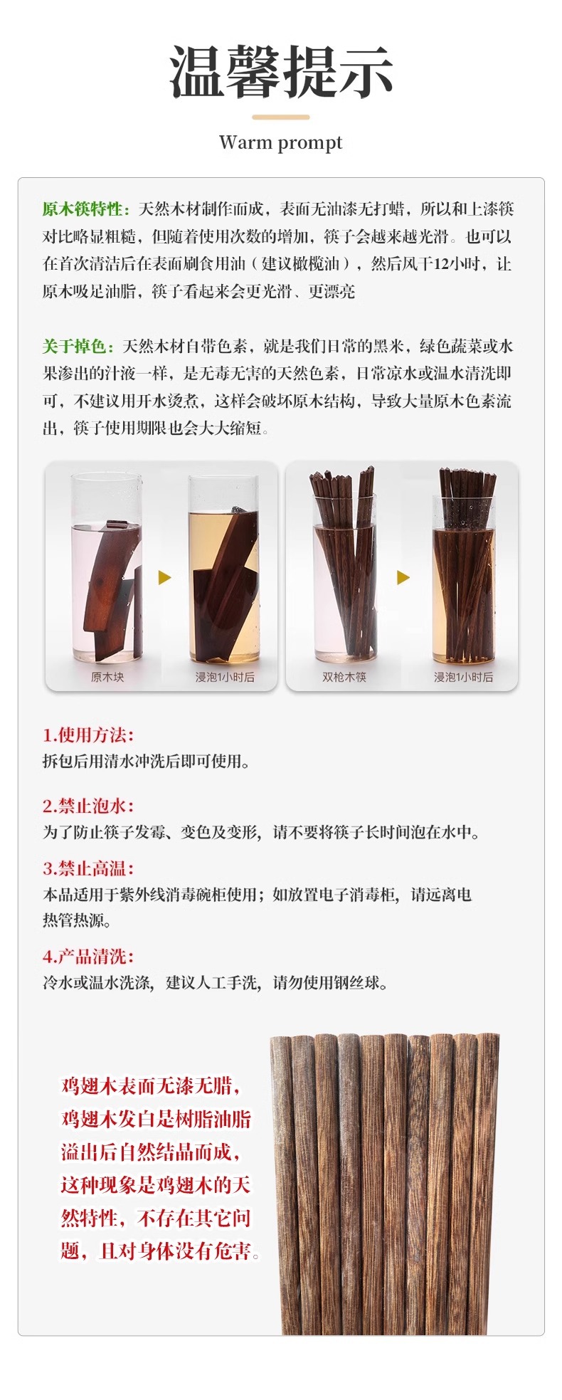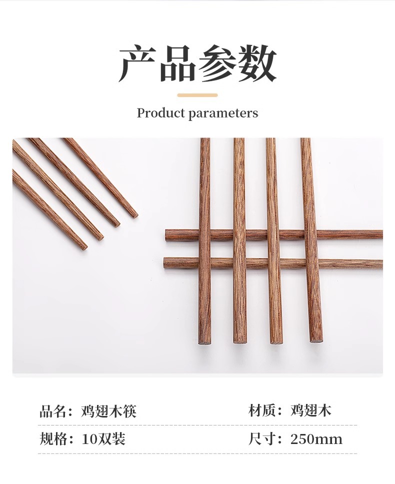 가정용 닭 날개 나무 식기 젓가락 단단한 나무 두꺼운 페인트 없음 왁스 없음 화상 방지 곰팡이 방지 고온 건강 내구성