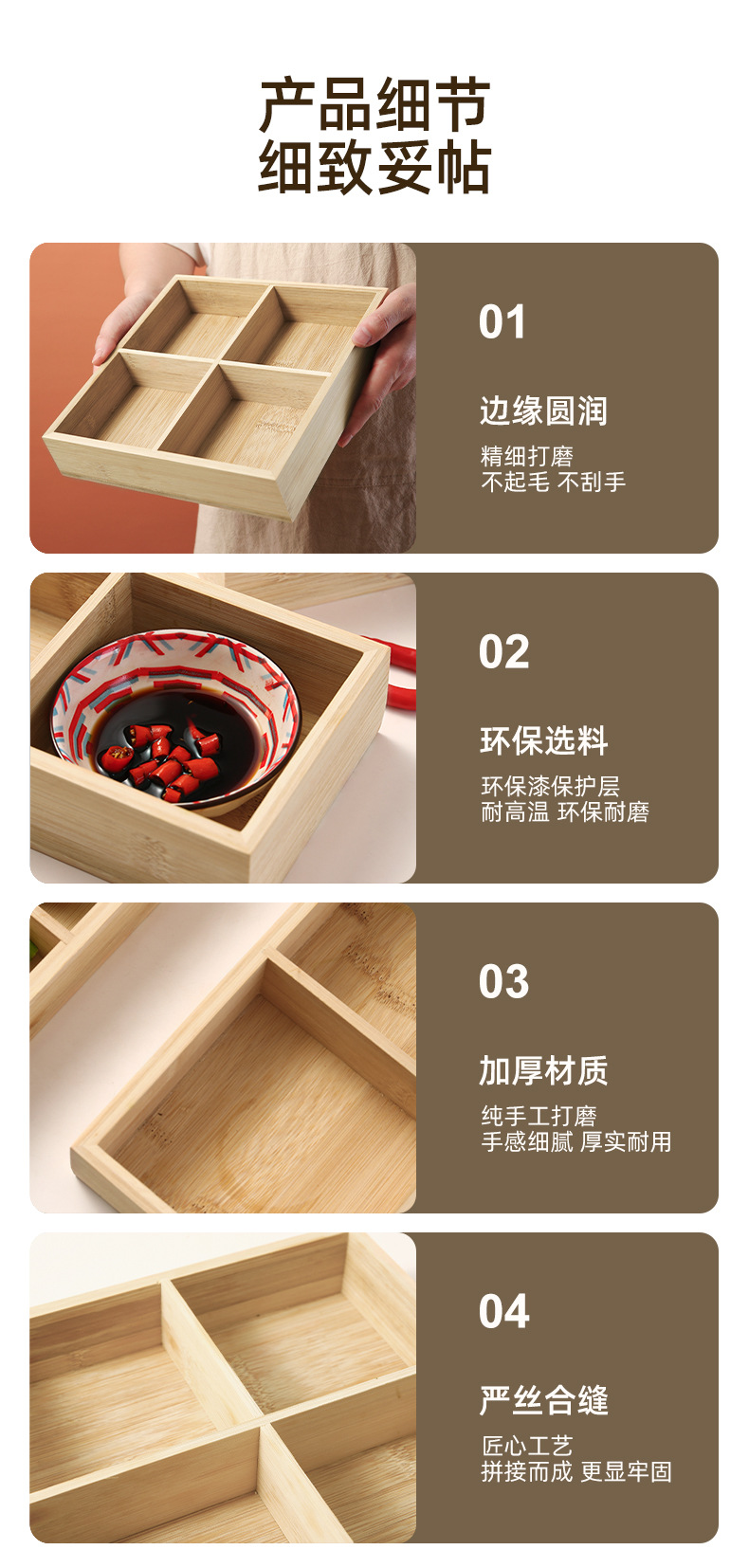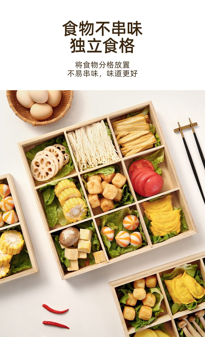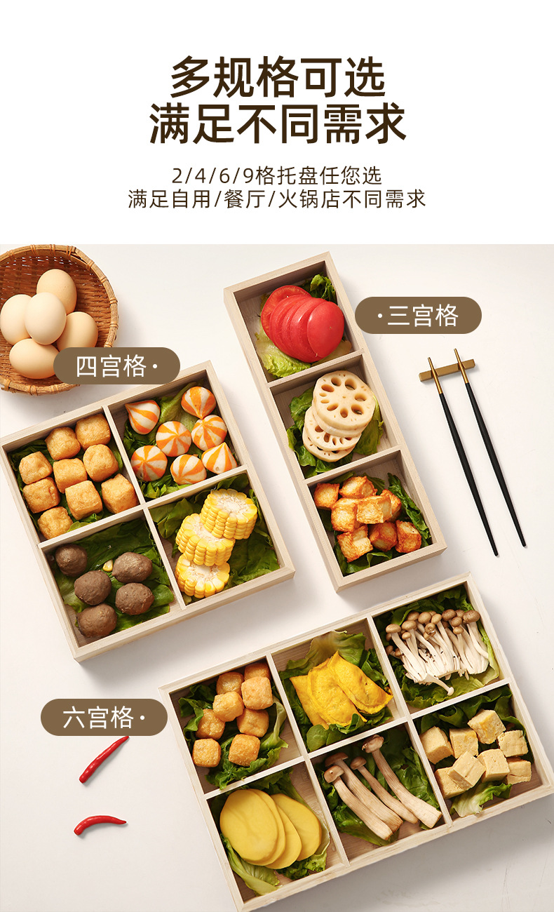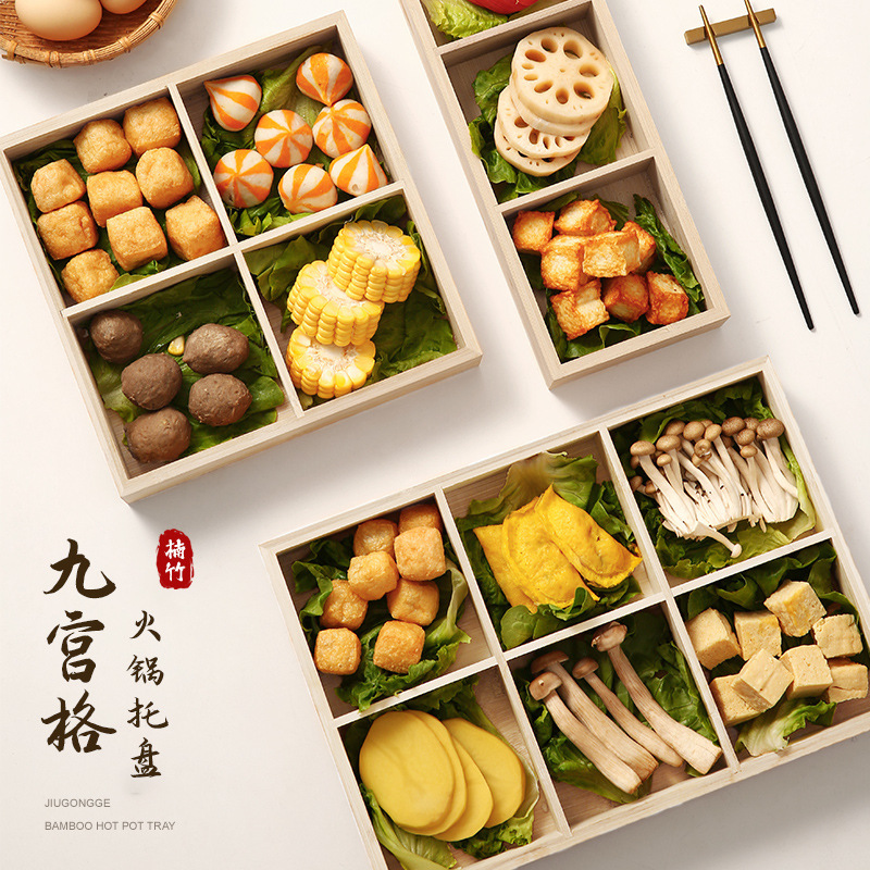 Jiugongge 대나무 및 나무 트레이 식기 뜨거운 냄비 격자 접시 과일 접시 상쾌한 드라이 스낵