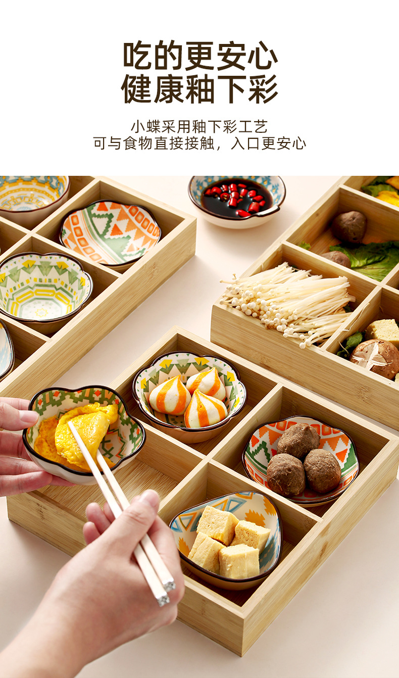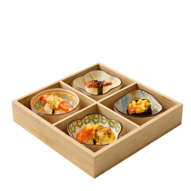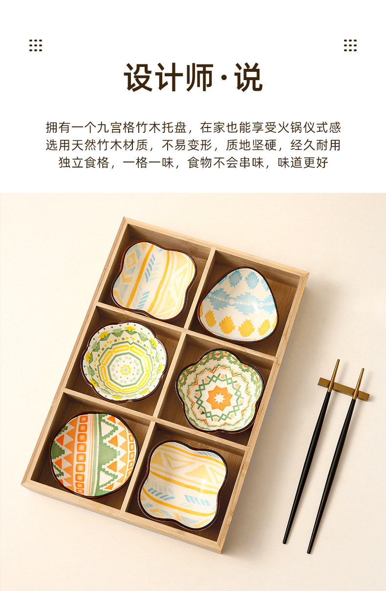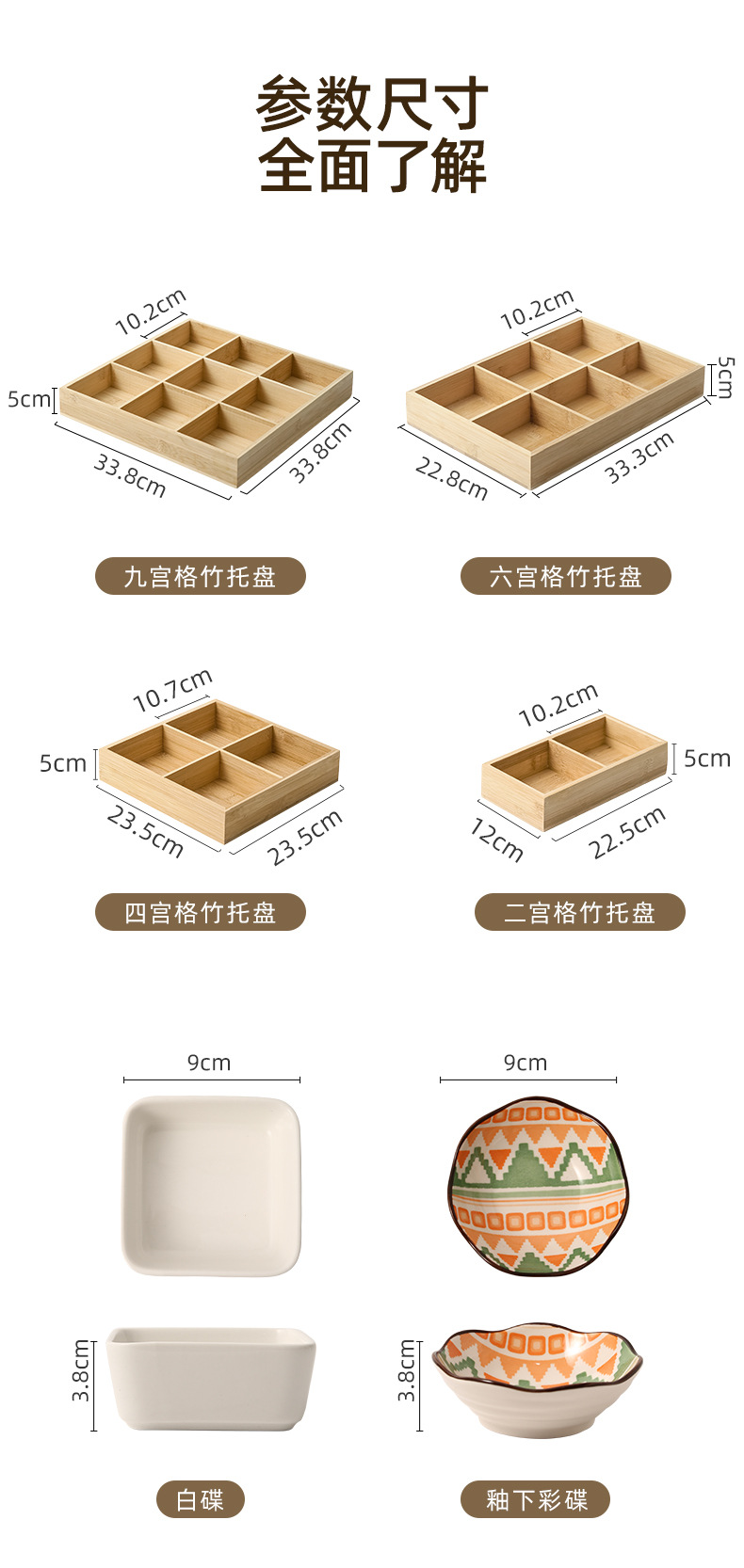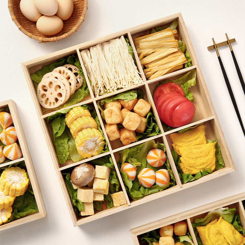 Jiugongge 대나무 및 나무 트레이 식기 뜨거운 냄비 격자 접시 과일 접시 상쾌한 드라이 스낵