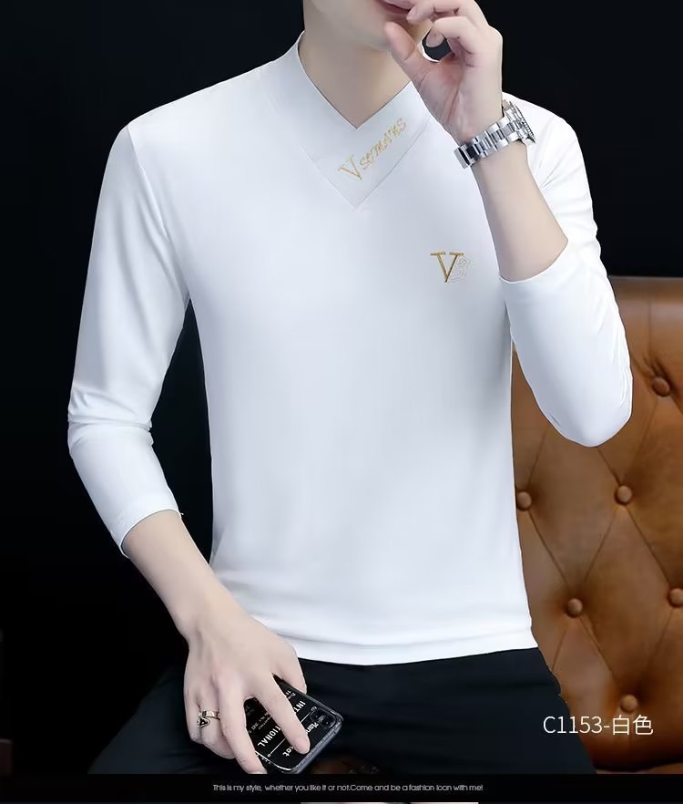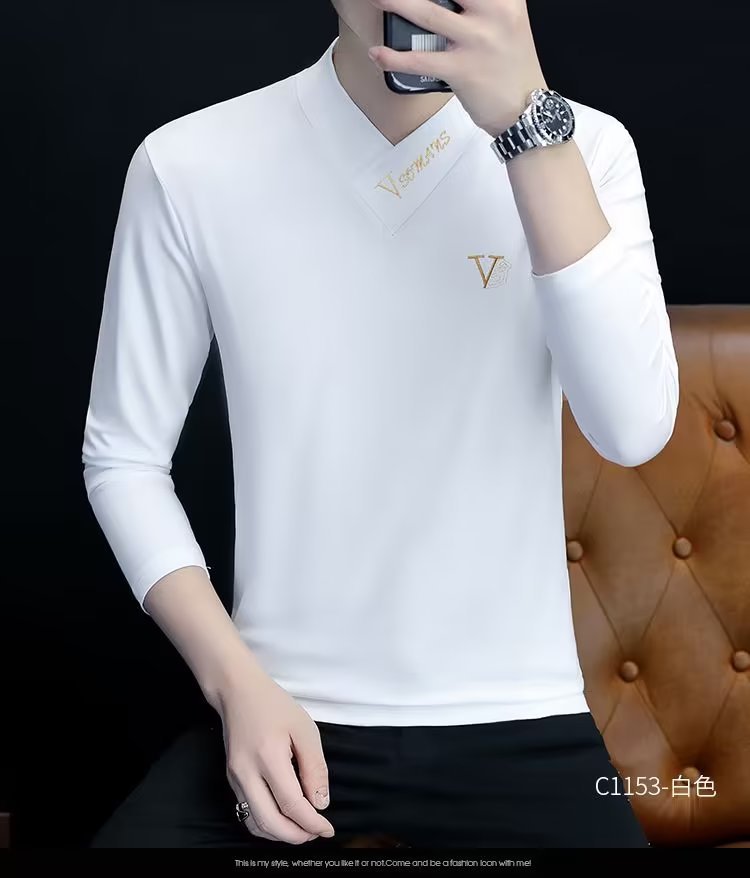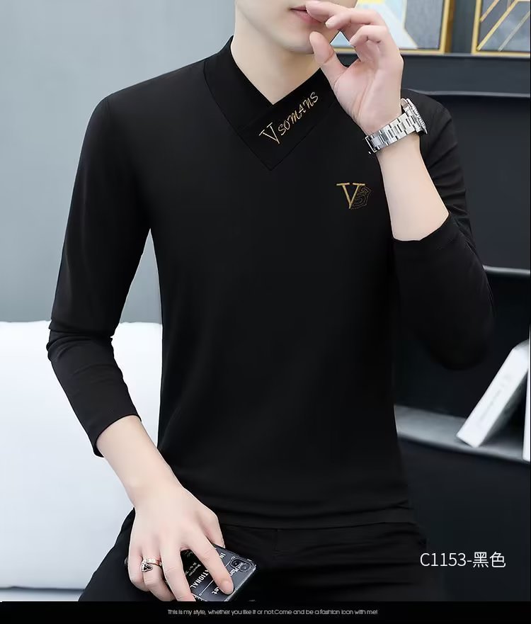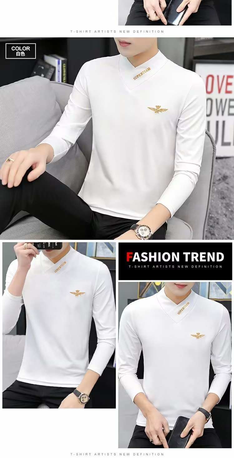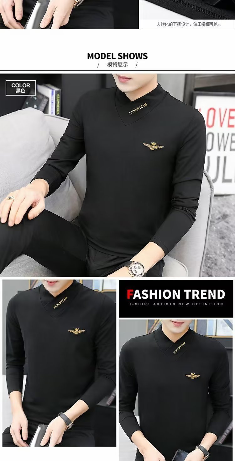 가을과 겨울 반 높이 칼라 모달 남자 긴팔 티셔츠 미드 칼라 기모 두꺼운 베이스 셔츠 V-넥 따뜻한 최고 트렌디