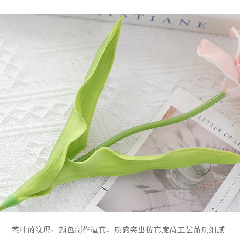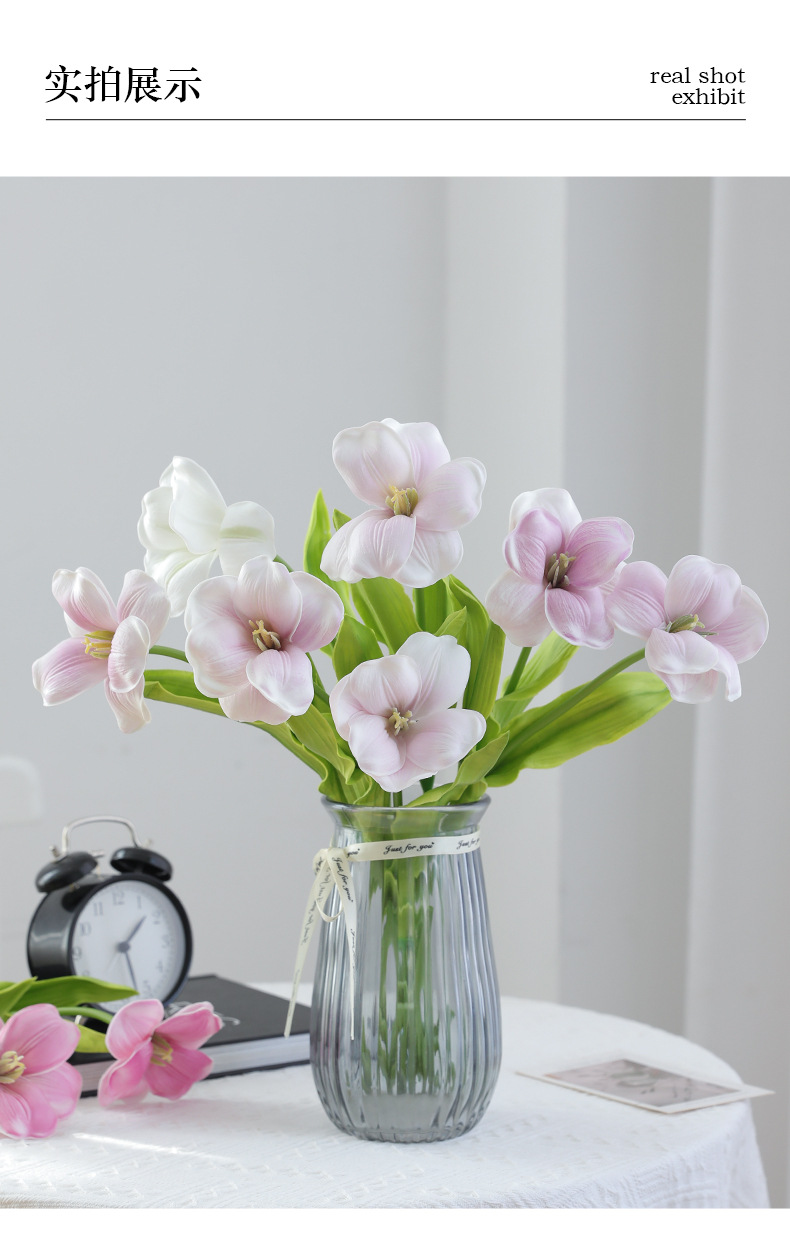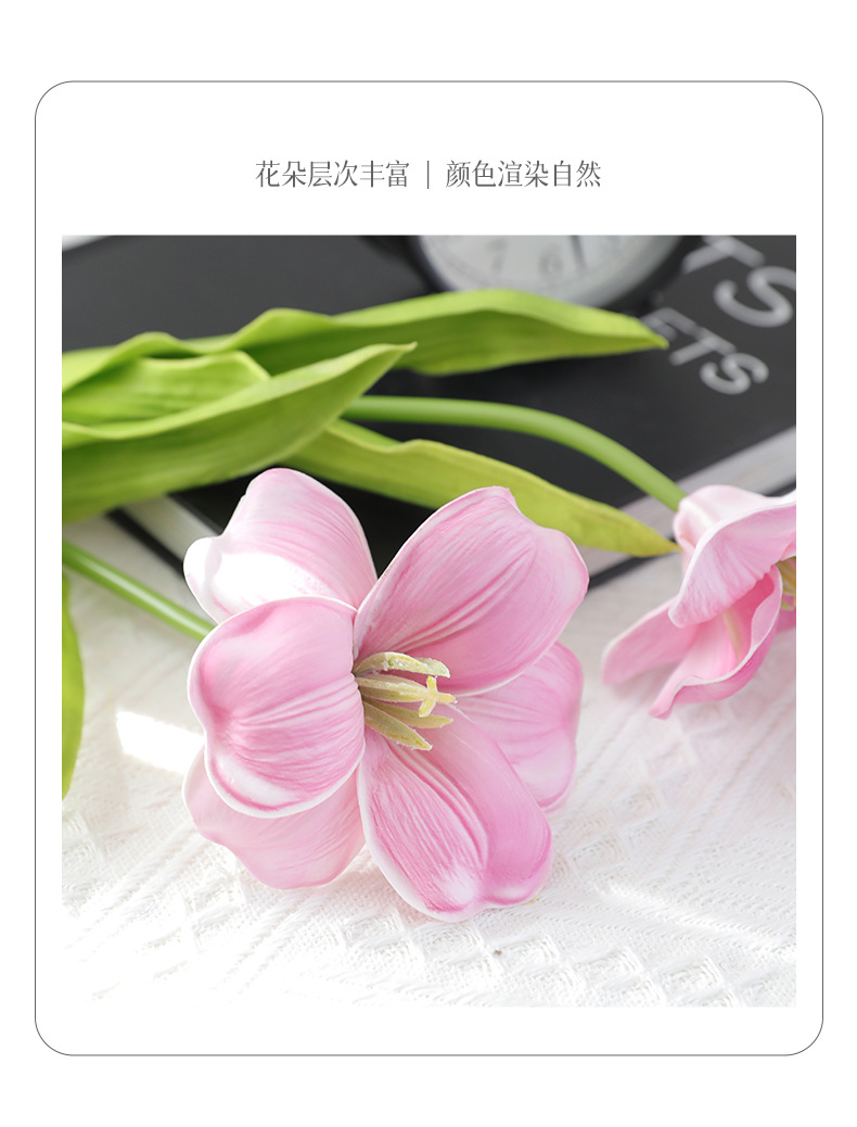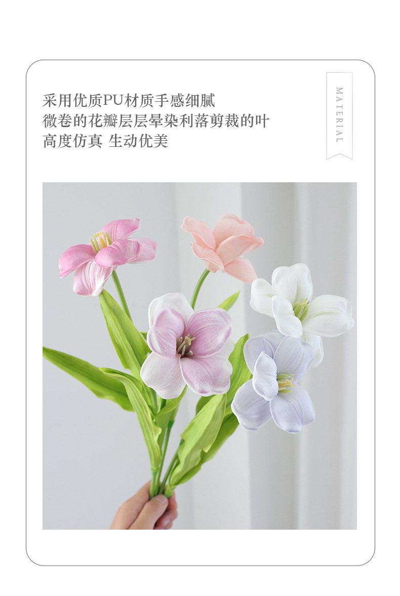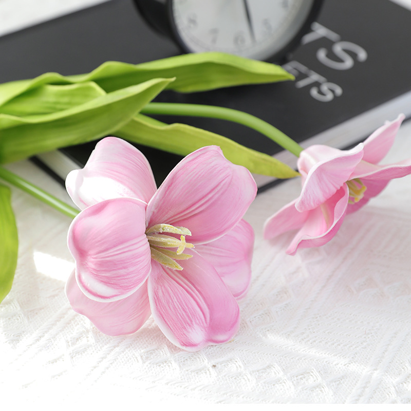 오픈 플랩 튤립 PU 손 느낌 인공 꽃 가짜 꽃 단일 유럽 대형 꽃잎 웨딩 장식 인공 꽃