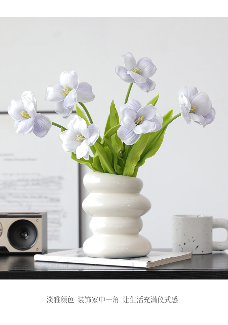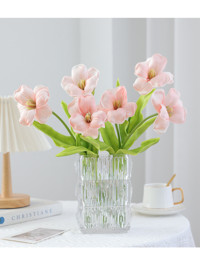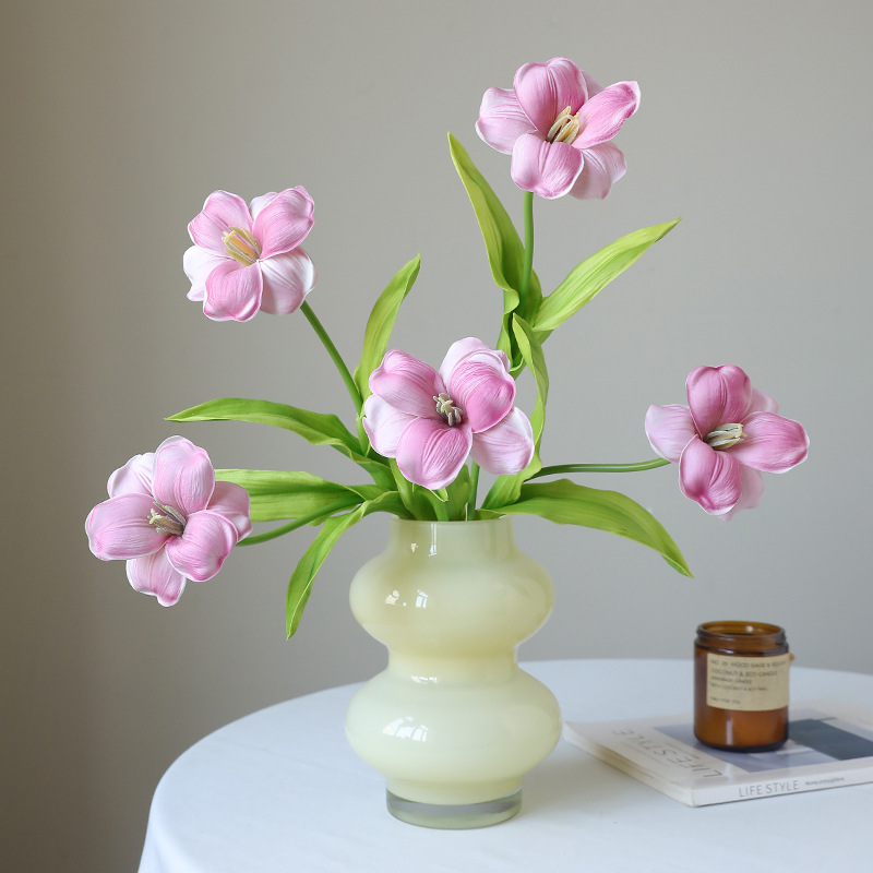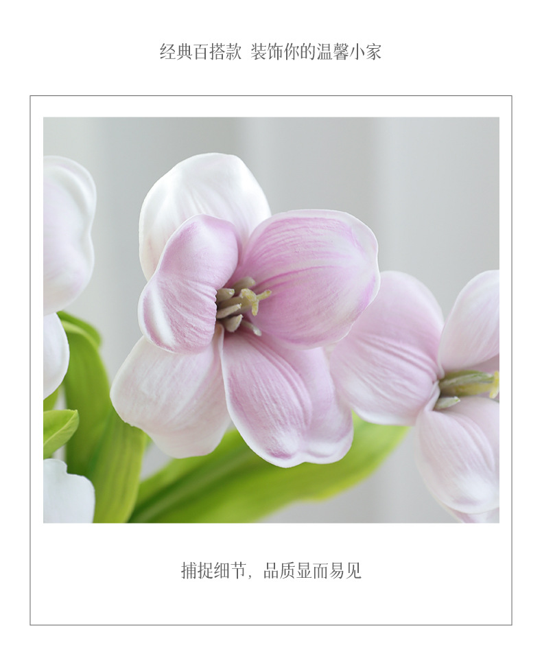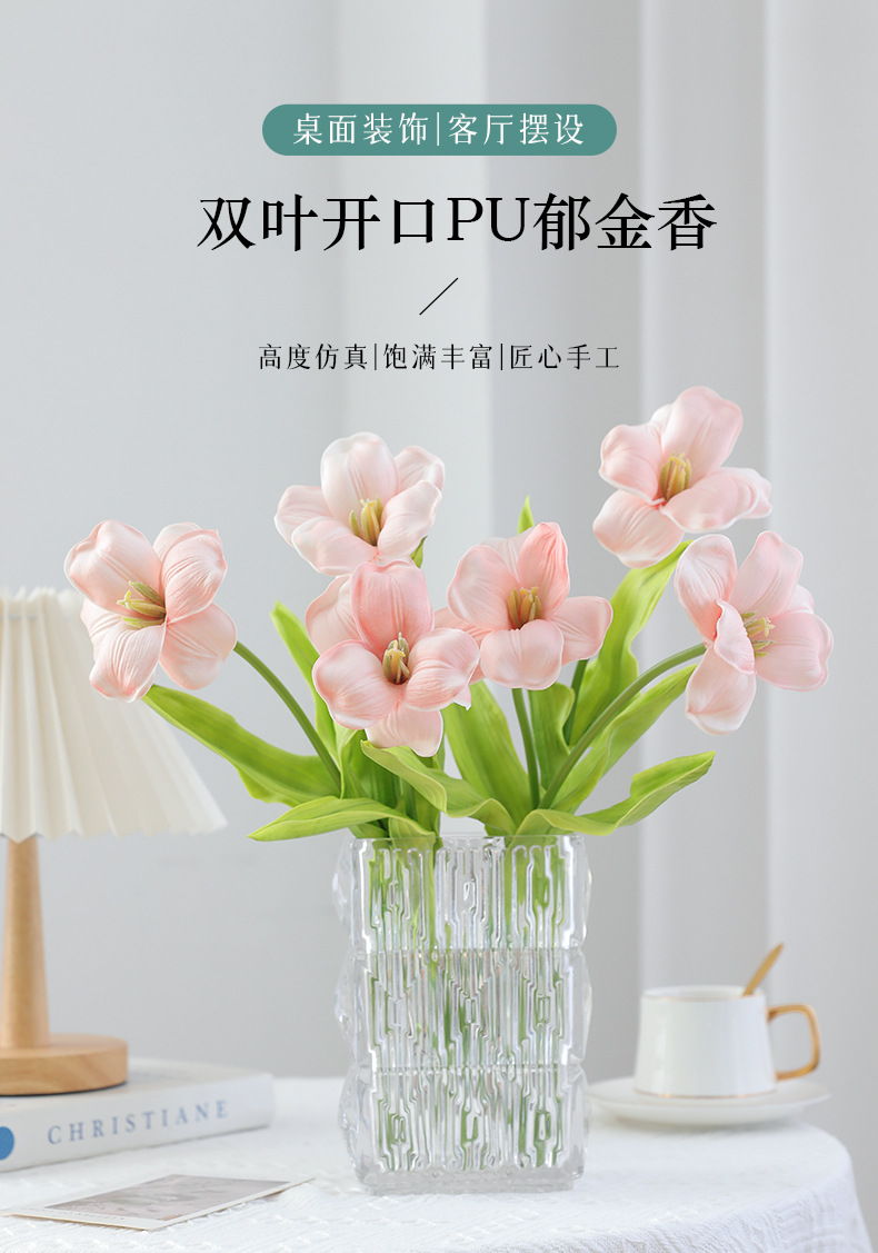 오픈 플랩 튤립 PU 손 느낌 인공 꽃 가짜 꽃 단일 유럽 대형 꽃잎 웨딩 장식 인공 꽃