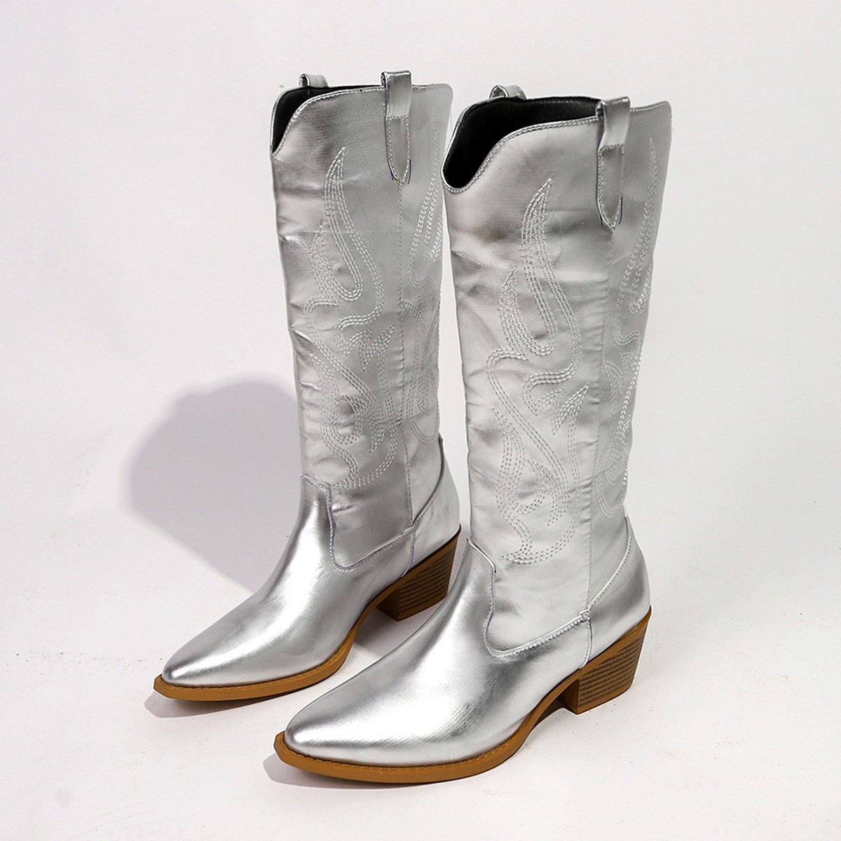 플러스 사이즈 국경 대외 무역 2024 가을 새로운 유럽과 미국 여성 튜브 단색 뾰족한 성인 마틴 부츠 두꺼운 힐 신발 부츠