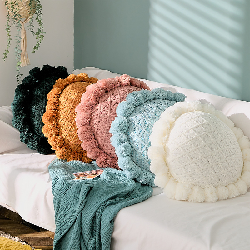 Xiangyang 꽃 베개 Ins 북유럽 스타일 라운드 베개 소파 이불 세트 거실 쿠션 침대 베개 쿠션 커버