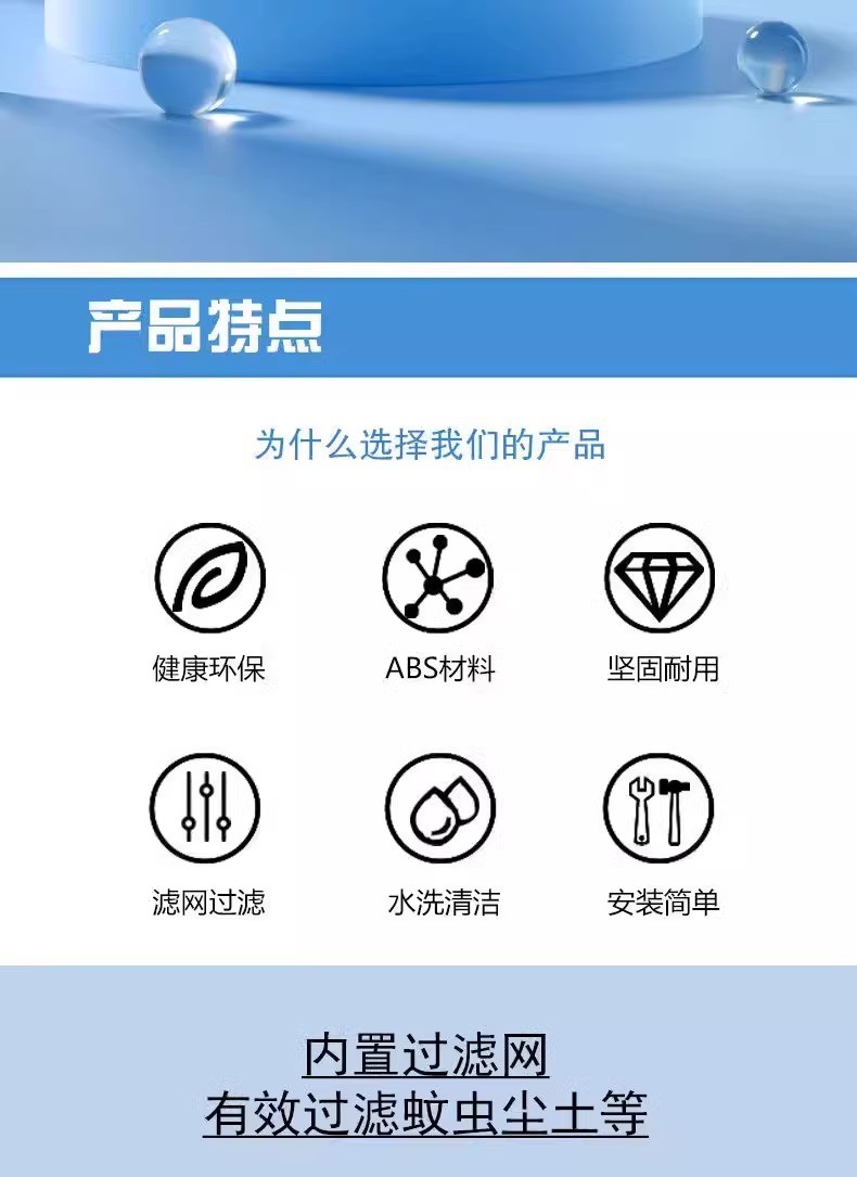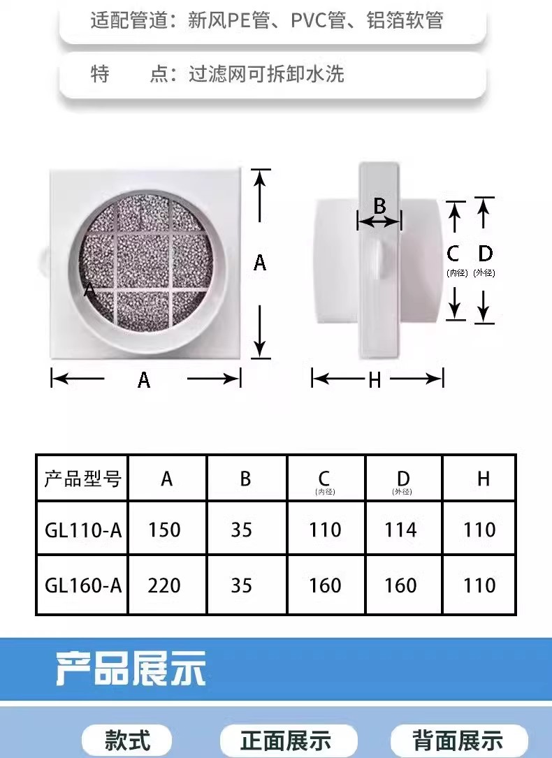 110 구경 1차 필터(1개/알루미늄 합금 필터) 필터는 분리 가능하고 세척 가능합니다.