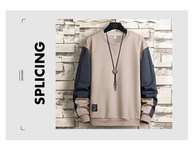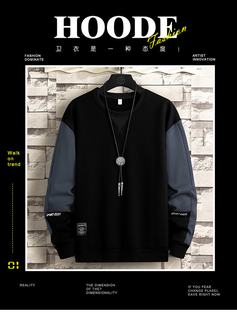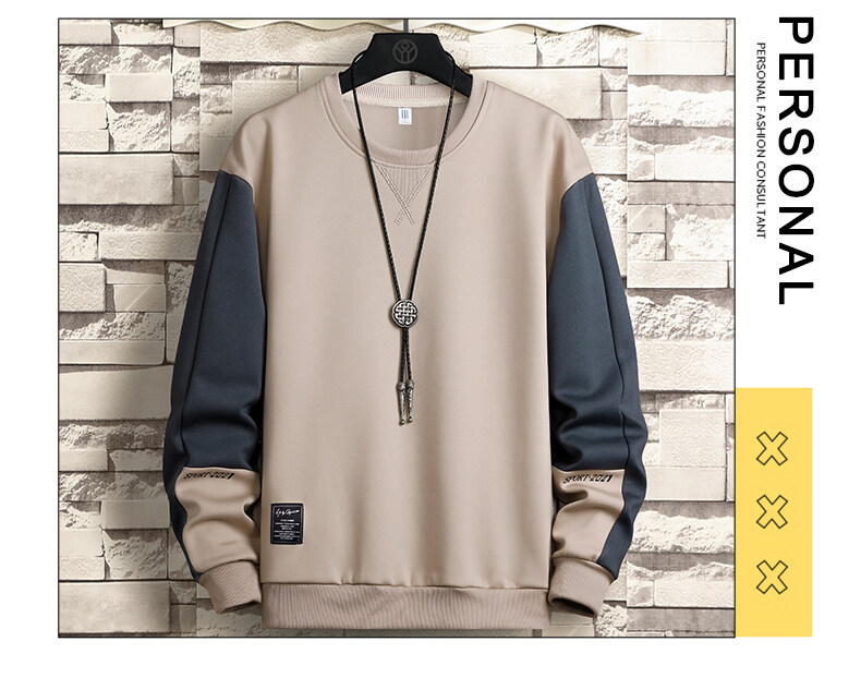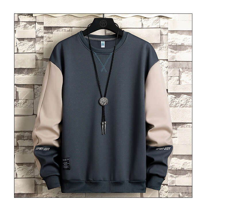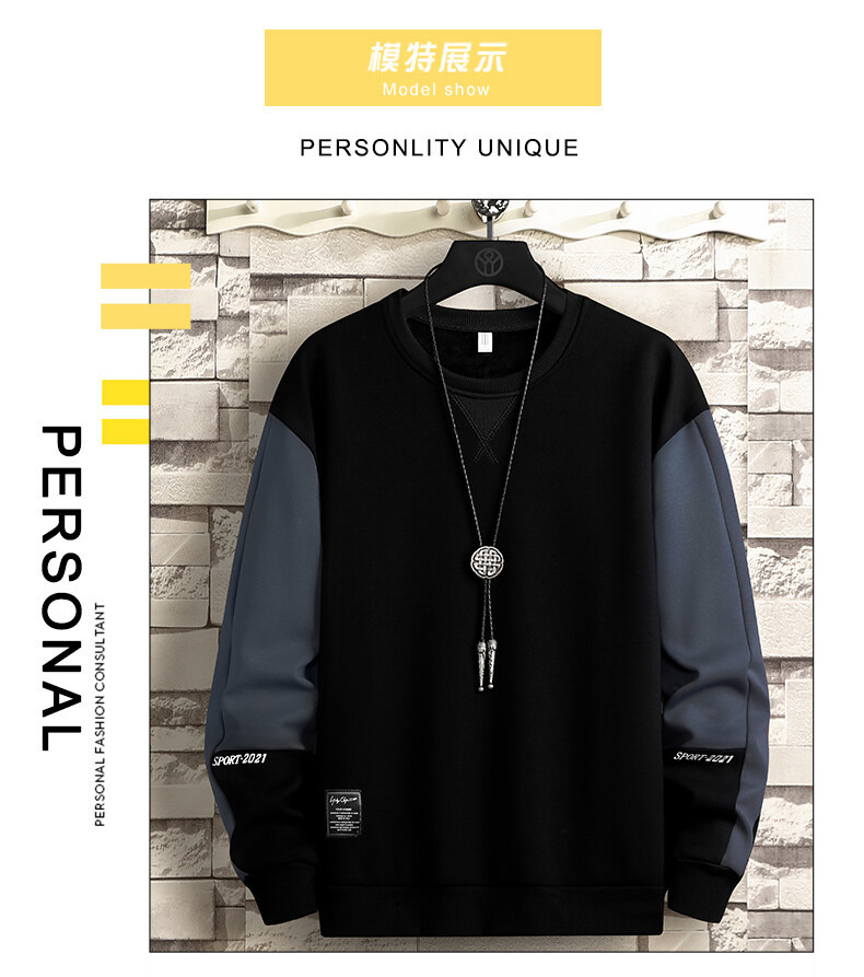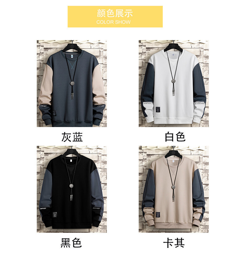 바느질 스웨터 남자의 봄과 가을 패션 브랜드 느슨한 크루 넥 풀오버 긴팔 티셔츠베이스 셔츠 겨울 기모 스웨터