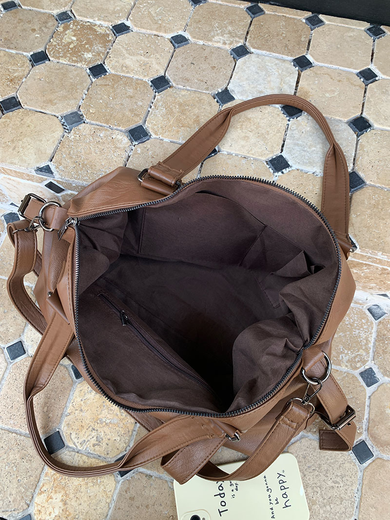 内有拉链暗袋和小侧袋 包包背面也有一个拉链暗袋