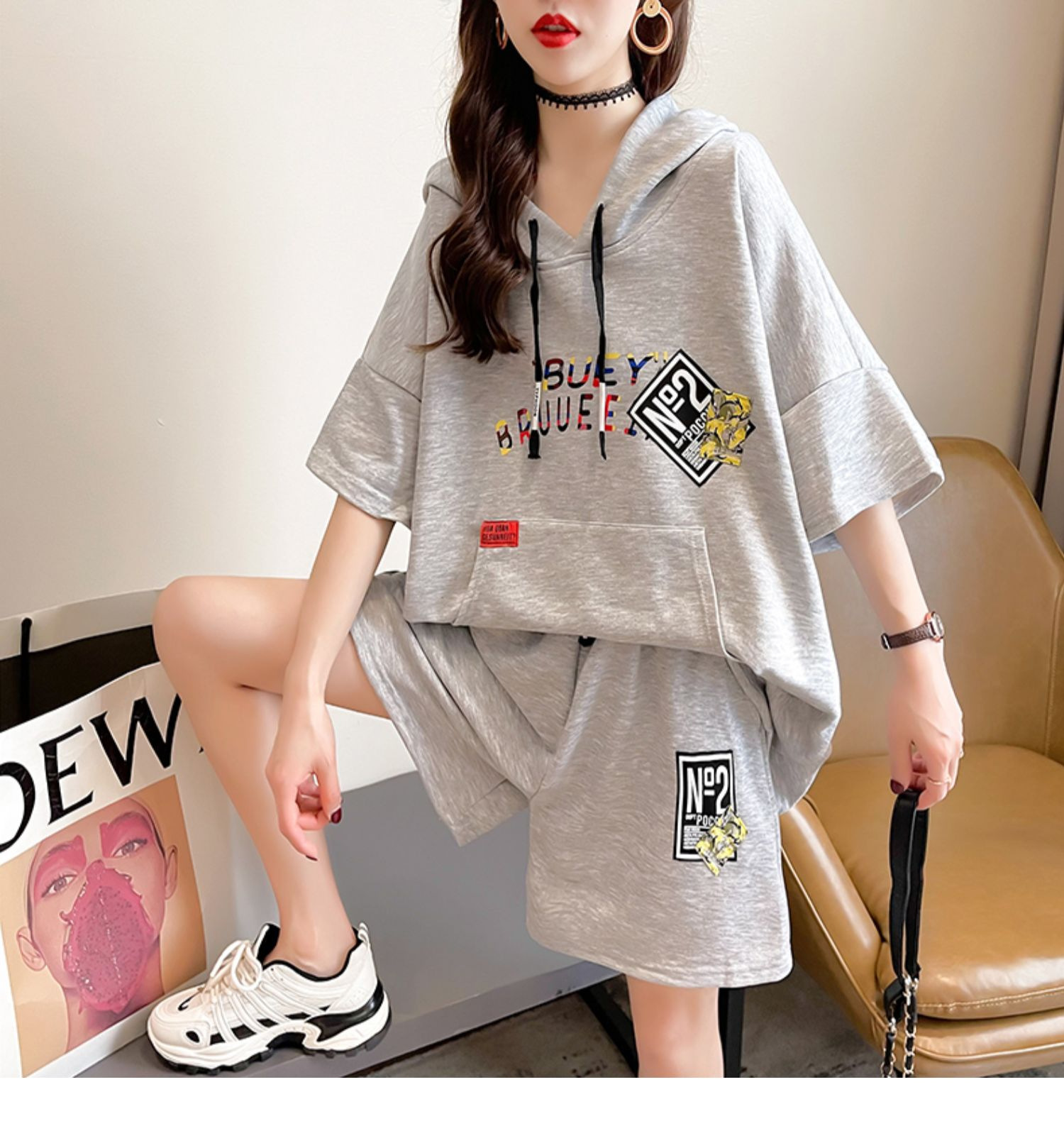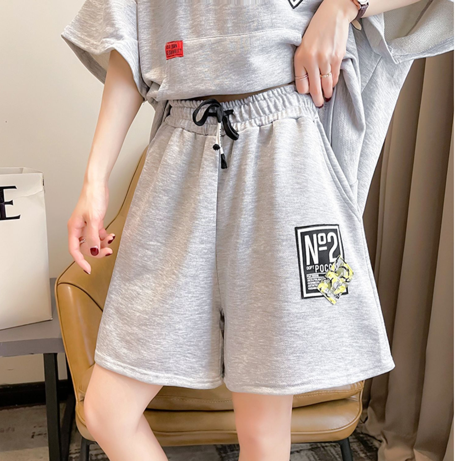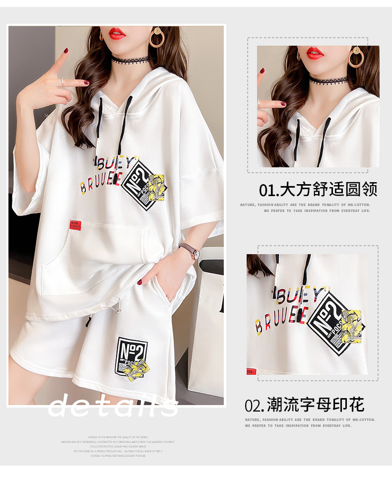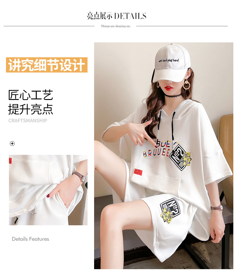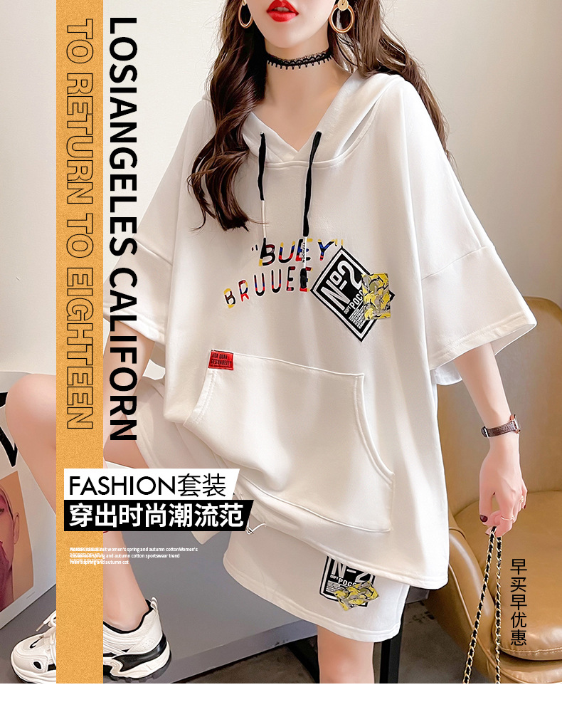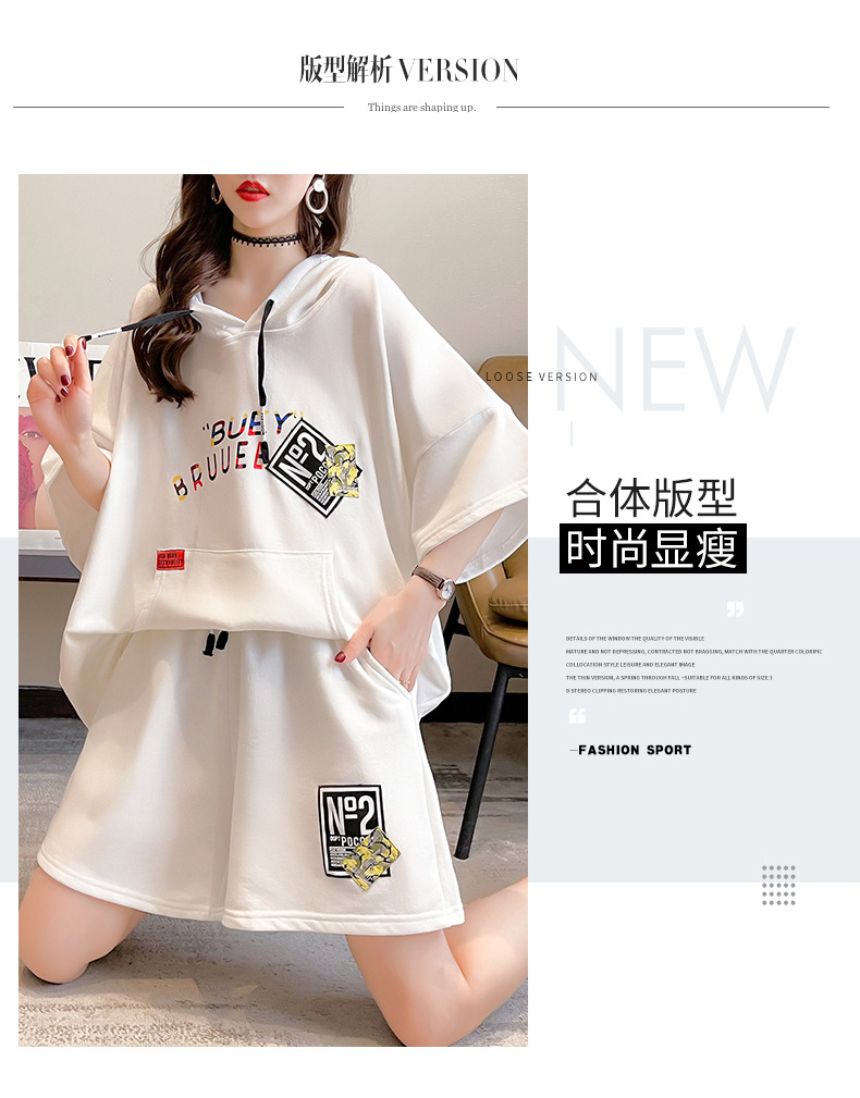 플러스 사이즈 여자 반팔 + 반바지 캐주얼 세트 여자 여름 새로운 스포츠 투피스 유행 세트