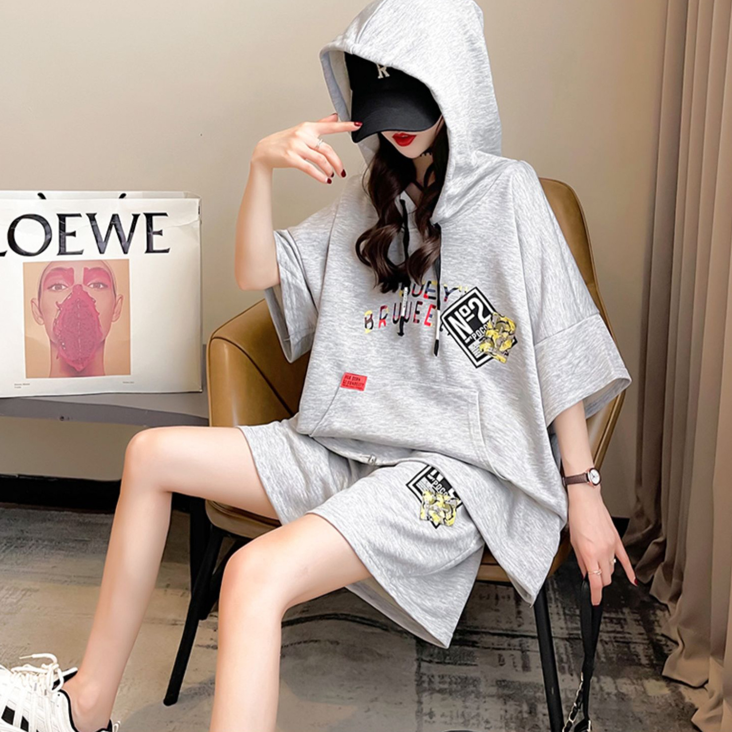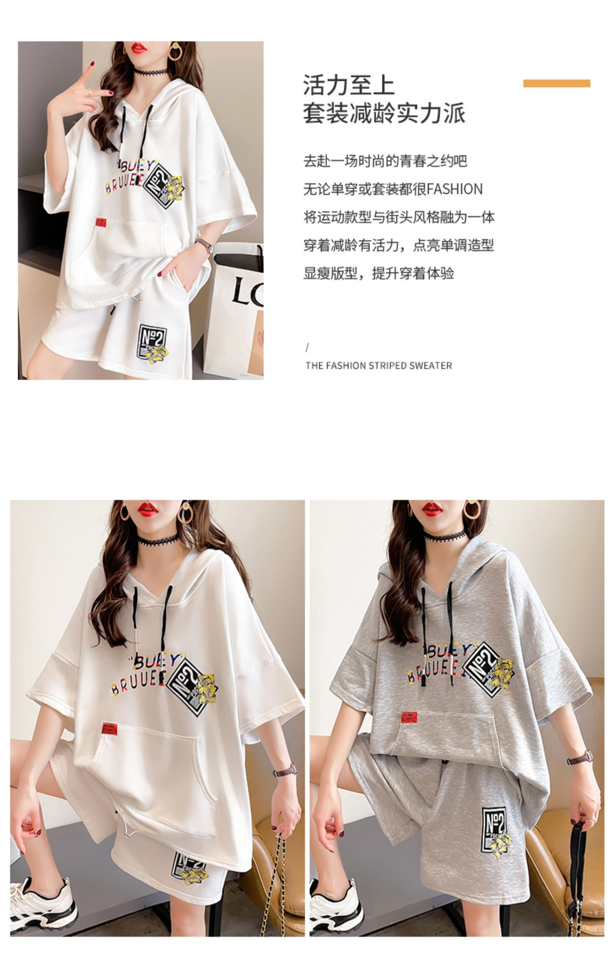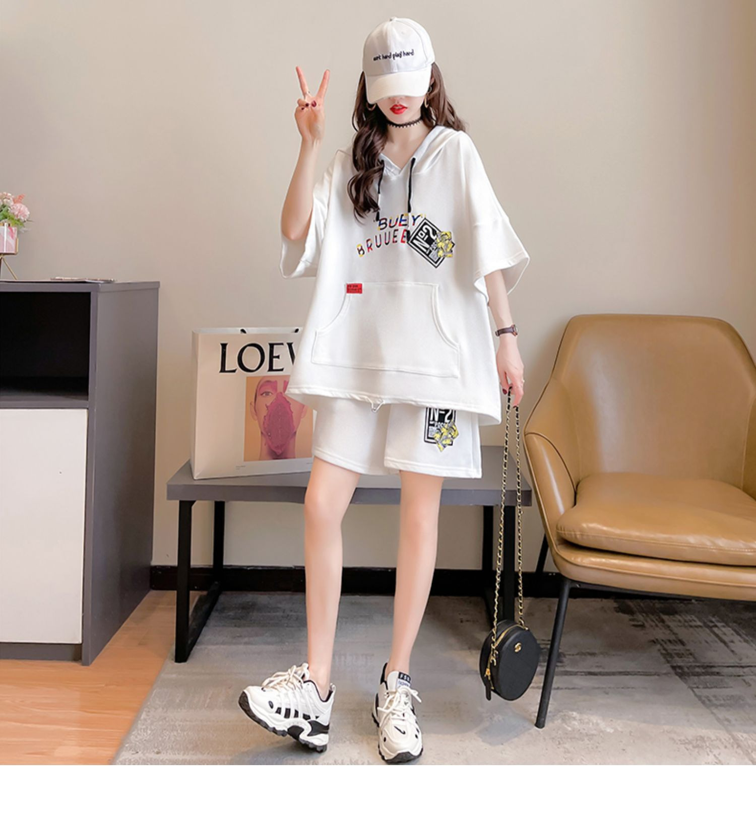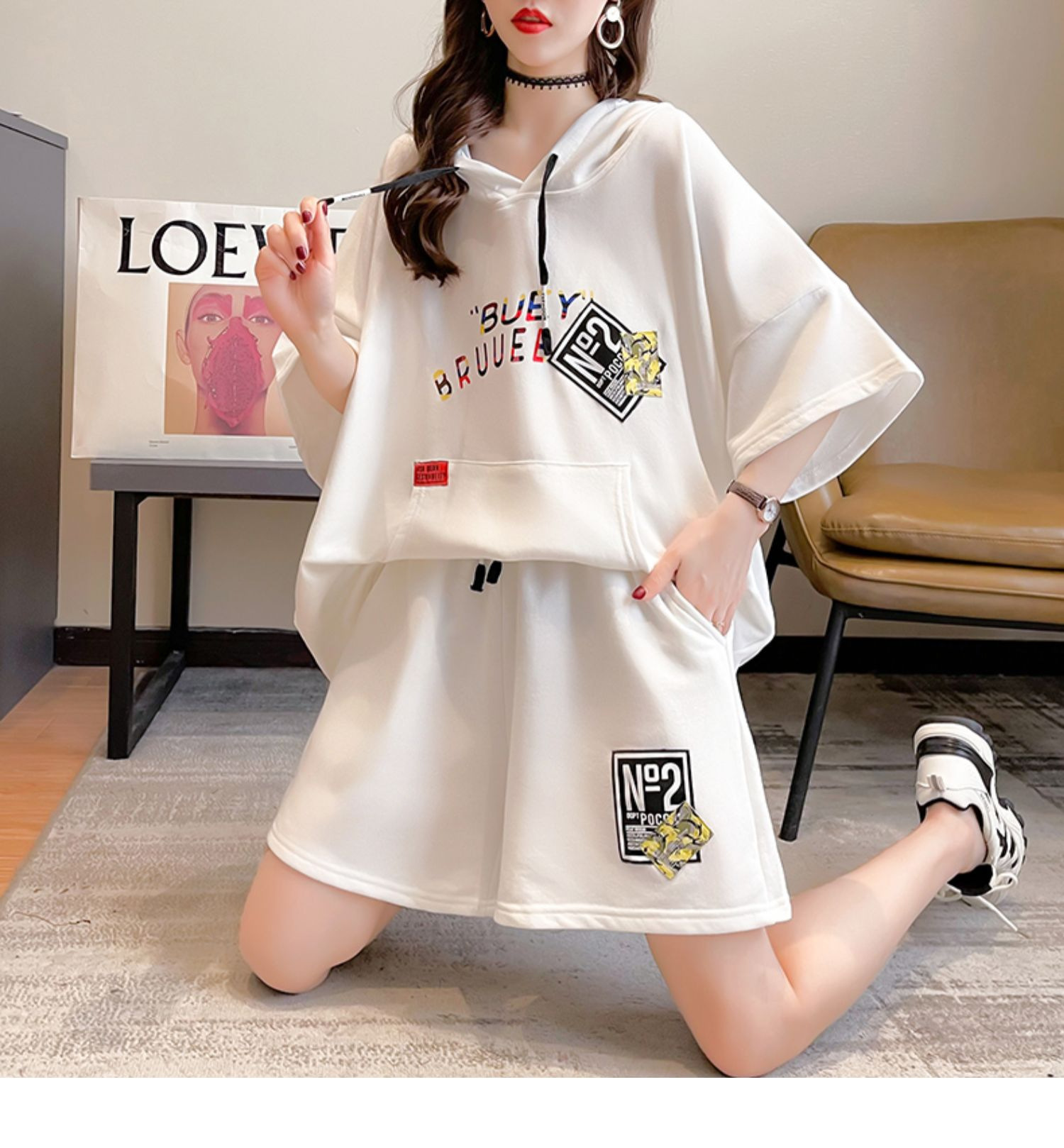 플러스 사이즈 여자 반팔 + 반바지 캐주얼 세트 여자 여름 새로운 스포츠 투피스 유행 세트