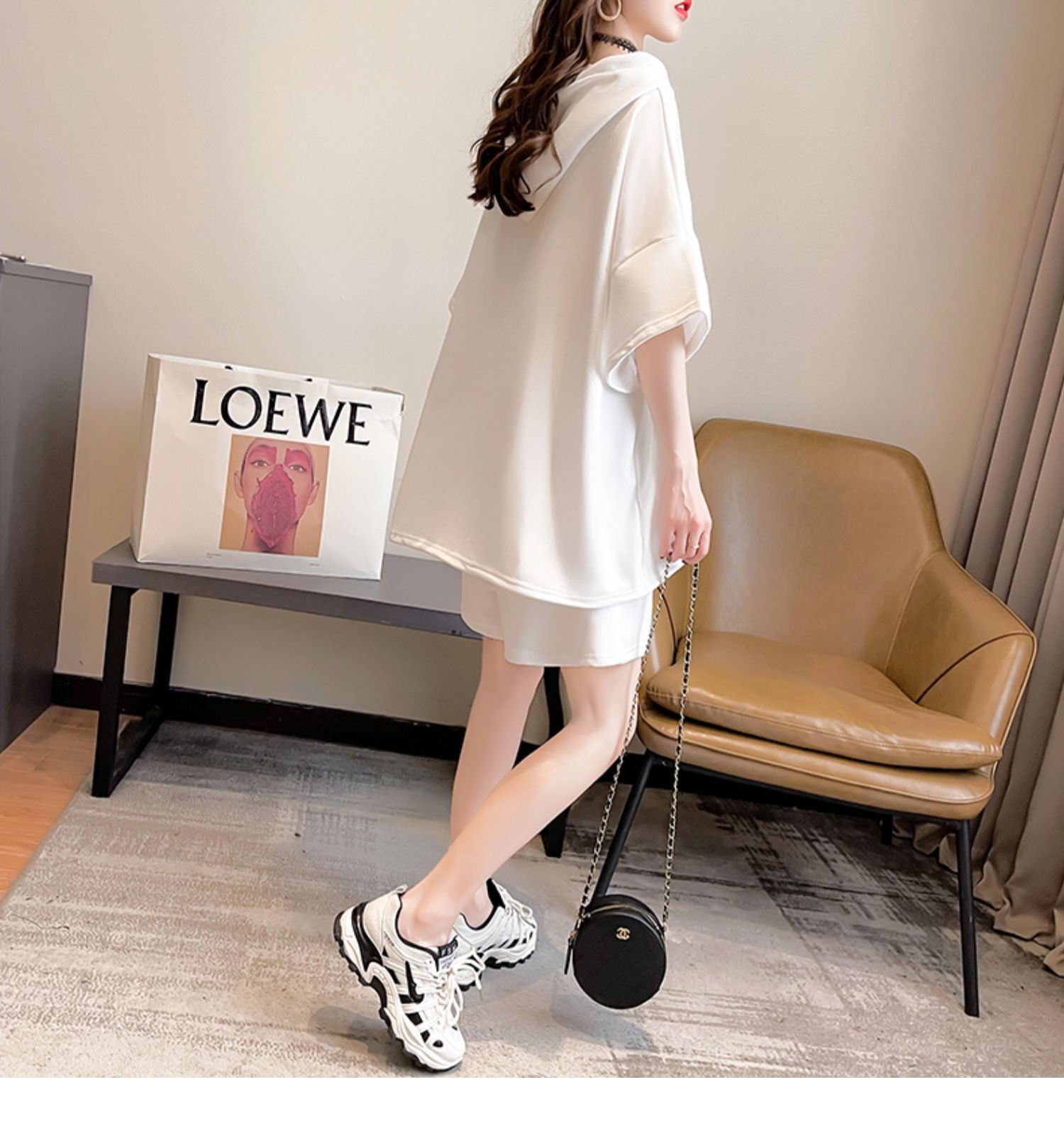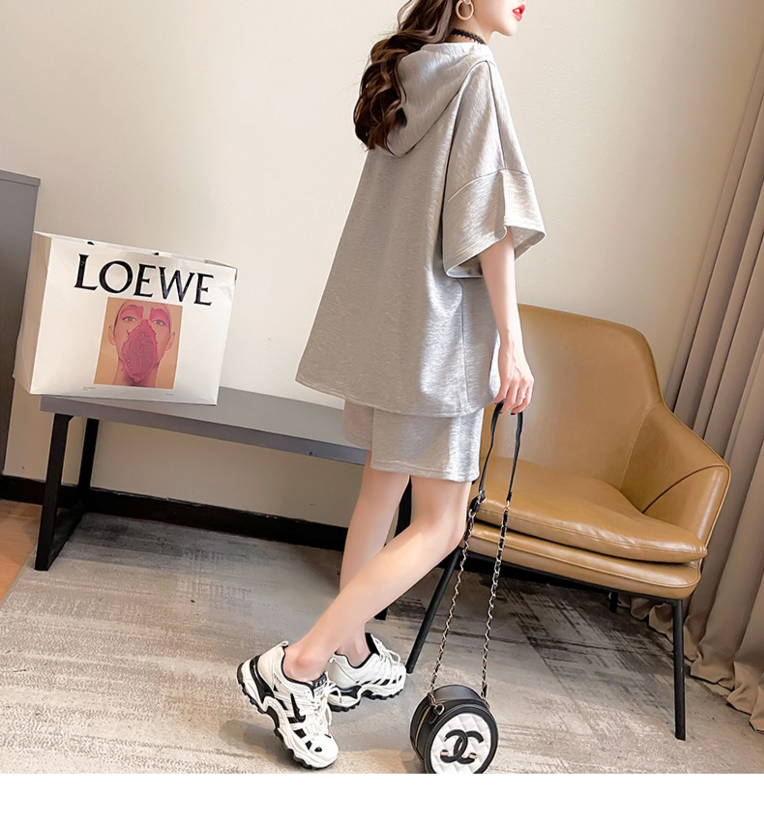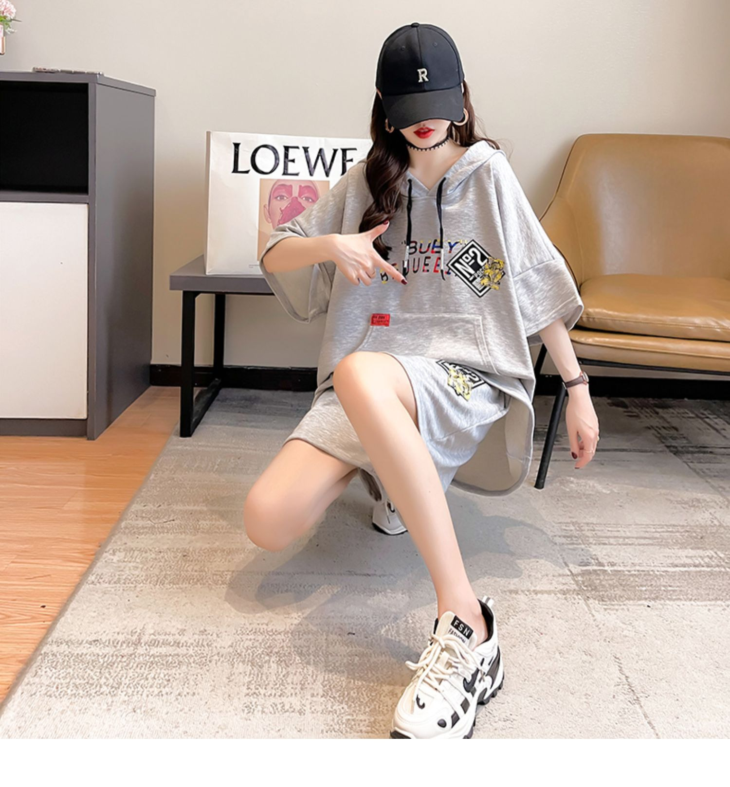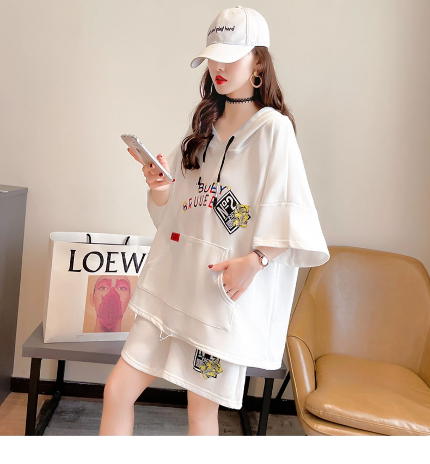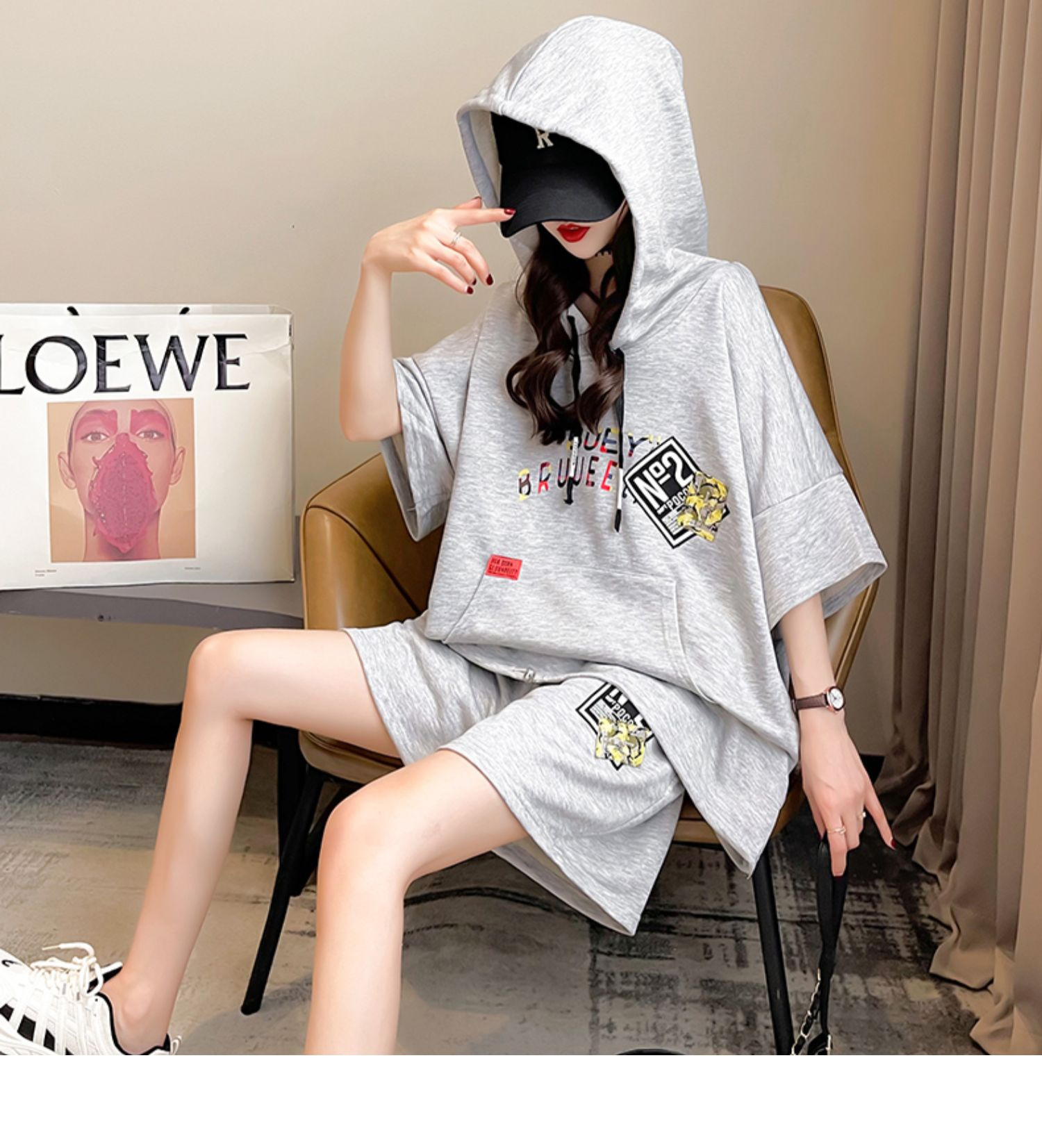 플러스 사이즈 여자 반팔 + 반바지 캐주얼 세트 여자 여름 새로운 스포츠 투피스 유행 세트