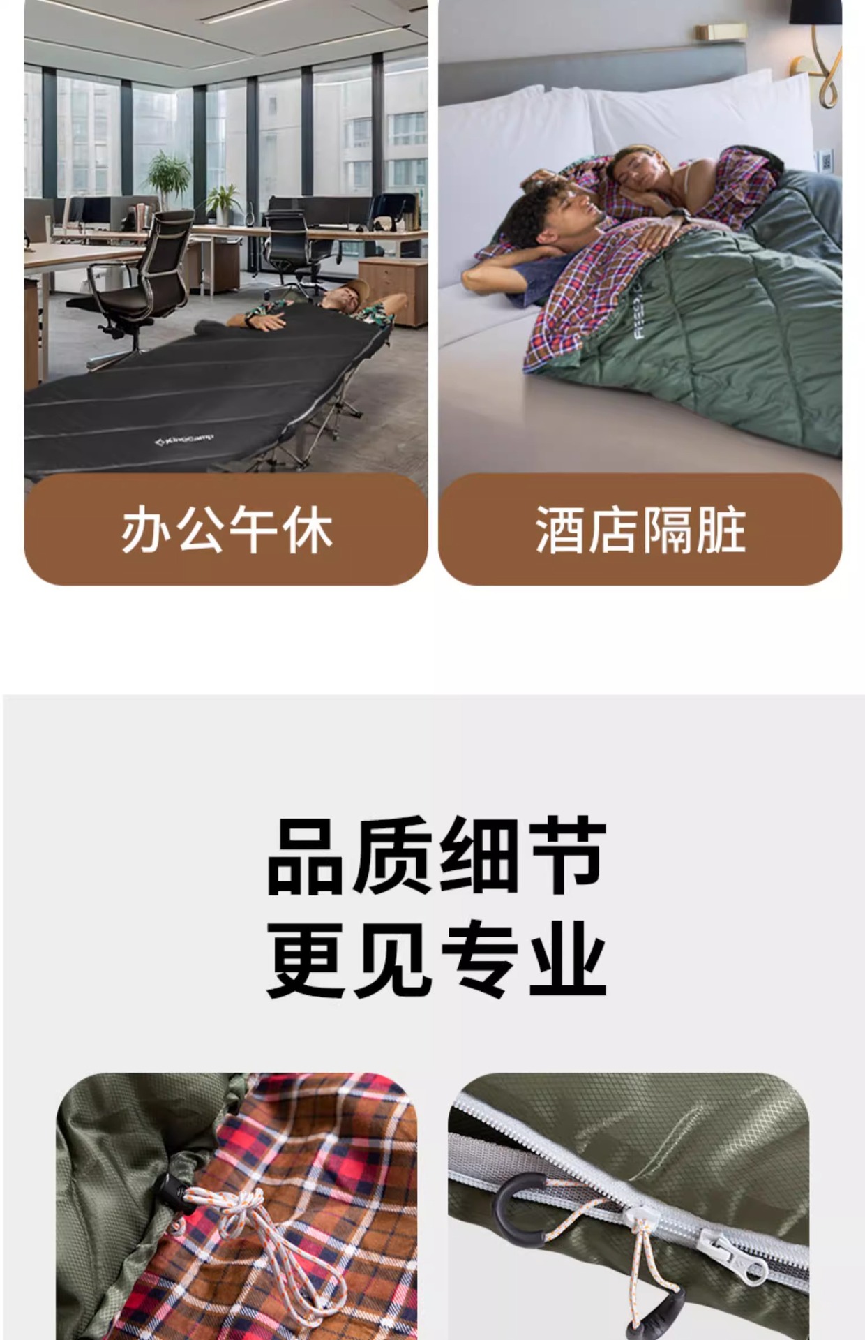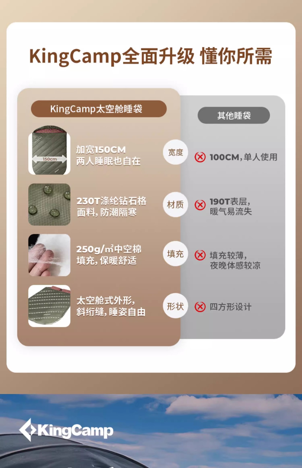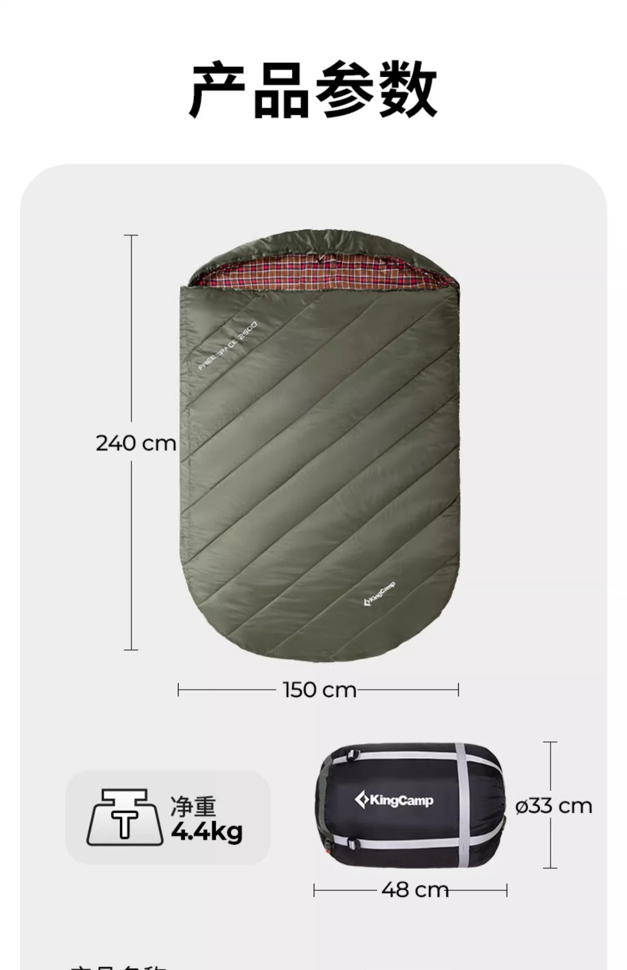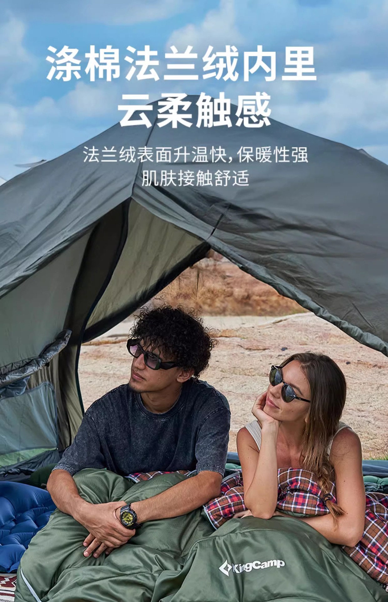 KingCamp 야외 슬리핑 백 성인 캠핑 두꺼운 한랭 방지 따뜻한 헤어 코튼 겨울 더티 방지 수분 방지 증가