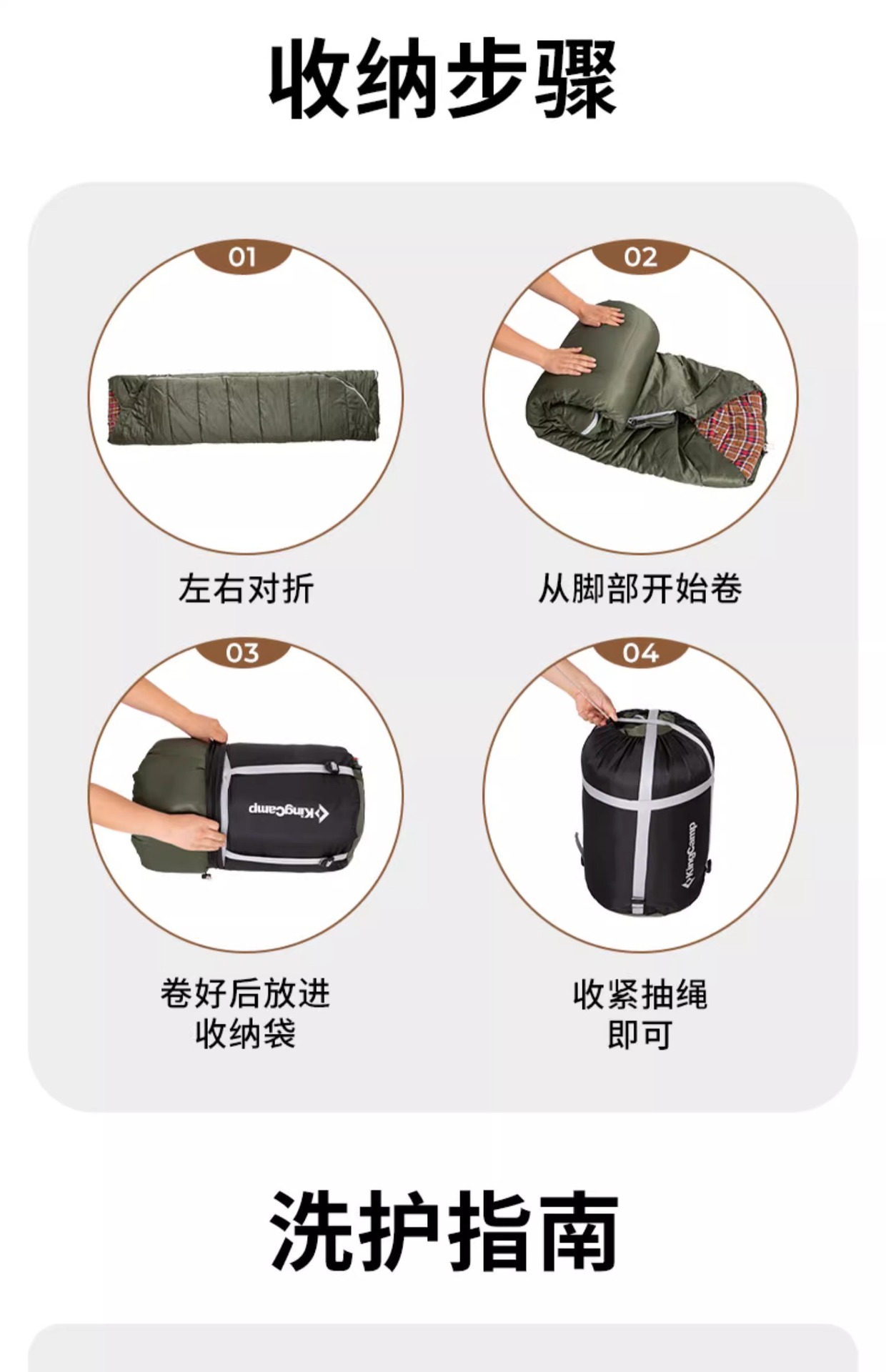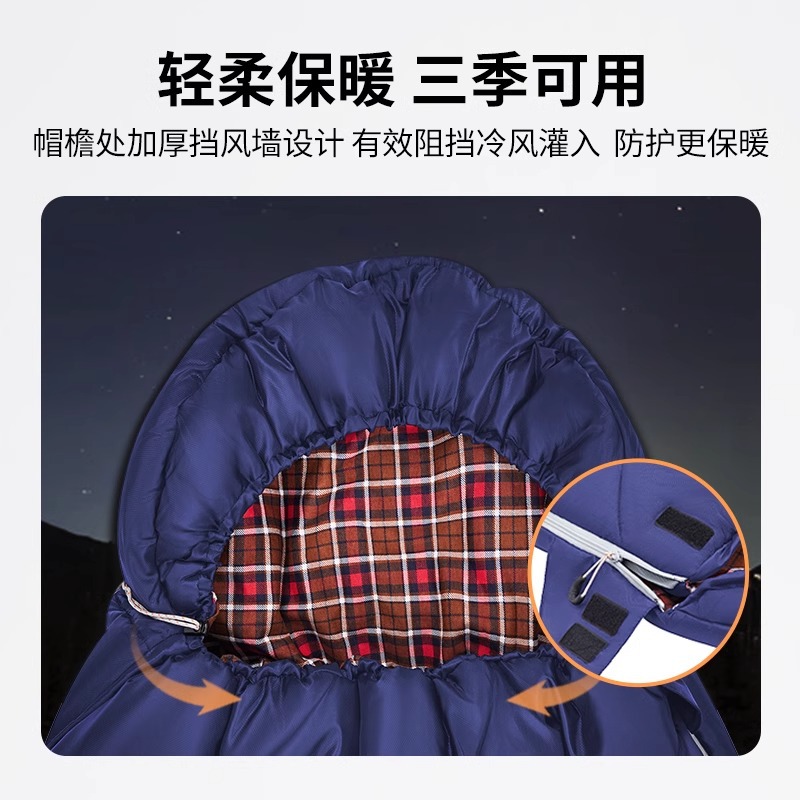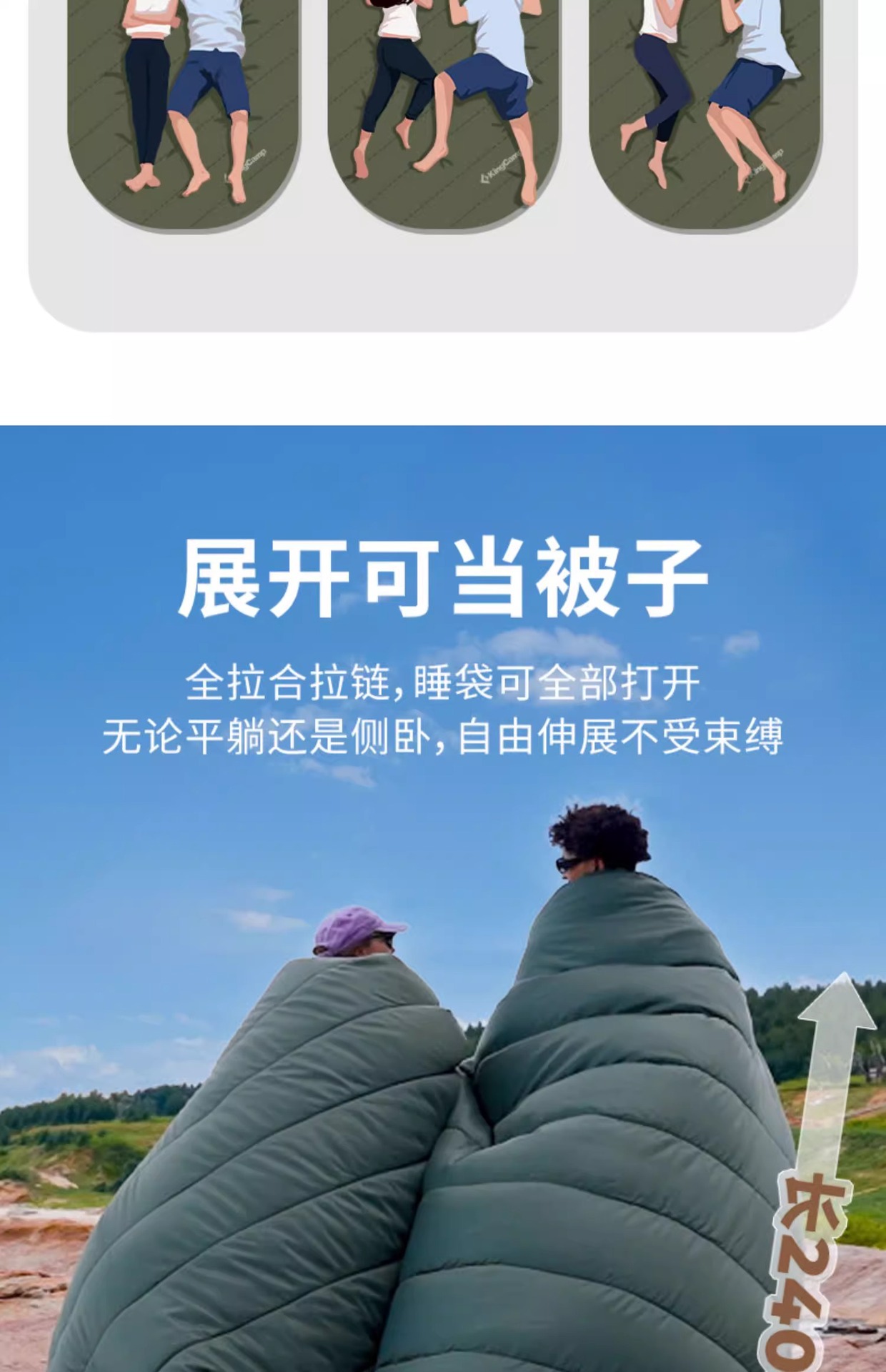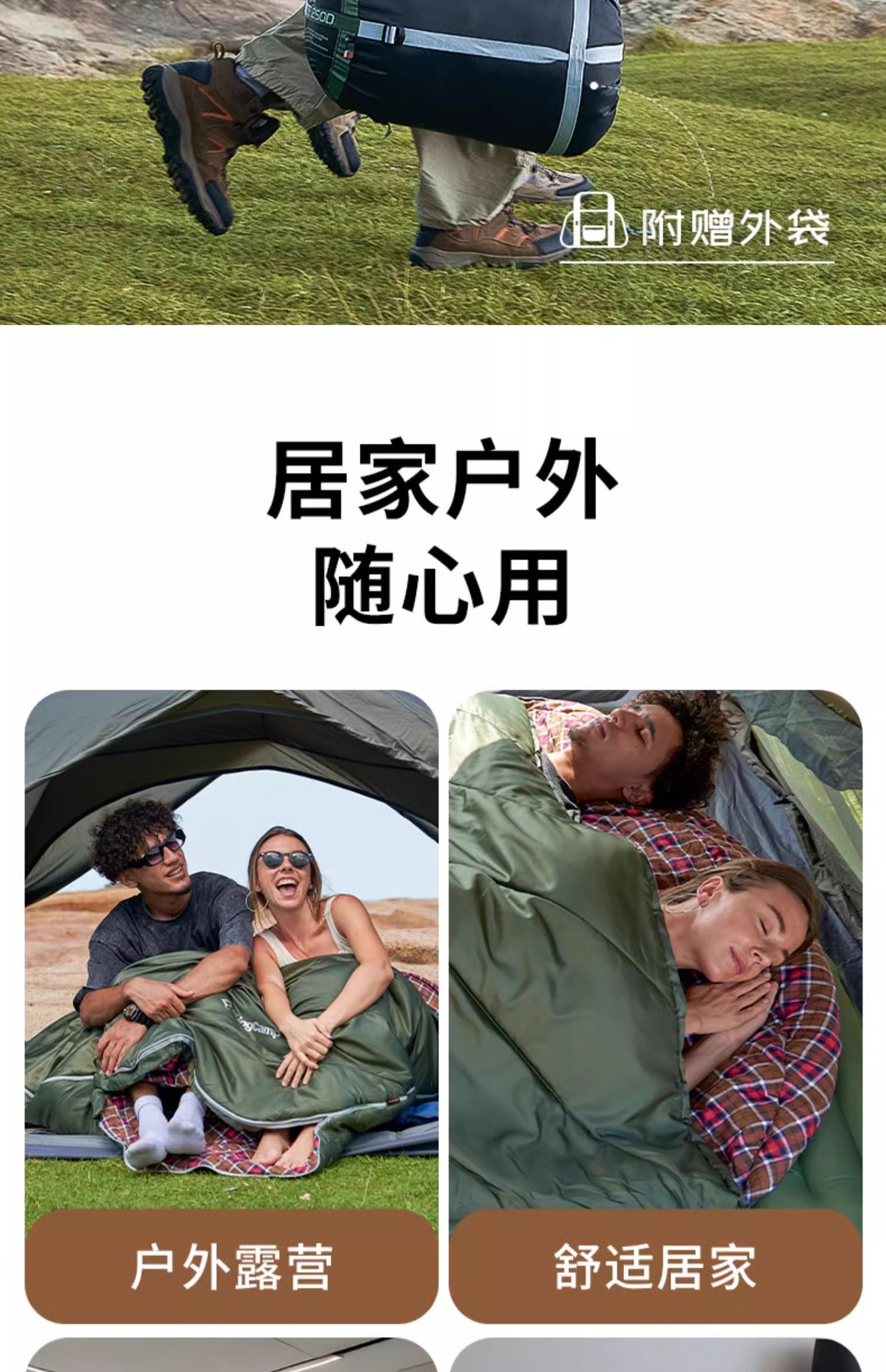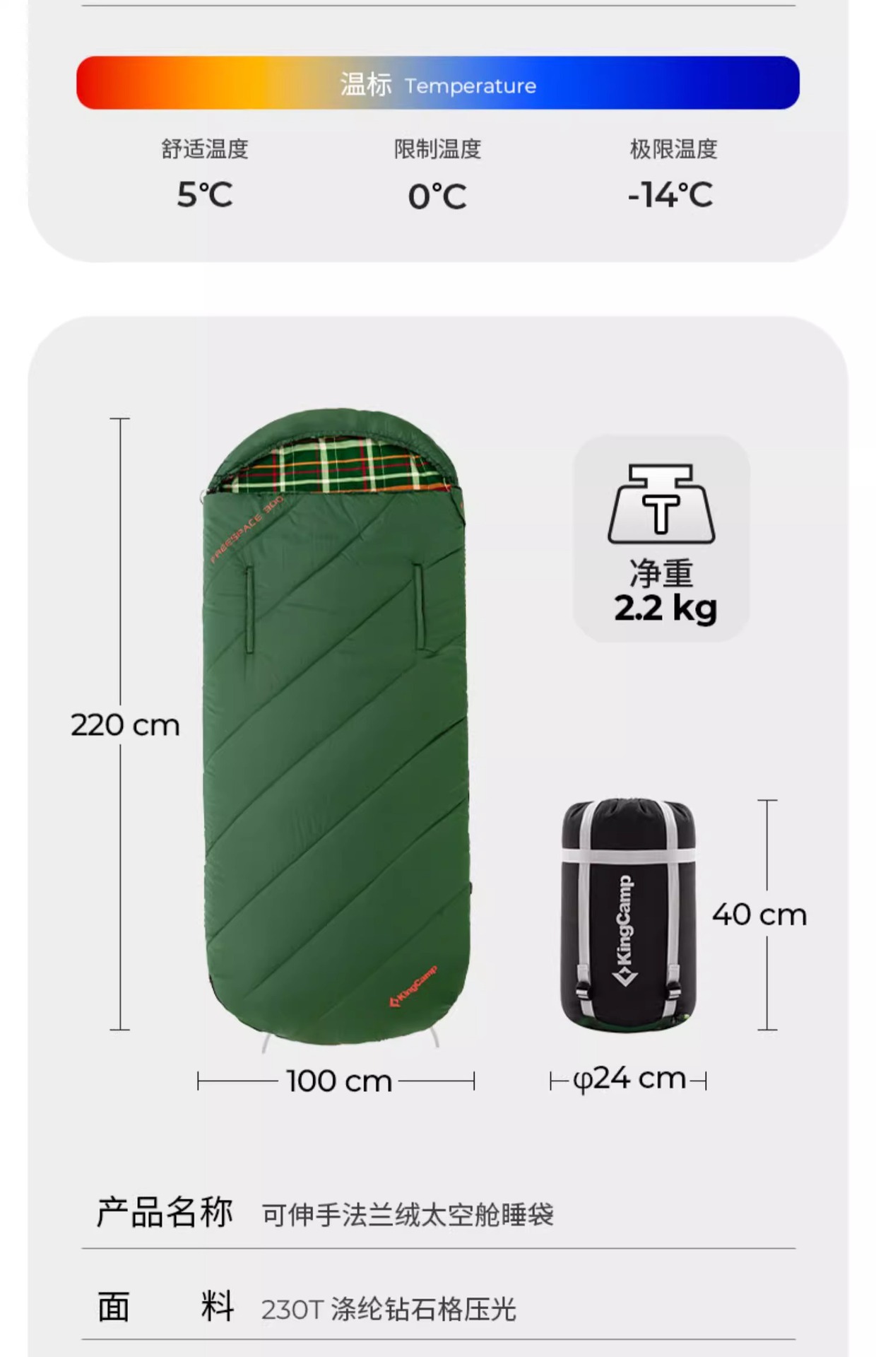 KingCamp 야외 슬리핑 백 성인 캠핑 두꺼운 한랭 방지 따뜻한 헤어 코튼 겨울 더티 방지 수분 방지 증가