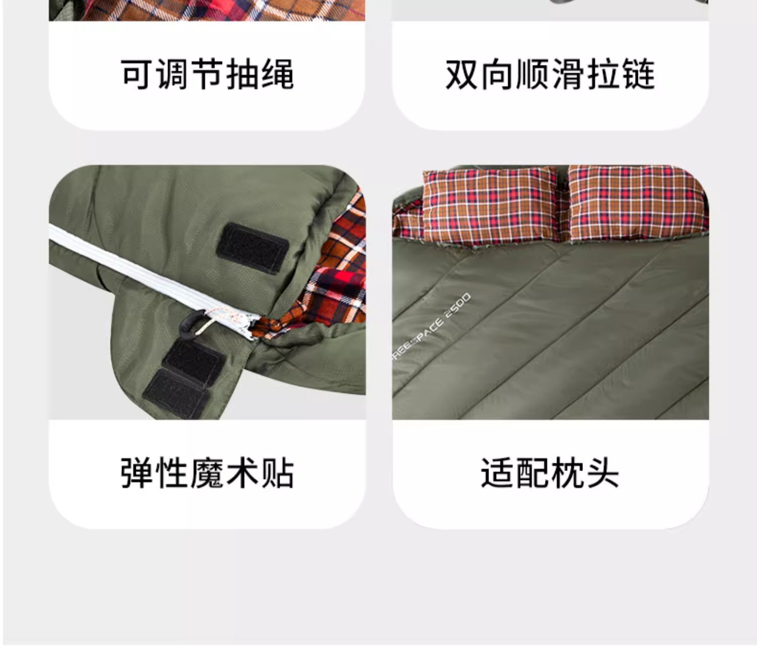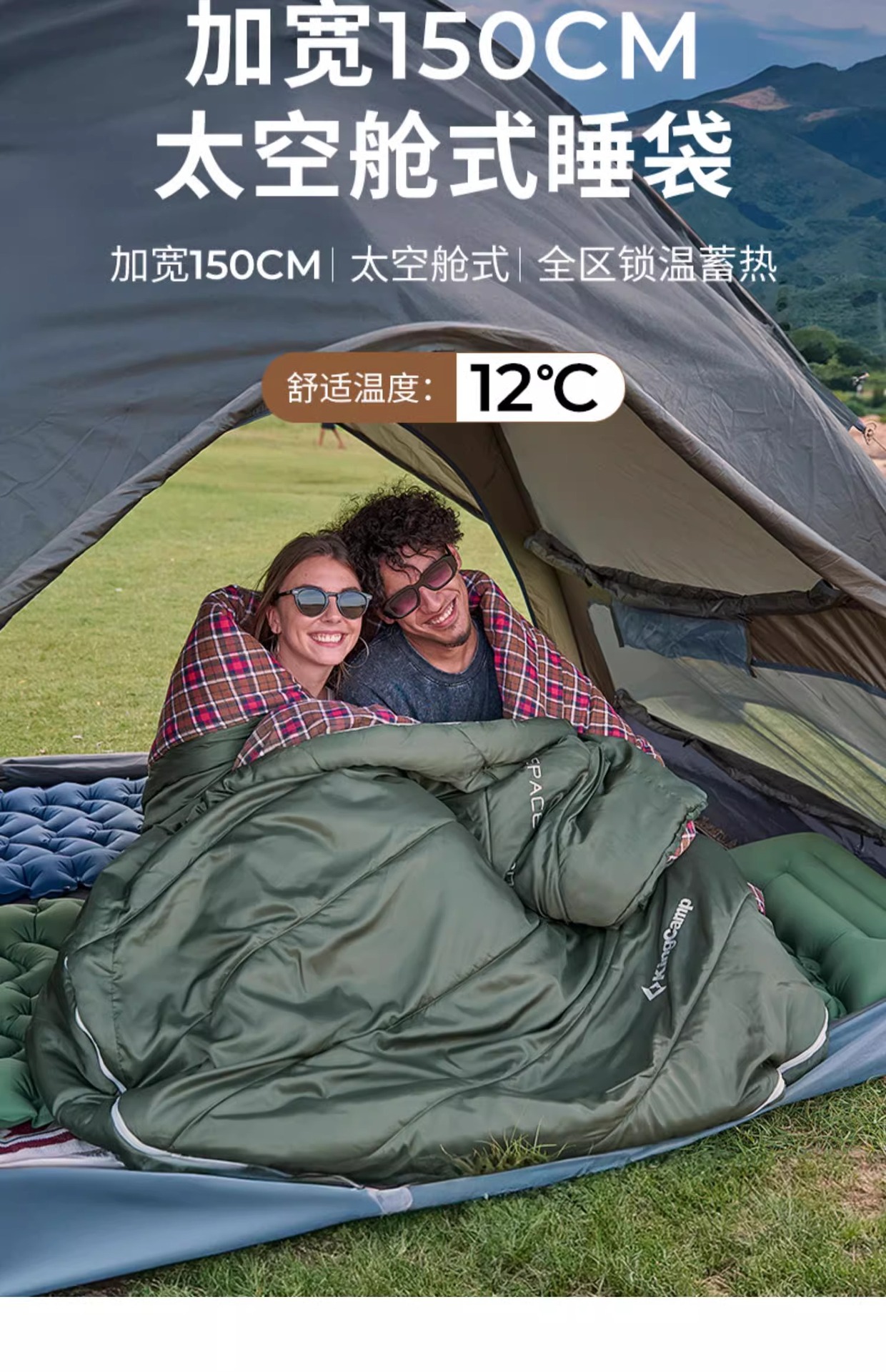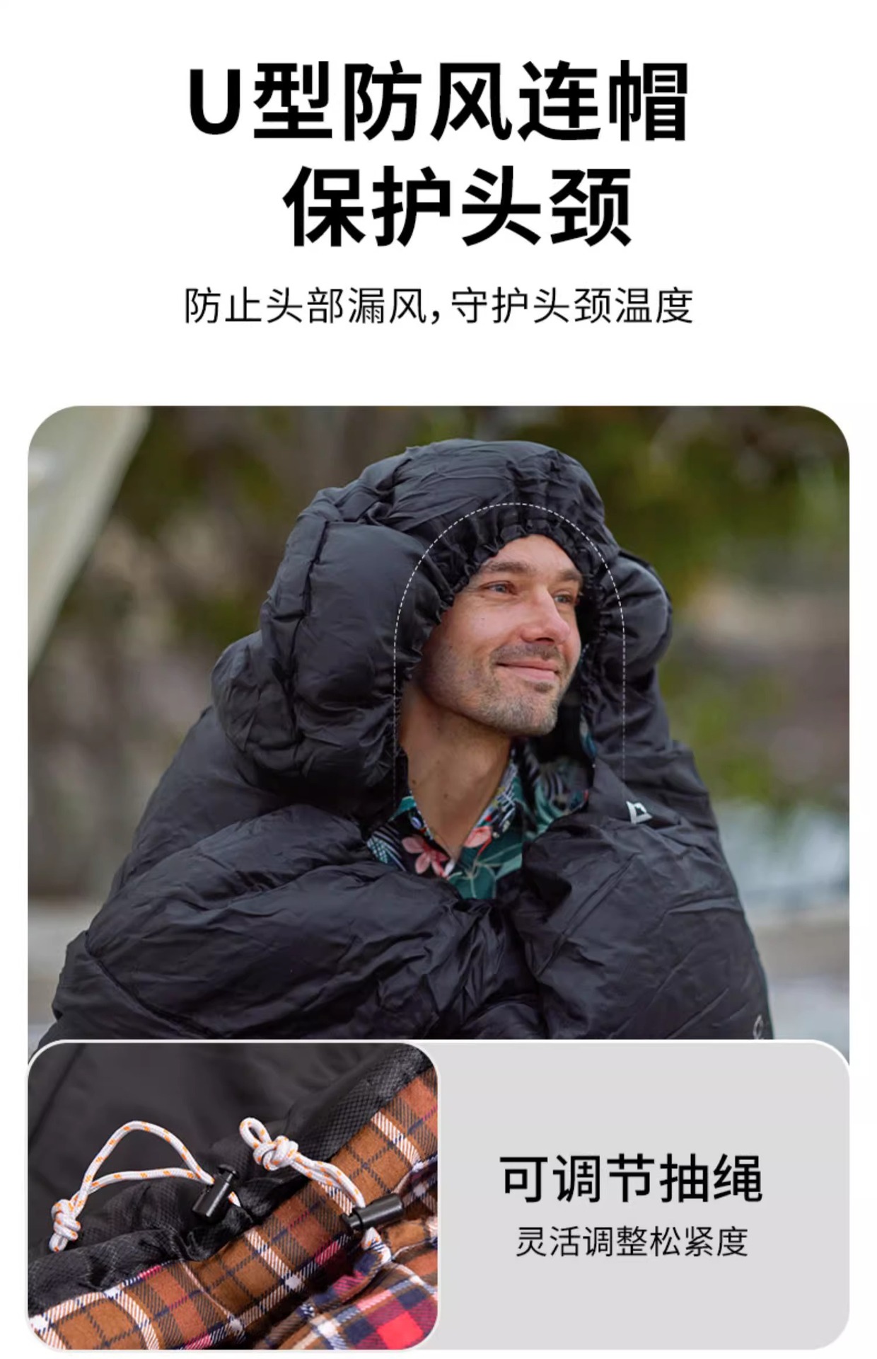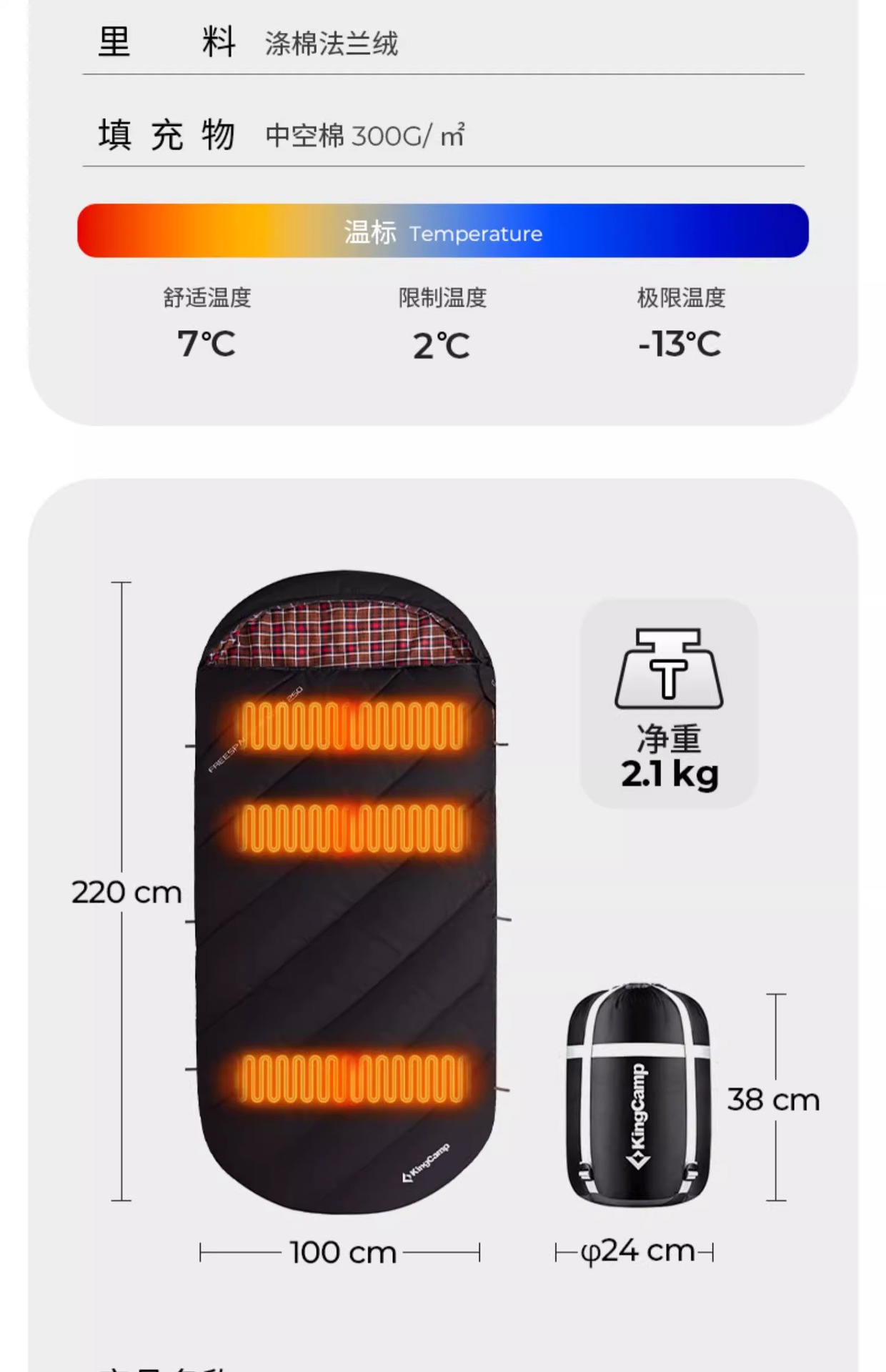 KingCamp 야외 슬리핑 백 성인 캠핑 두꺼운 한랭 방지 따뜻한 헤어 코튼 겨울 더티 방지 수분 방지 증가