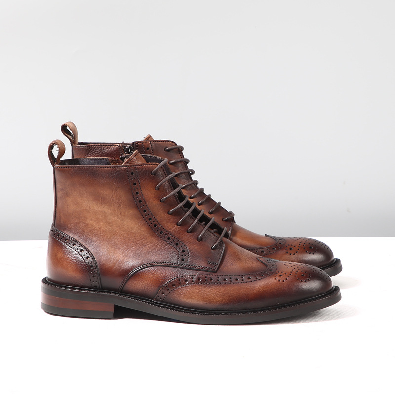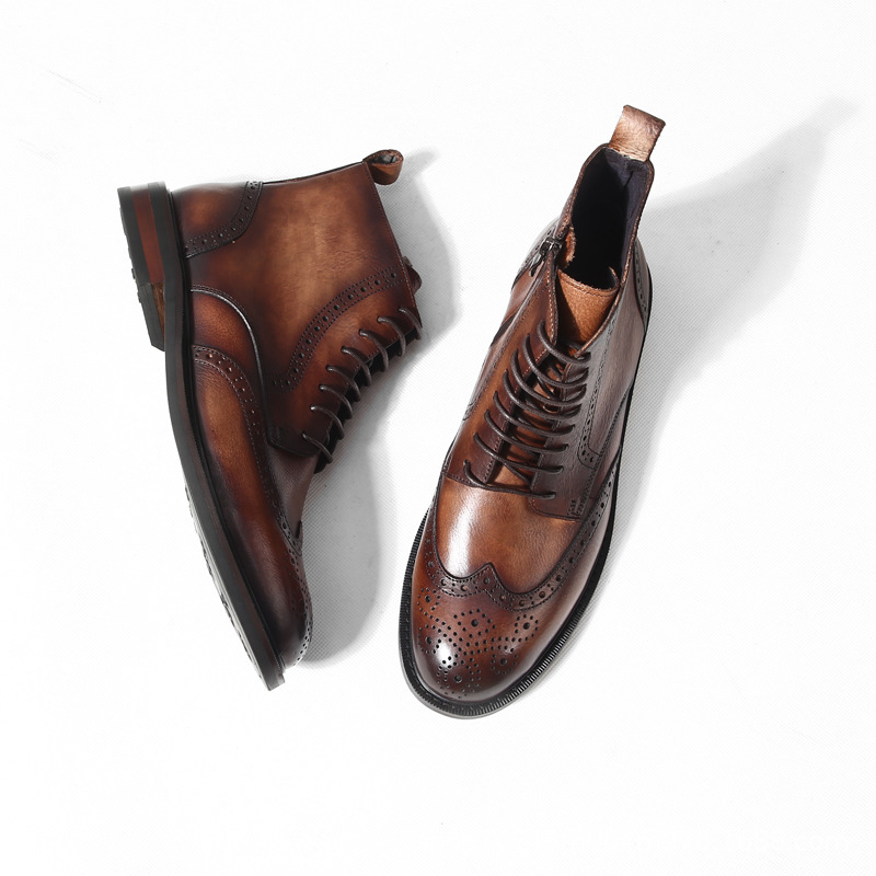레트로 마틴 브록 하이탑 카빙 가죽 남성 트렌디 캐주얼 가죽신발 두꺼운 밑창 가죽 부츠 키높이
