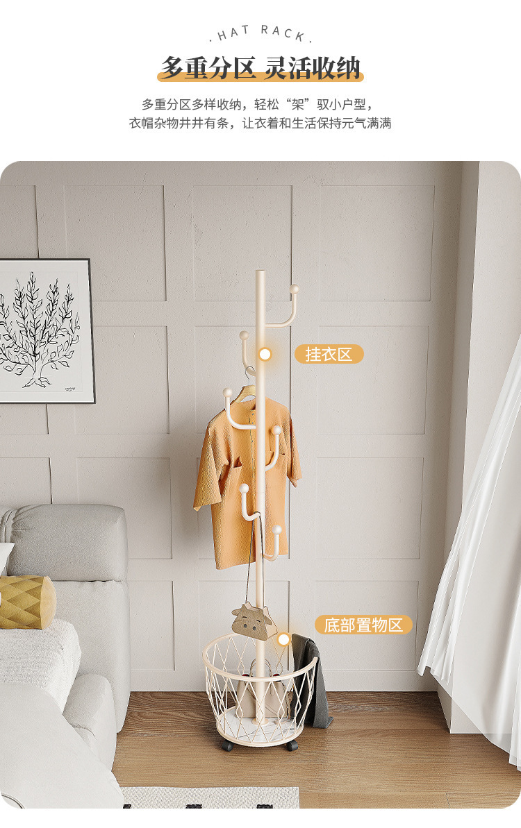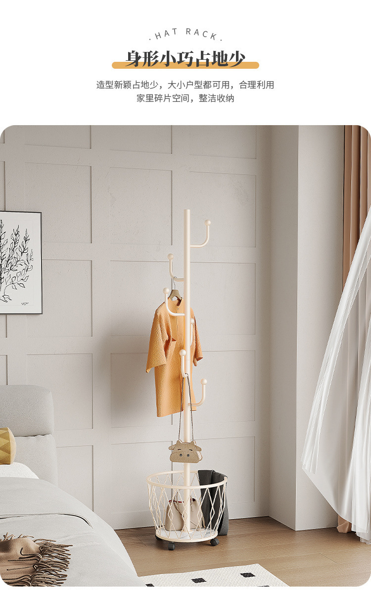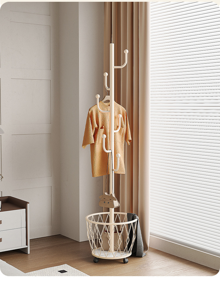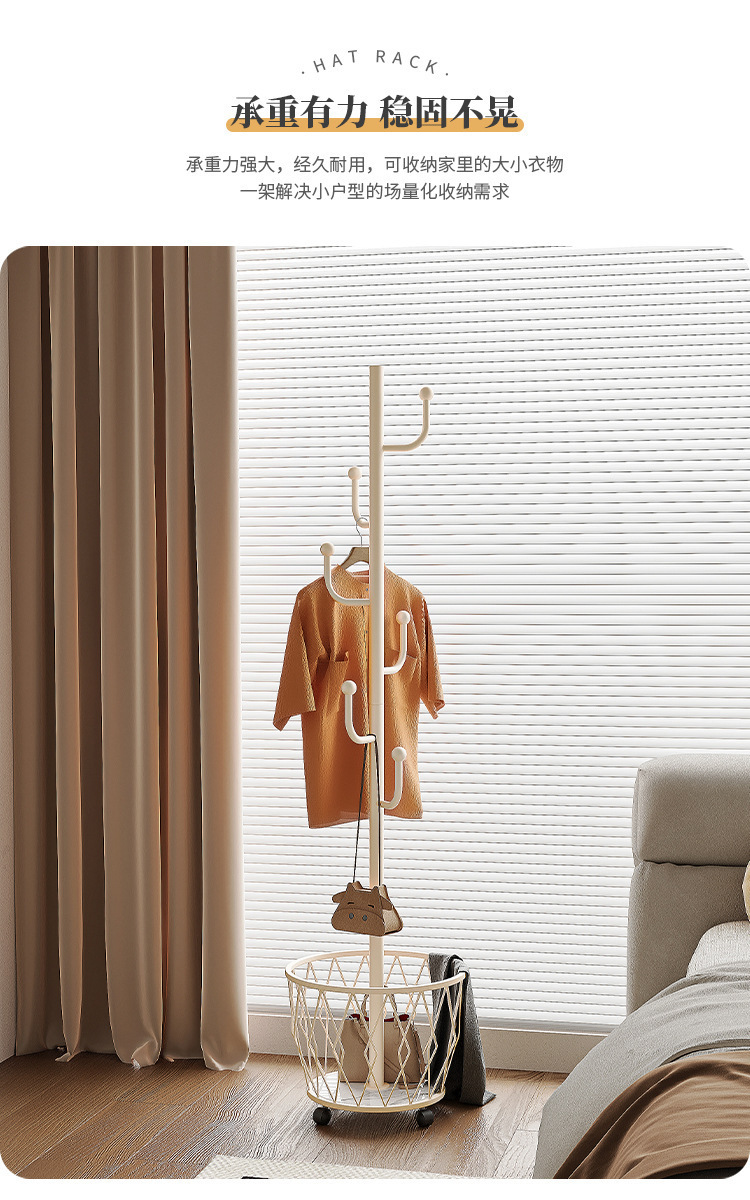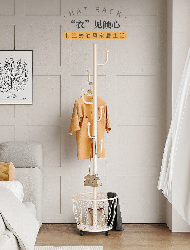 크림 라이트 럭셔리 플로어 스탠딩 코트 랙 현대 간단한 수직 이동식 옷걸이 가정용 다기능 옷 걸이 랙