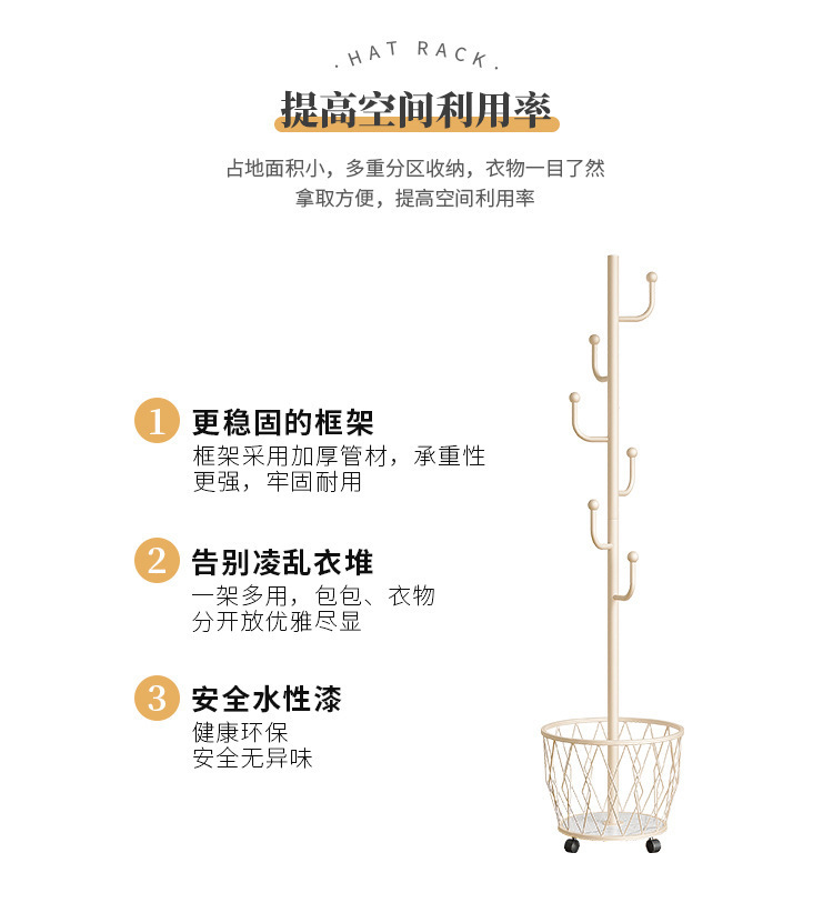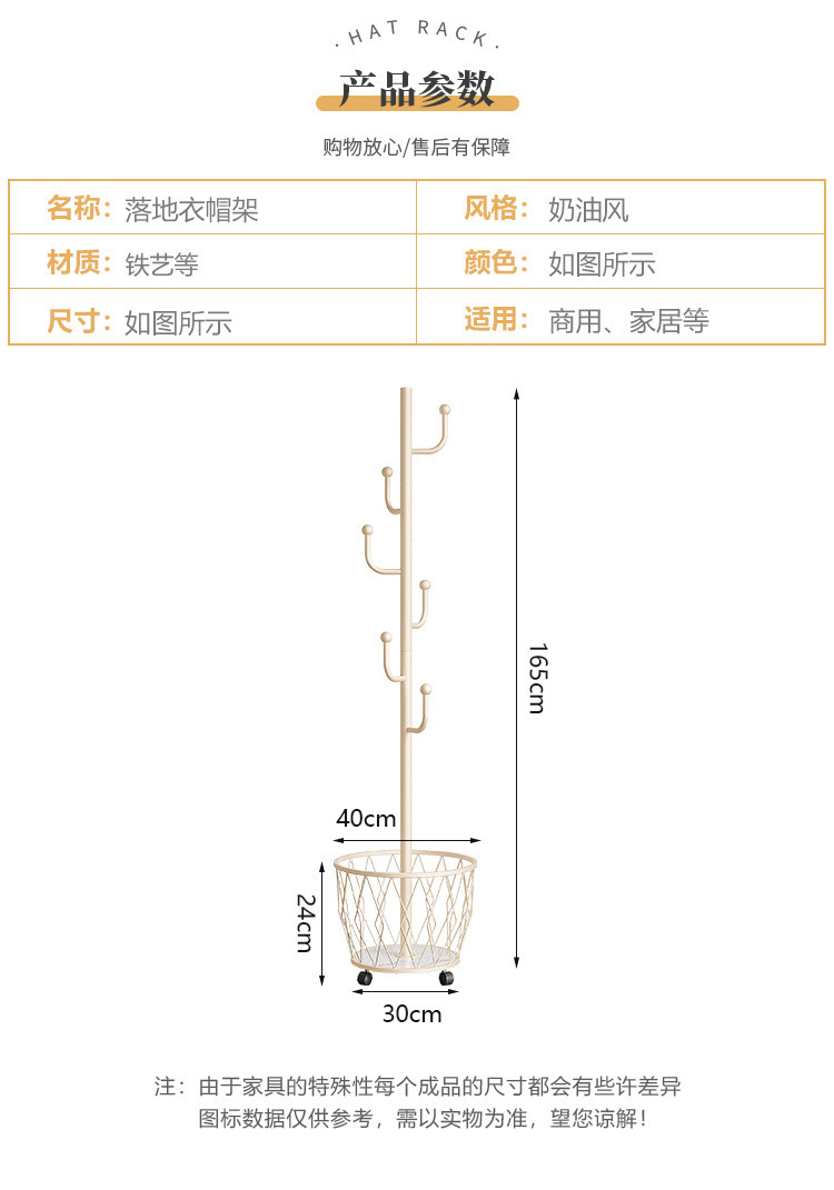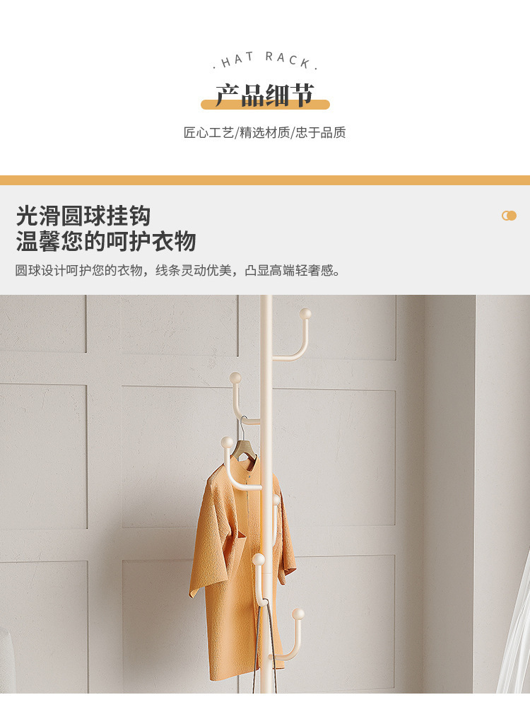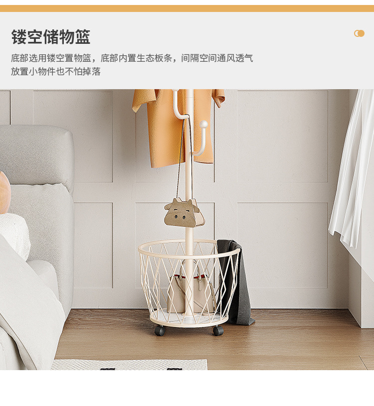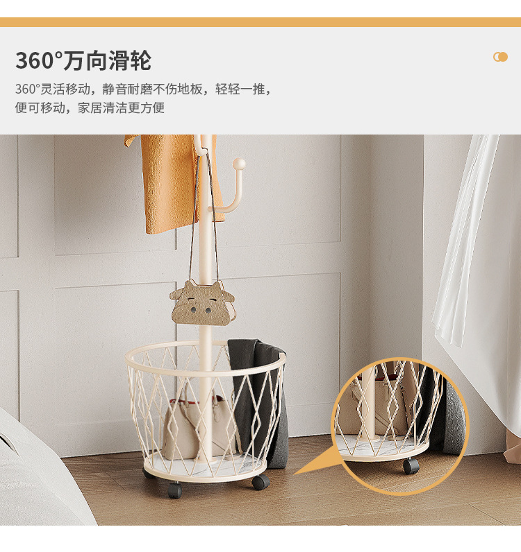 크림 라이트 럭셔리 플로어 스탠딩 코트 랙 현대 간단한 수직 이동식 옷걸이 가정용 다기능 옷 걸이 랙