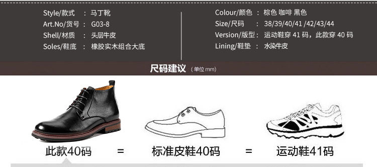 鞋面:头层牛皮