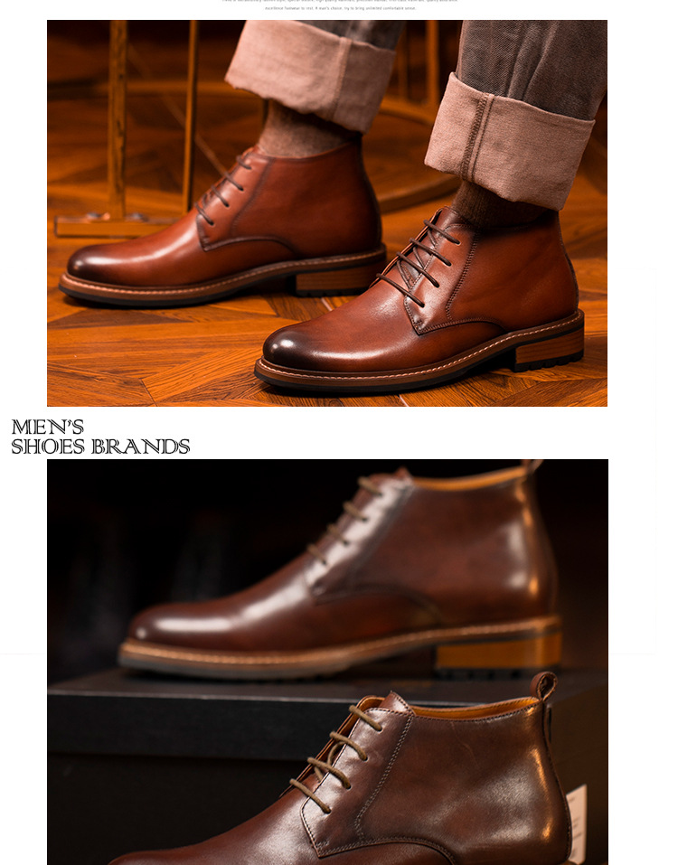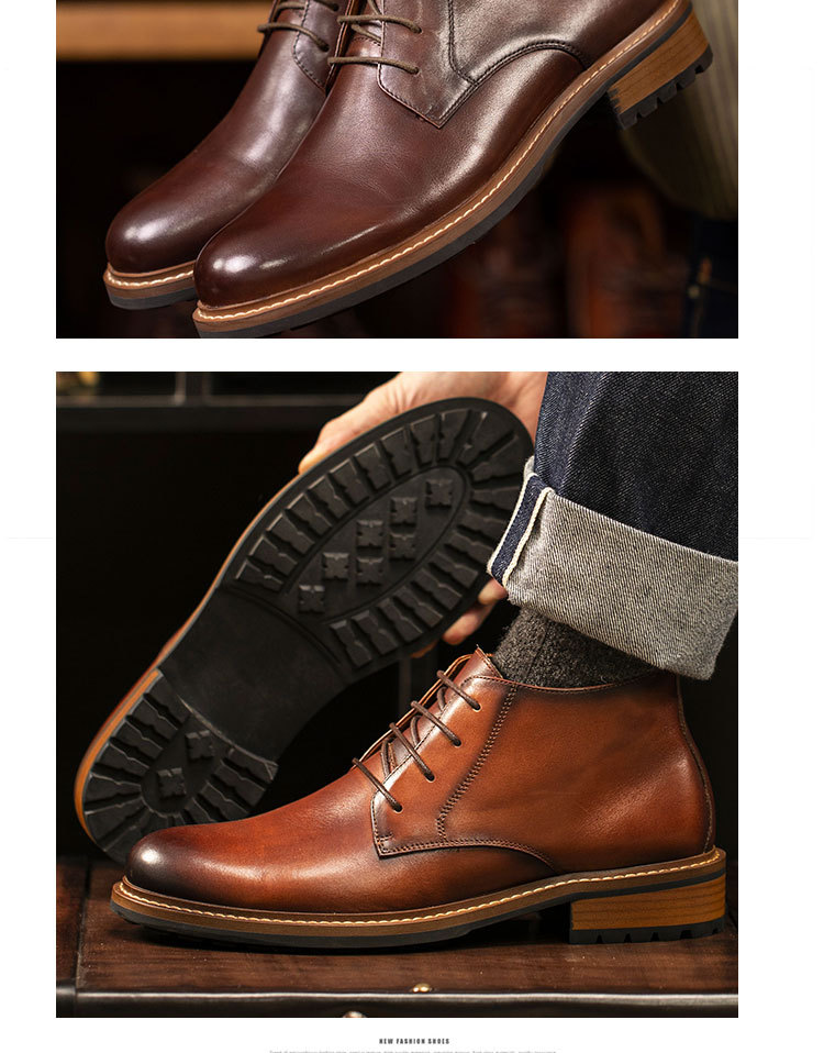 2024新款圆头男靴子复古马丁靴英伦风短靴真皮牛皮系带男靴批发