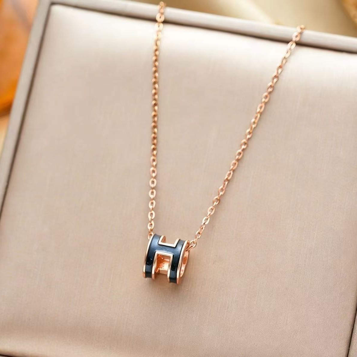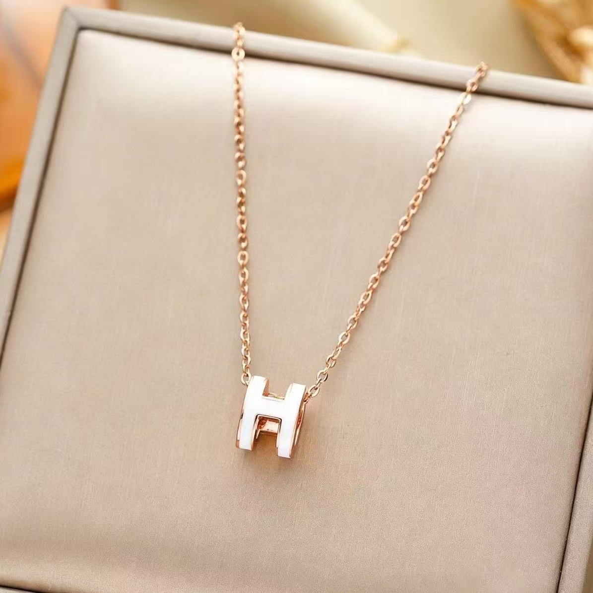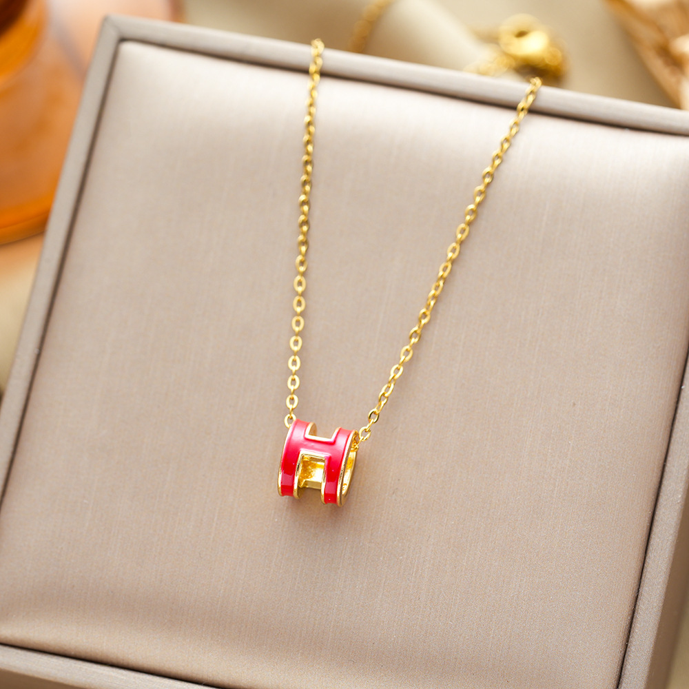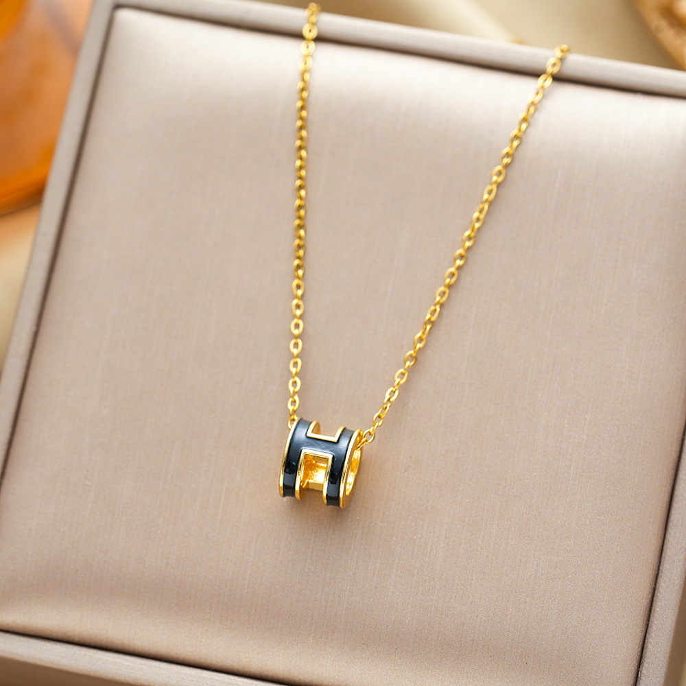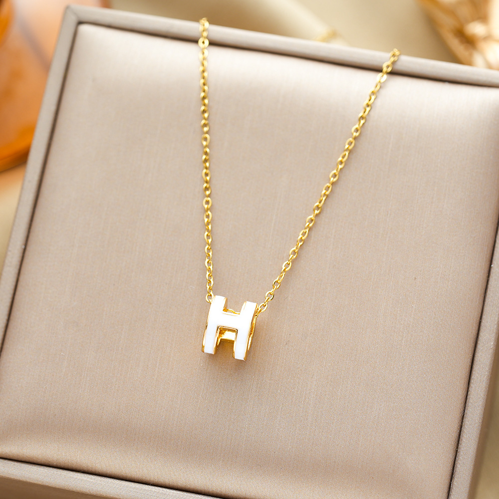 인터넷 연예인 핫 세일 라이트 럭셔리 오일 드롭 H 편지 티타늄 스틸 목걸이 여성의 간단한 우아한 올 매치 콜라본 체인 펜던트 쥬얼리