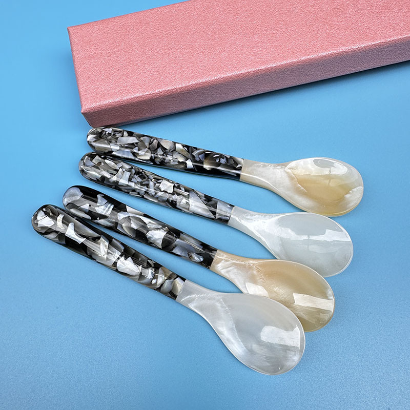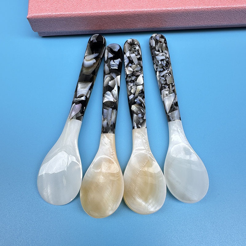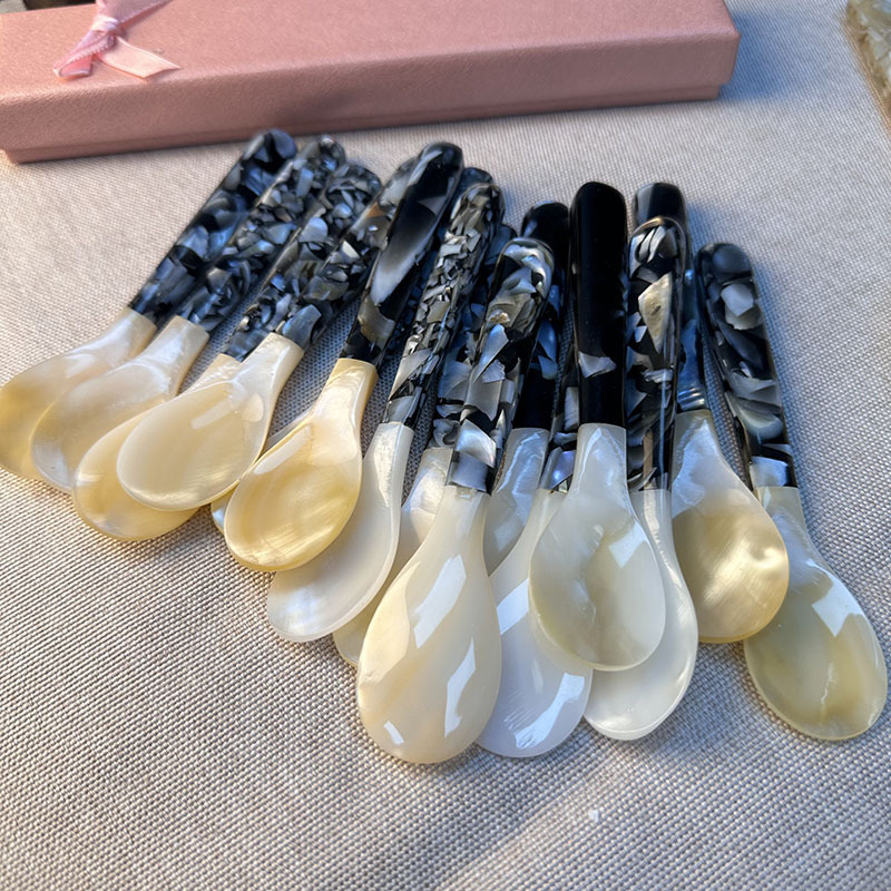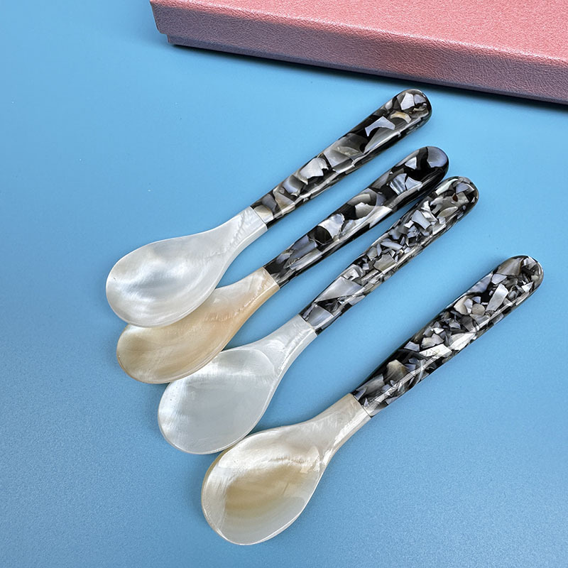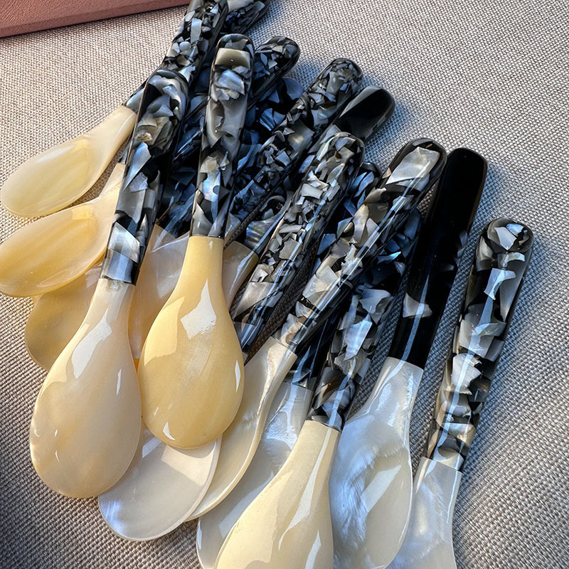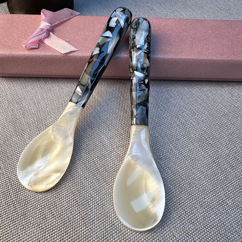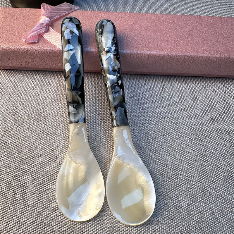 쉘스킨 외국 무역 스푼 12cm 블랙 쉘 아크릴 손잡이 가정용 고급 스푼 믹싱 스푼 공예 스푼
