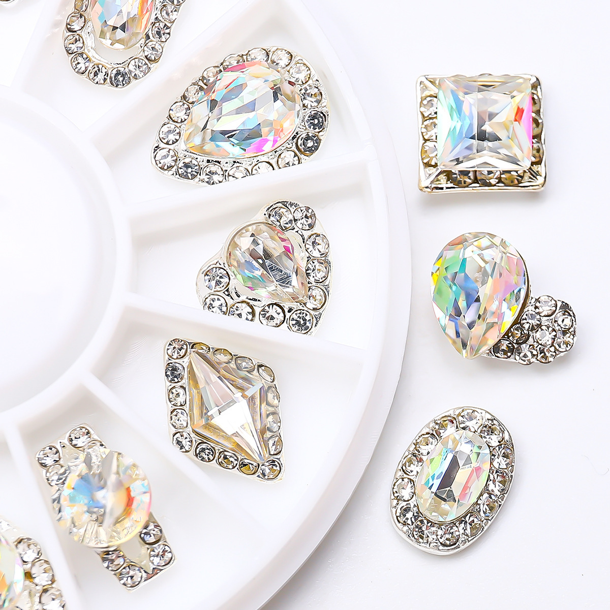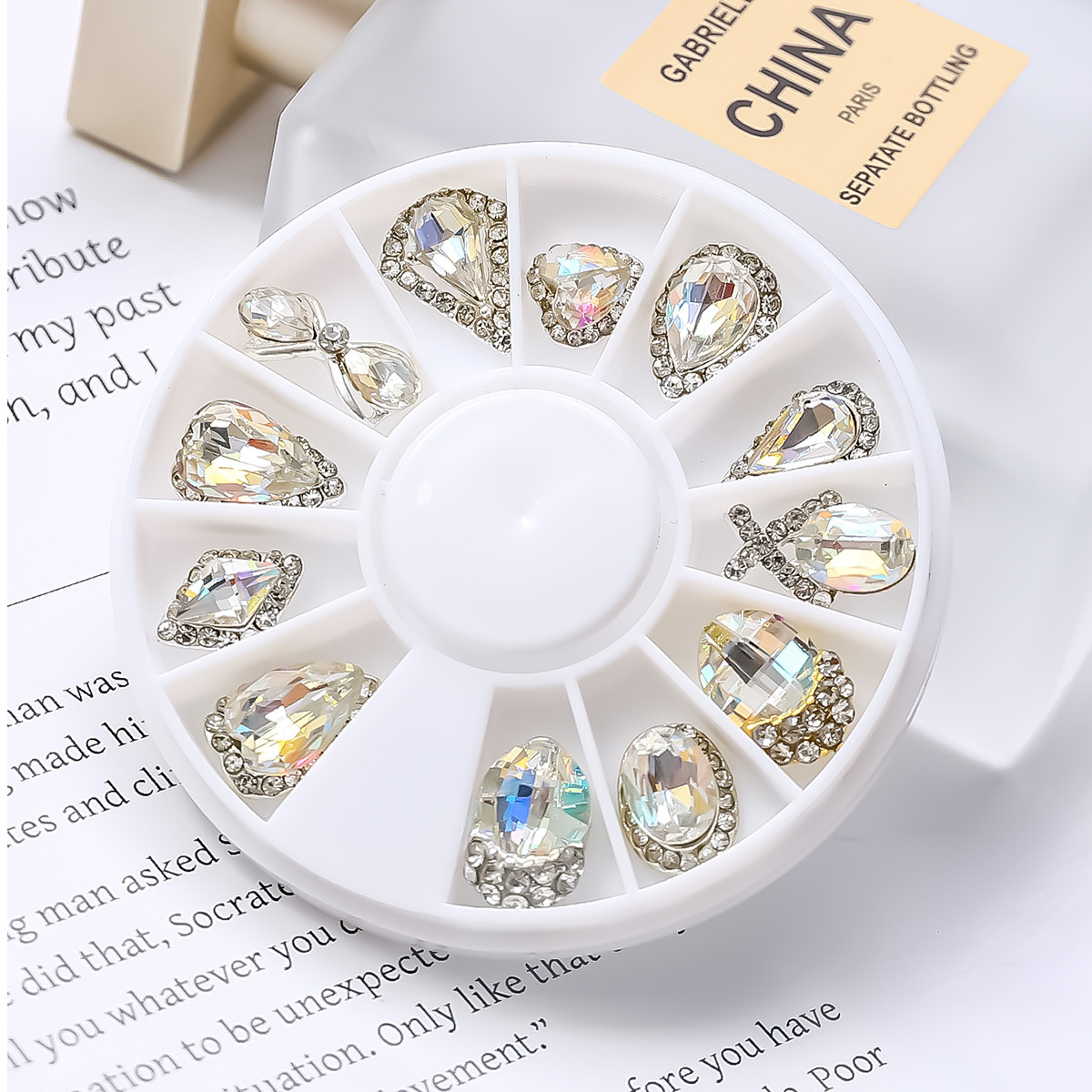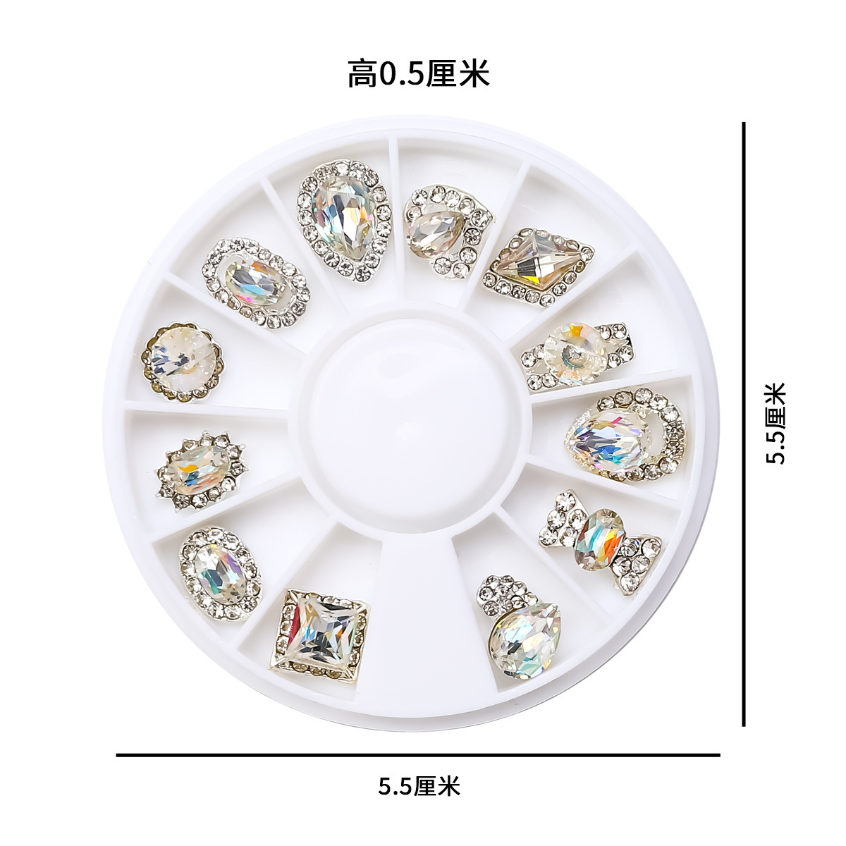 12 그리드 다이아몬드 네일 아트 쥬얼리 넷 축하 플랫 바닥 폭발 매니큐어 다이아몬드 네일 아트 쥬얼리 지르콘 슈퍼 플래시 장식 혼합 디스크