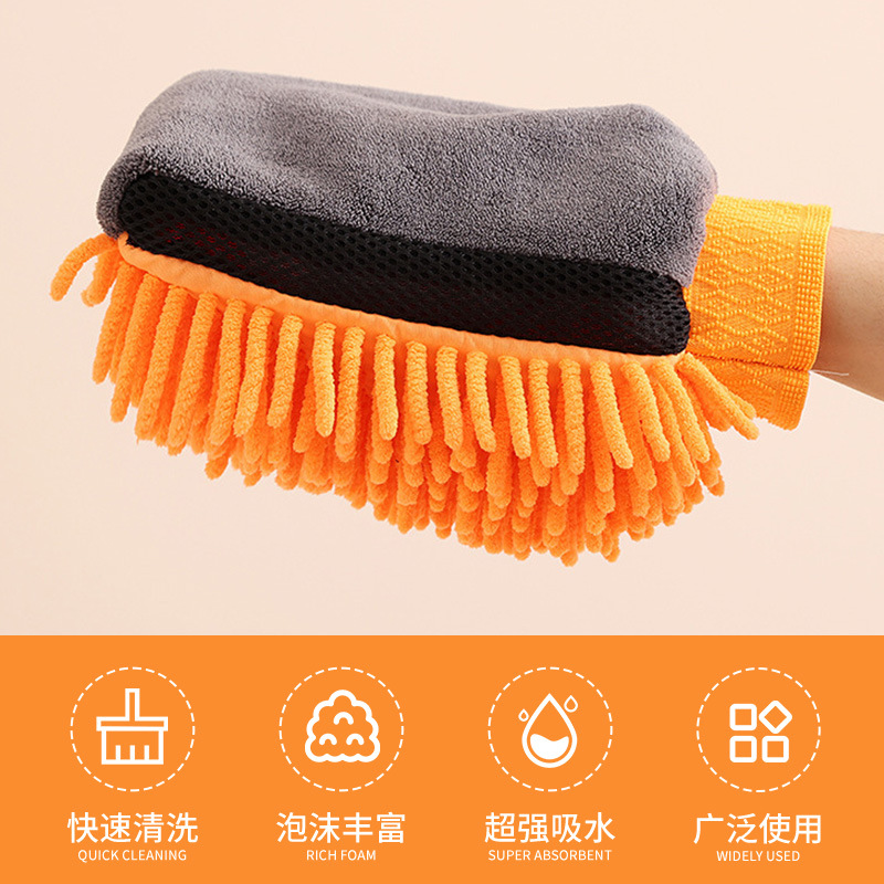 새로운 세차 산호 양털 chenille 이중 목적 자동차 청소 장갑 집안 먼지 제거 곰 발 세차 특수 도구