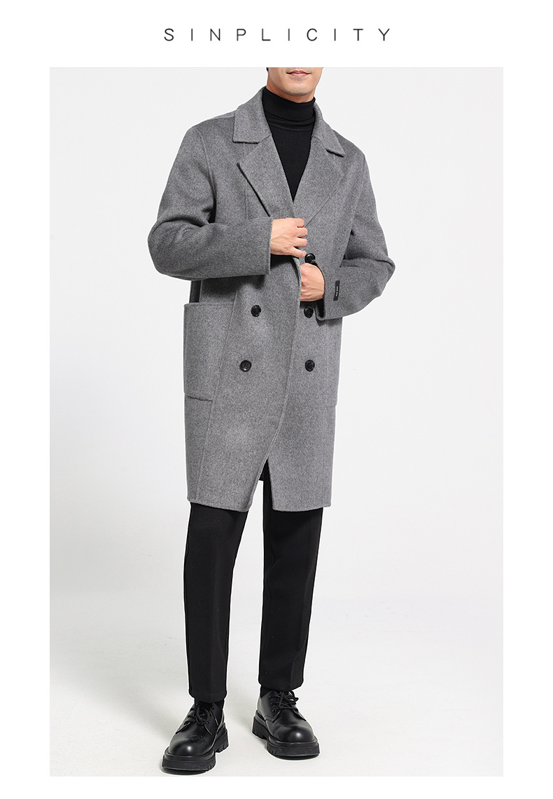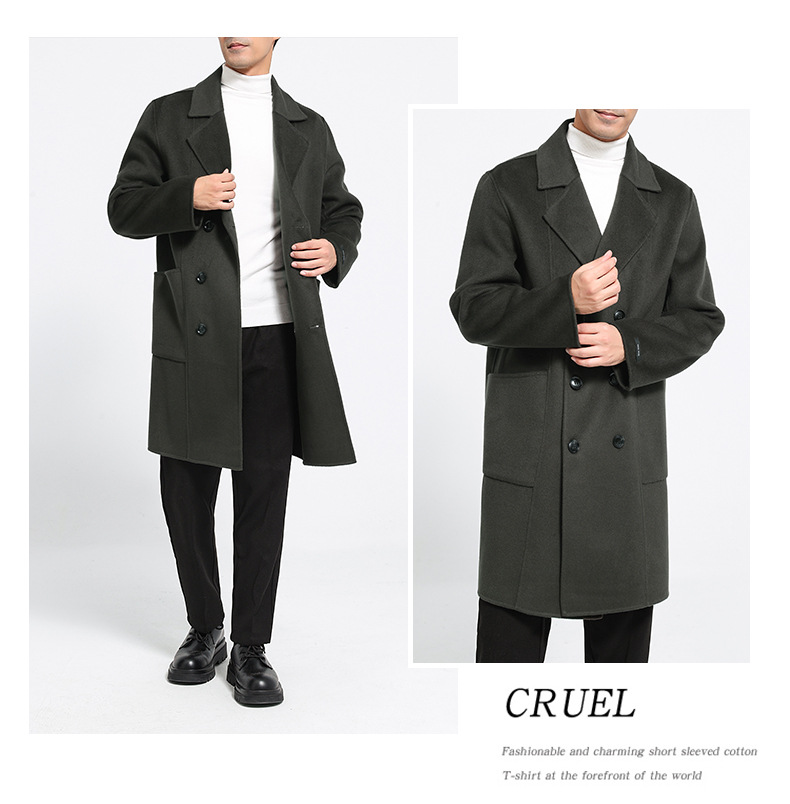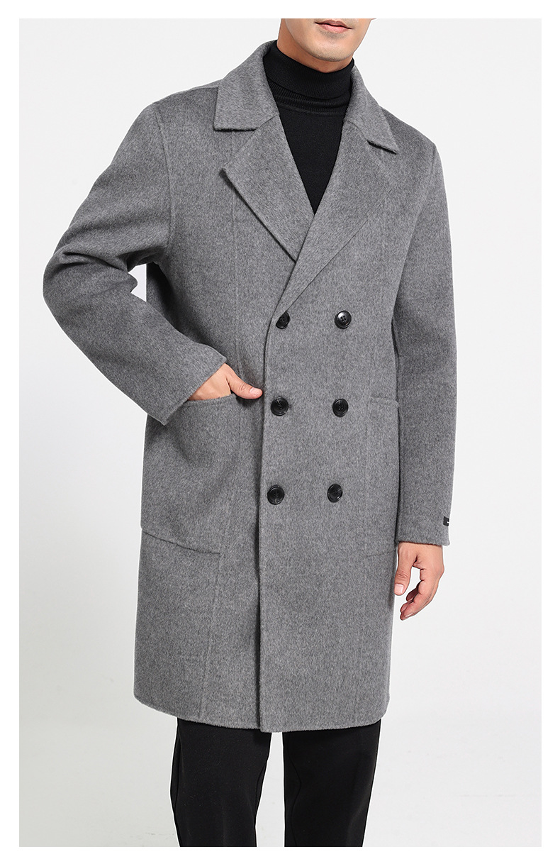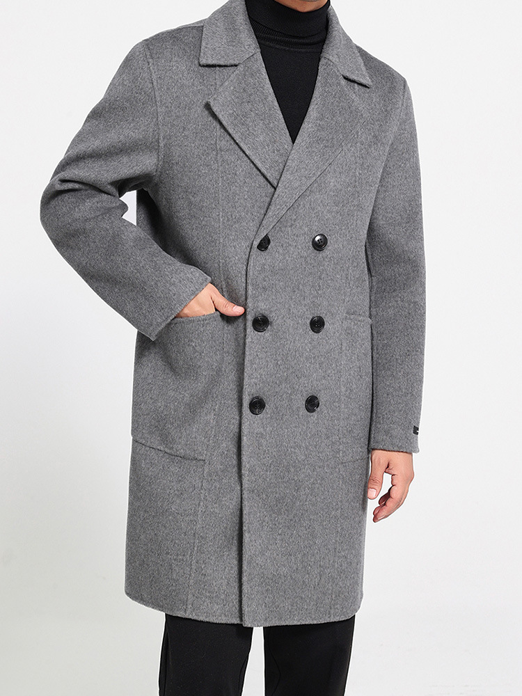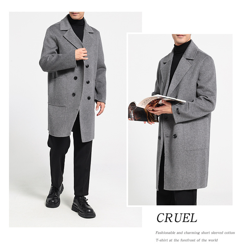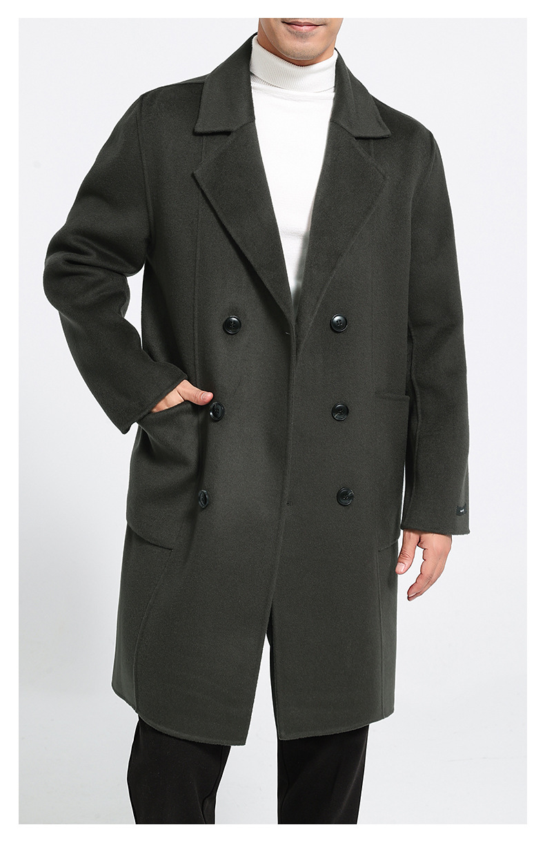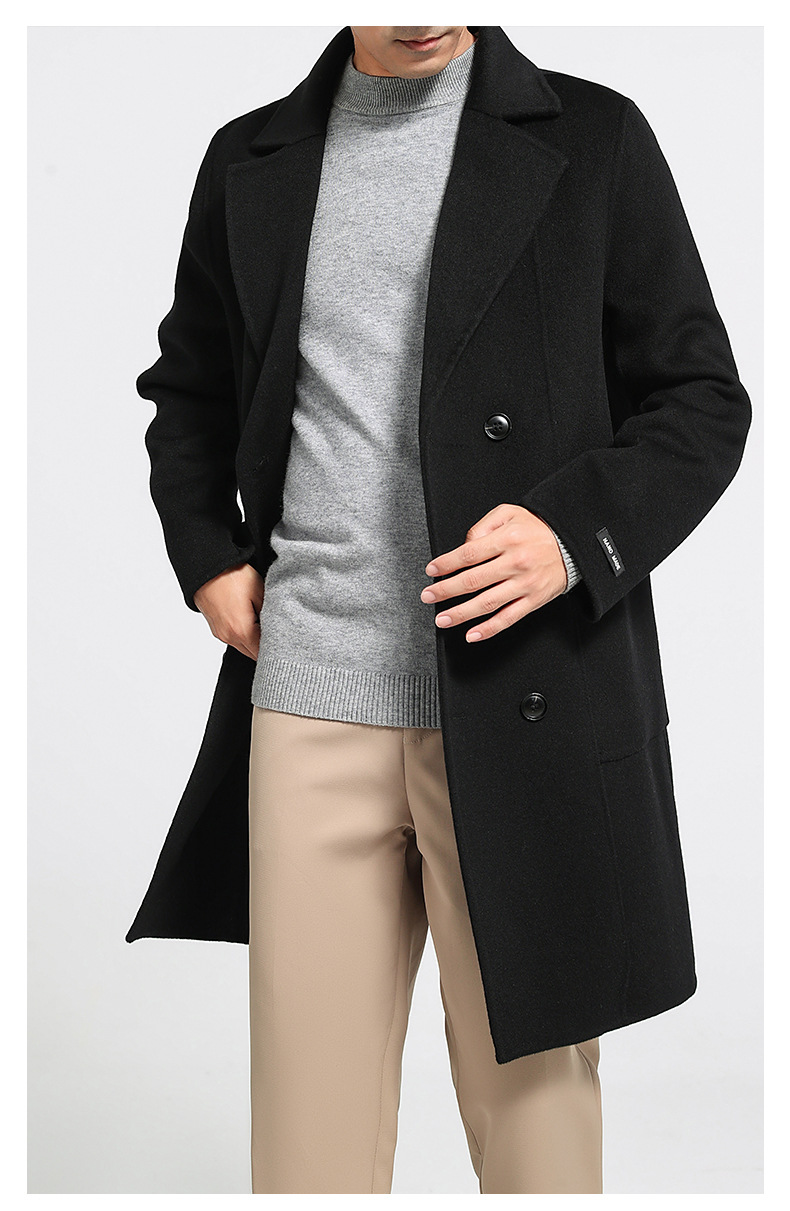 가을과 겨울 뉴 세트 칼라 양면 캐시미어 코트 남성용 중간 길이의 더블 브레스트 100% 울 윈드 브레이커 코트