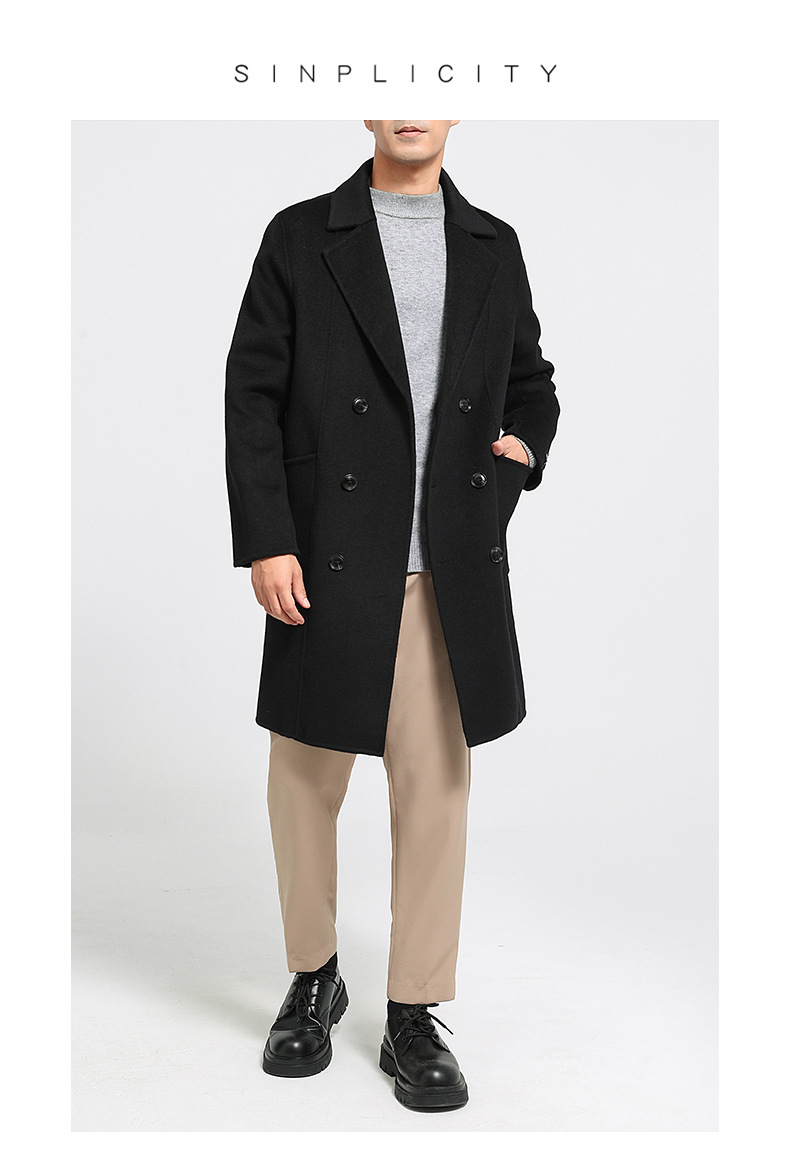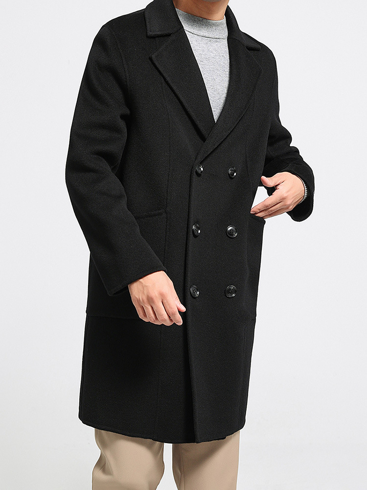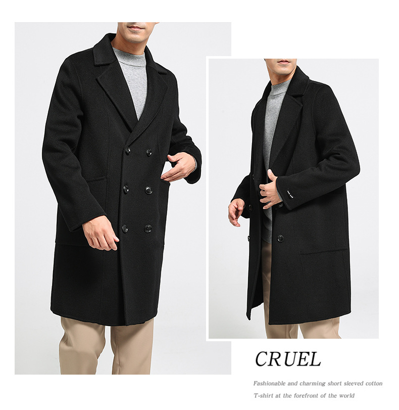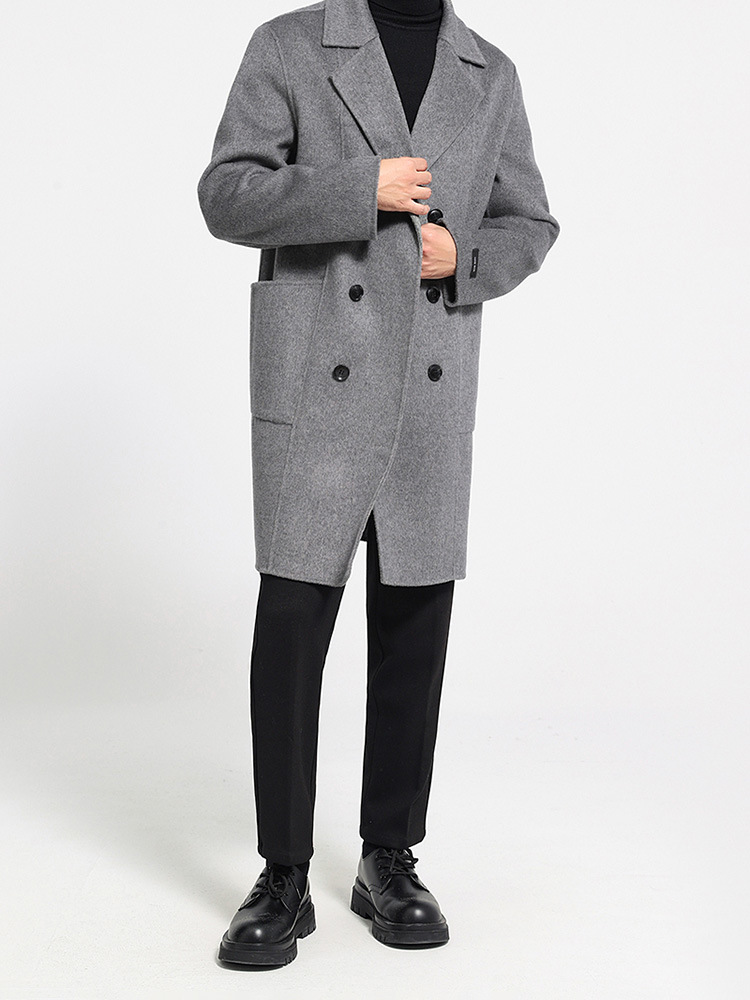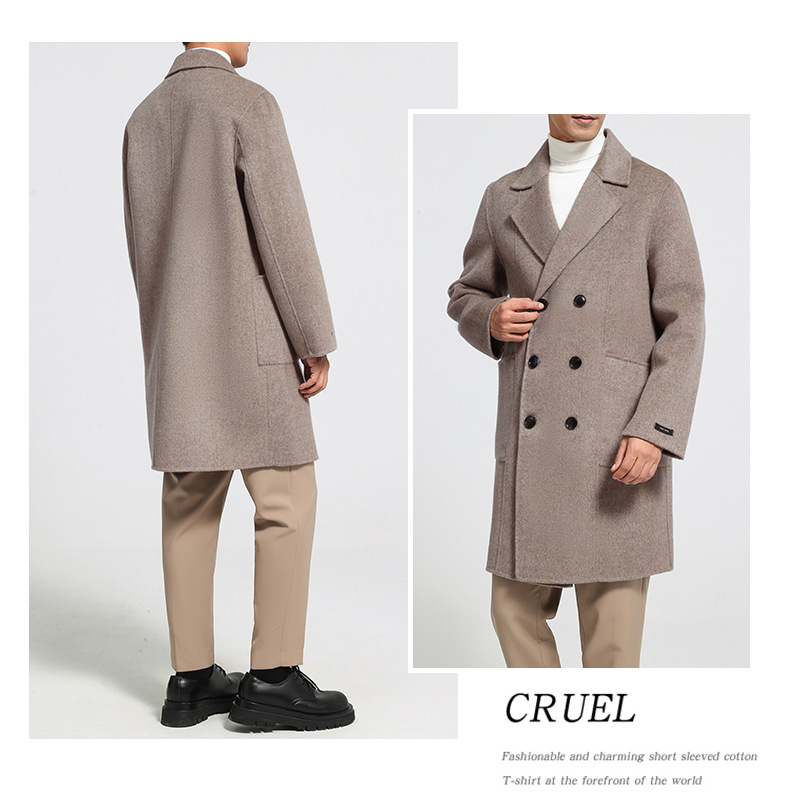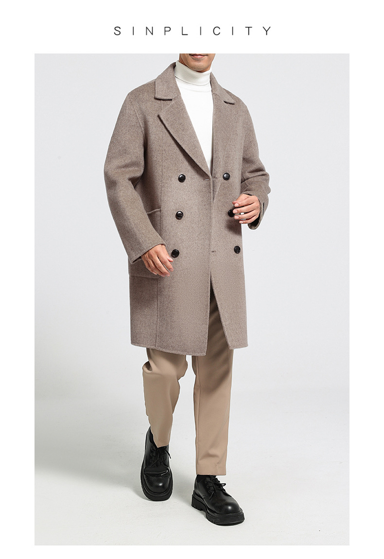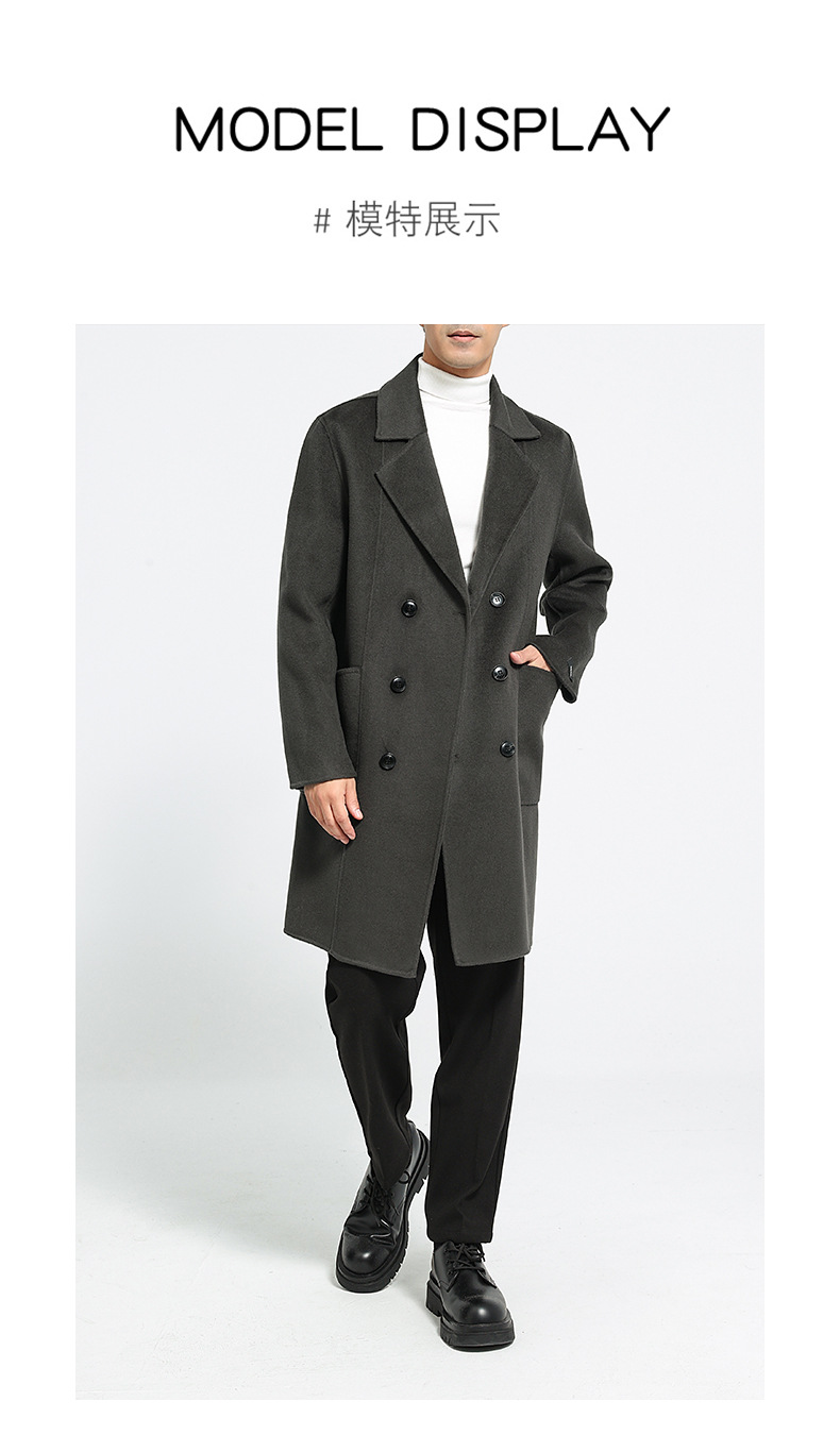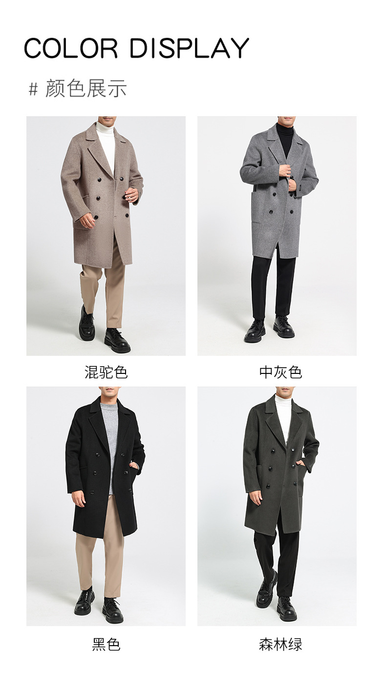 가을과 겨울 뉴 세트 칼라 양면 캐시미어 코트 남성용 중간 길이의 더블 브레스트 100% 울 윈드 브레이커 코트