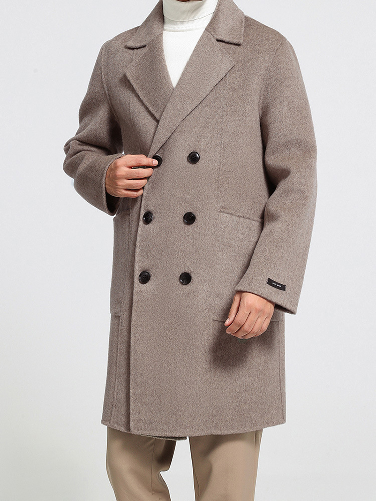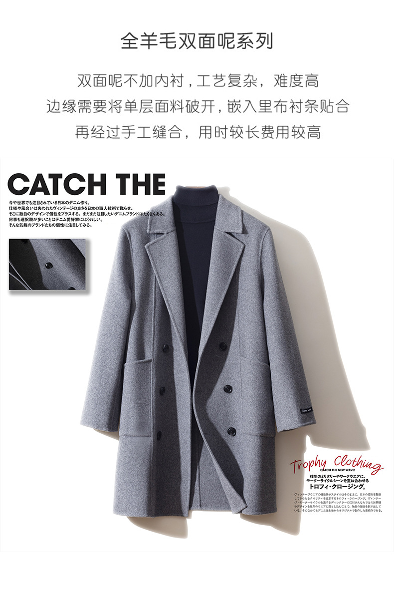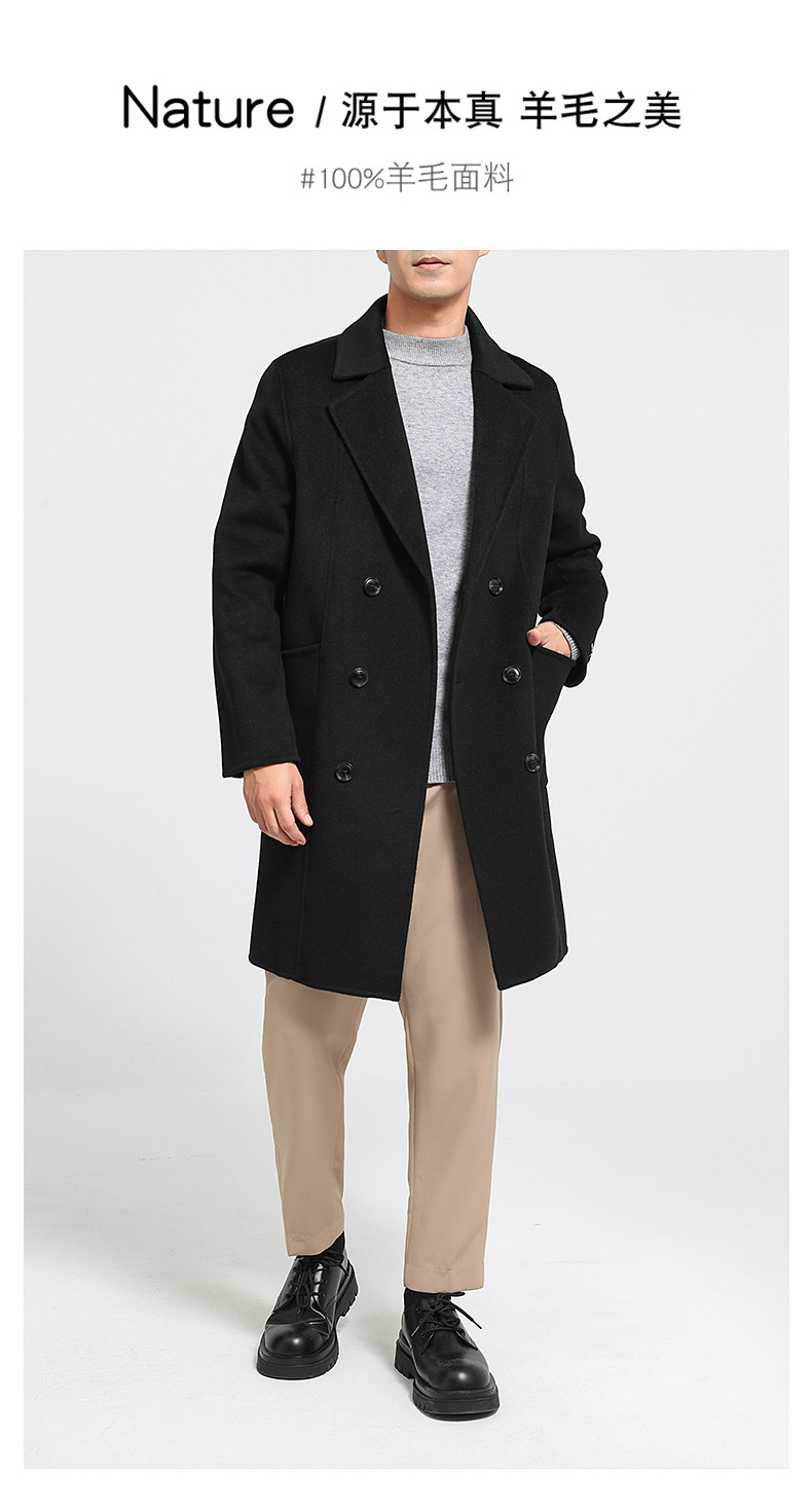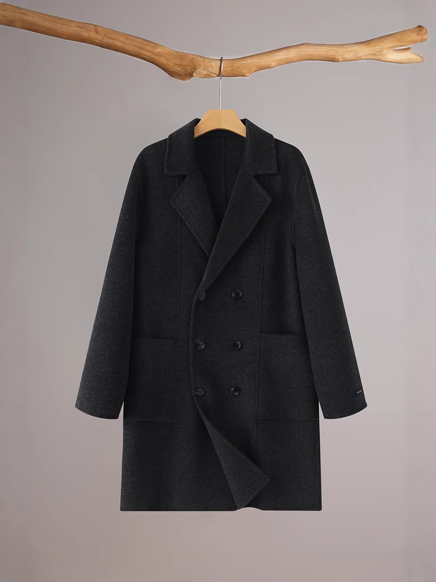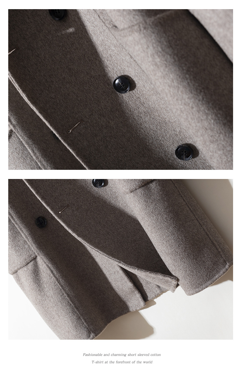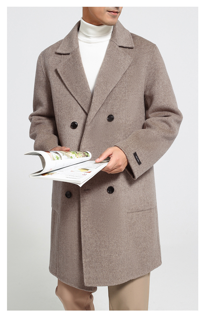 가을과 겨울 뉴 세트 칼라 양면 캐시미어 코트 남성용 중간 길이의 더블 브레스트 100% 울 윈드 브레이커 코트