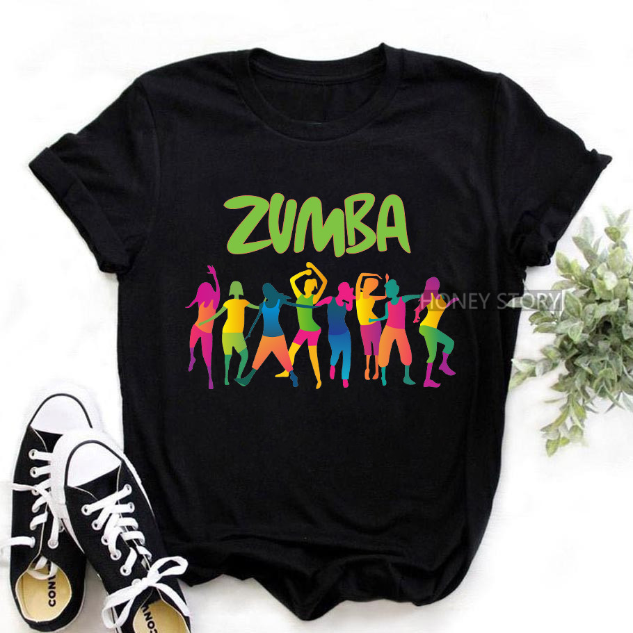 줌바 줌바 댄스 수채화 프린트 여성 티셔츠 패션 하라주쿠 여성 힙합 스트리트 쇼트 슬리브 인 슈퍼 파이어