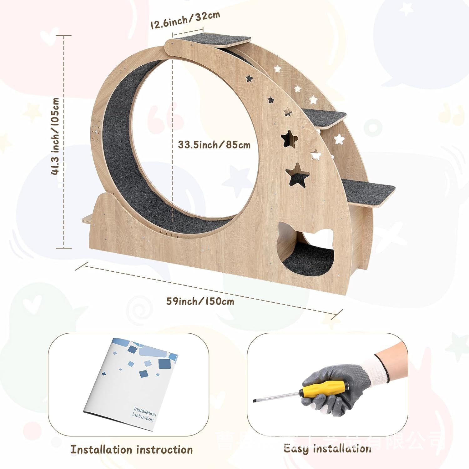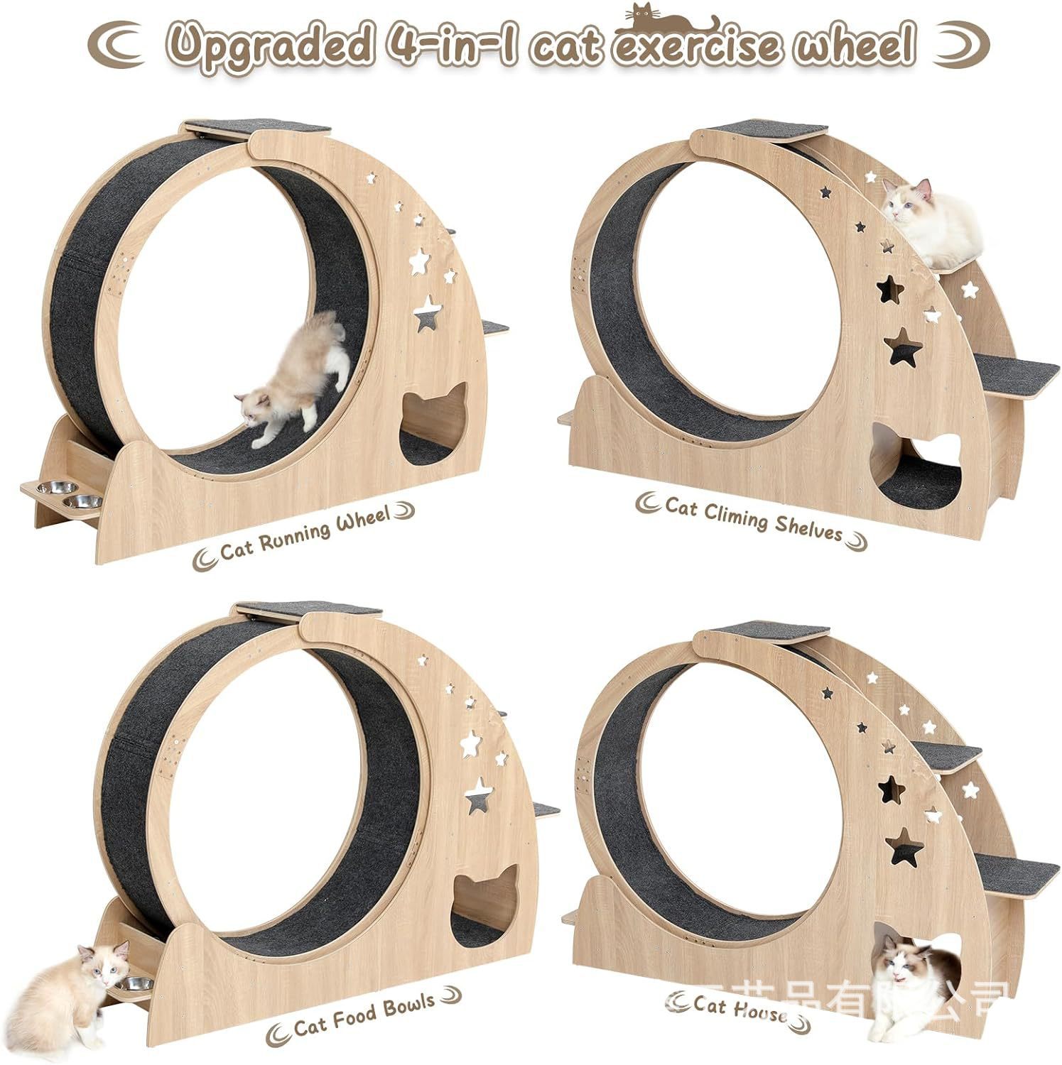 단단한 나무 다층 고양이 러닝 머신 애완 동물 스포츠 피트니스 넥타이 발 고양이 등반 랙 고양이 장난감없이 실내 침묵 롤러
