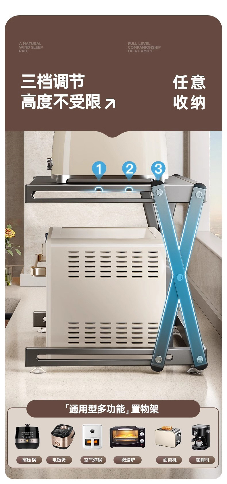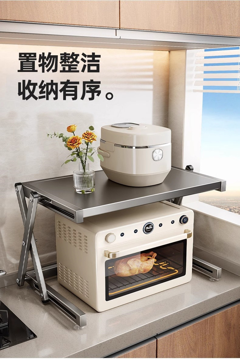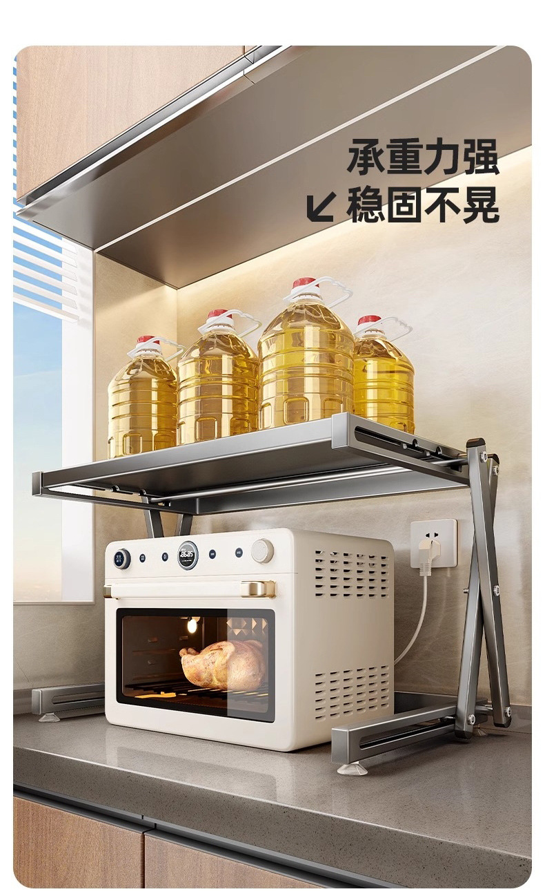 주방 수납 선반 가정용 이중층 조리대 수납 랙 전자레인지 랙 밥솥 랙 접이식 전자레인지 랙