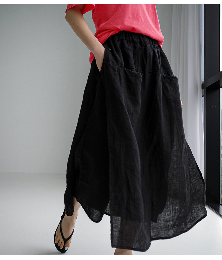 Linen Large Split Culottes 원피스 여성용 봄과 여름 느슨한 플러스 사이즈 캐주얼 발목 길이 바지 가짜 2 피스 코튼 및 리넨 와이드 레그 팬츠 스커트