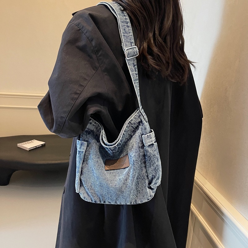 패션 양각 편지 데님 가방 2024 새로운 질감 패션 캐주얼 숄더백 시간 간단한 숄더백