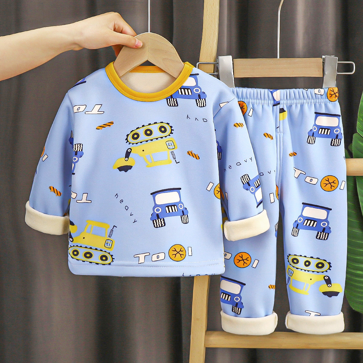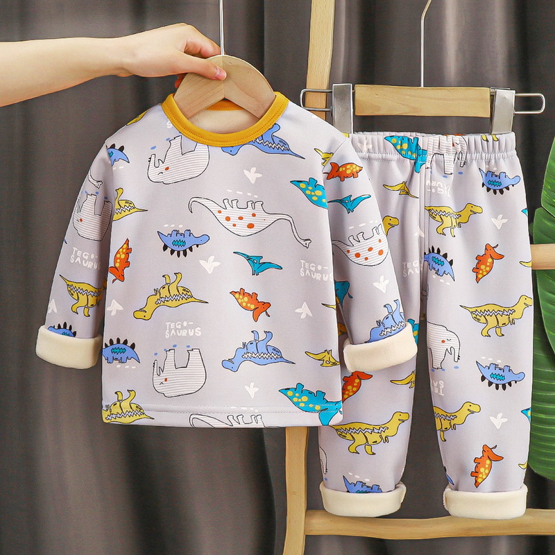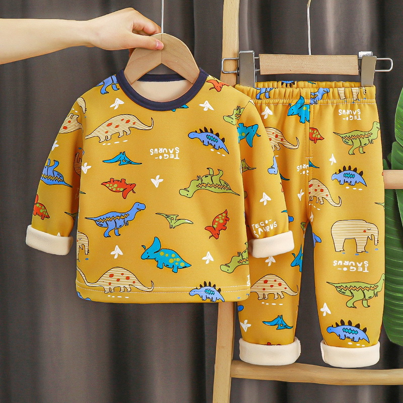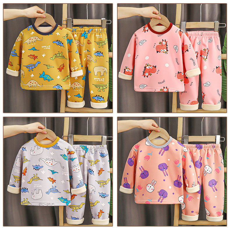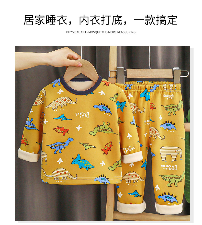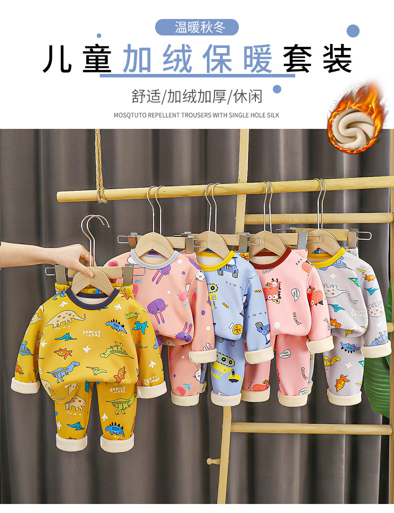 어린이 열 속옷 세트 우유 실크 소년과 소녀 기모 두꺼운 가을 옷과 바지 아기 홈 잠옷
