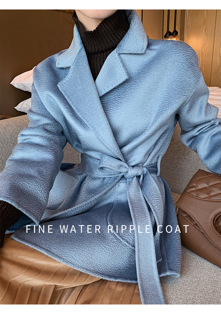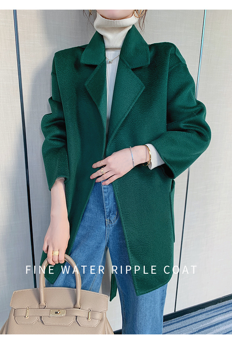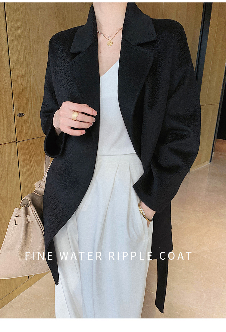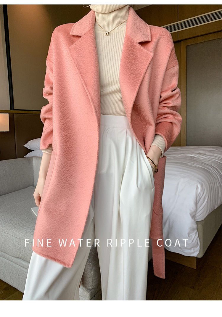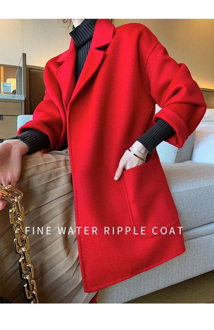 2024 가을과 겨울 물 파문 양면 양모 캐시미어 코트 여성용 중형 및 롱 나이트 가운 바람 느슨한 울 코트