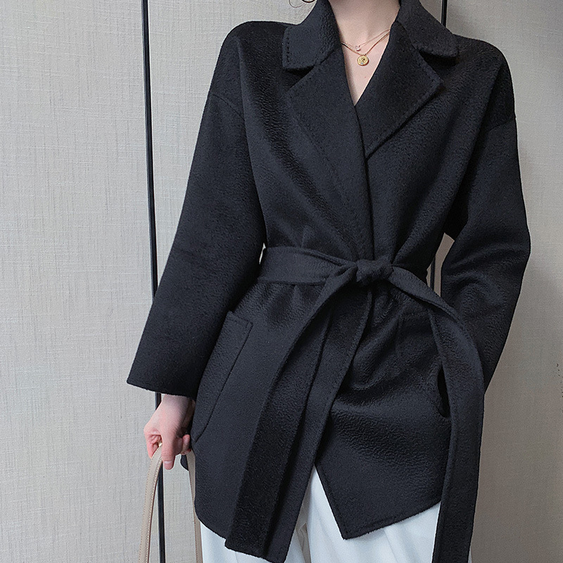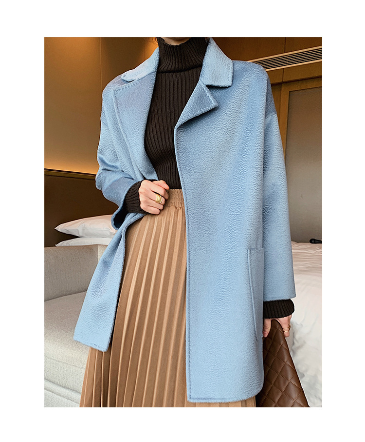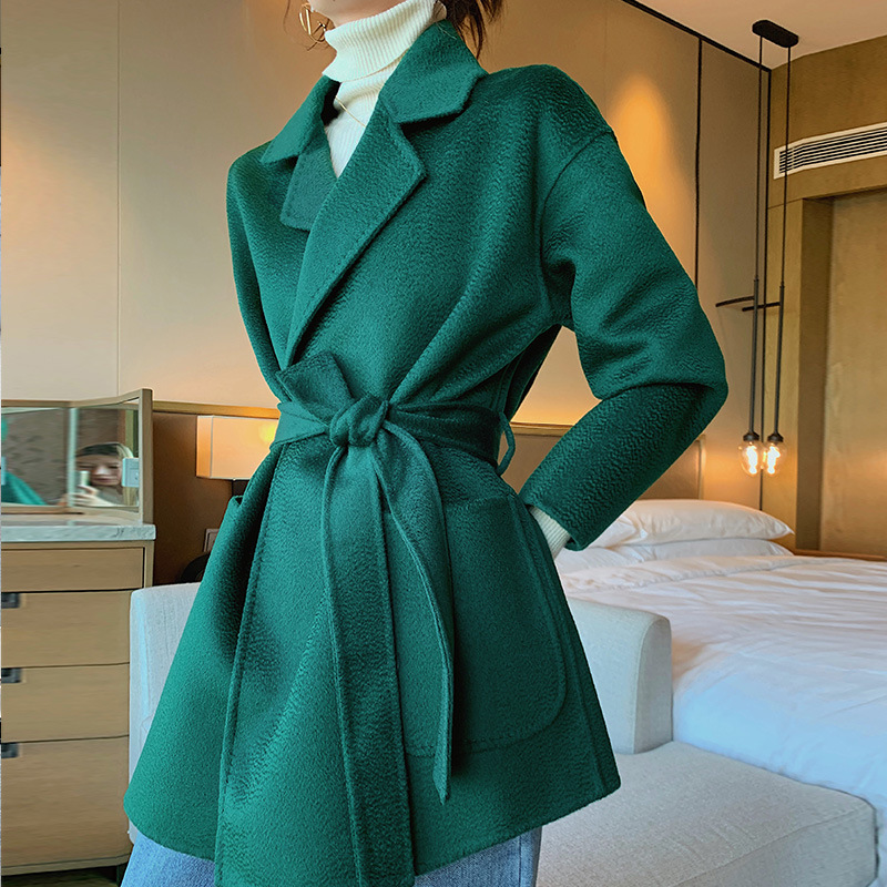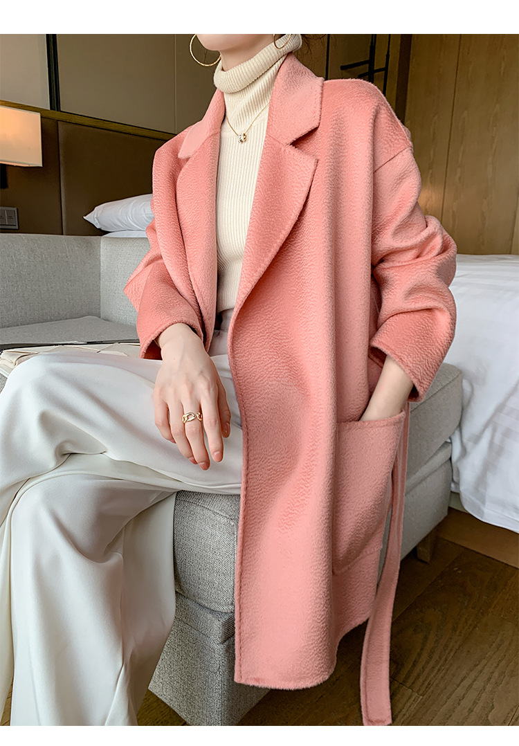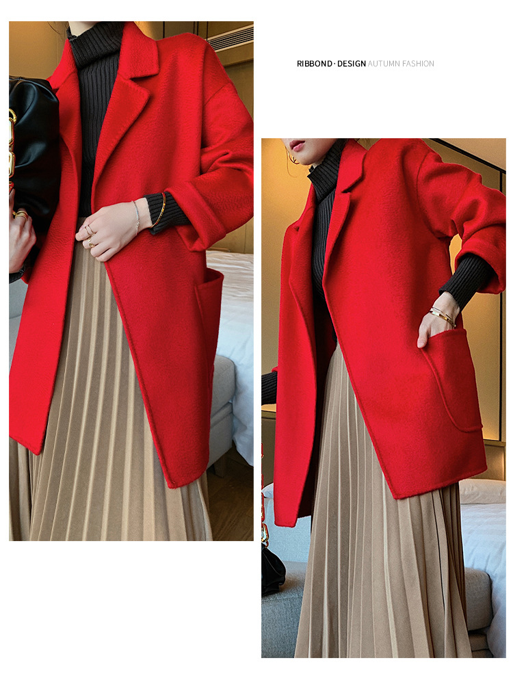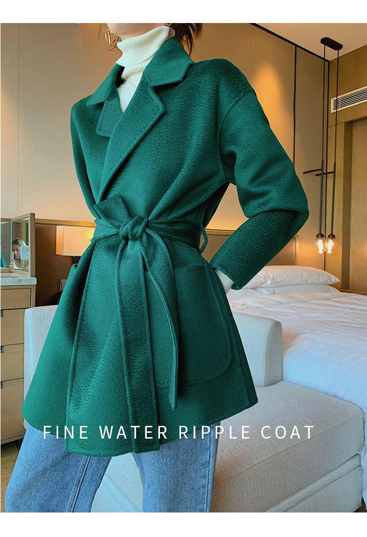 2024 가을과 겨울 물 파문 양면 양모 캐시미어 코트 여성용 중형 및 롱 나이트 가운 바람 느슨한 울 코트