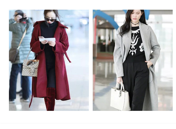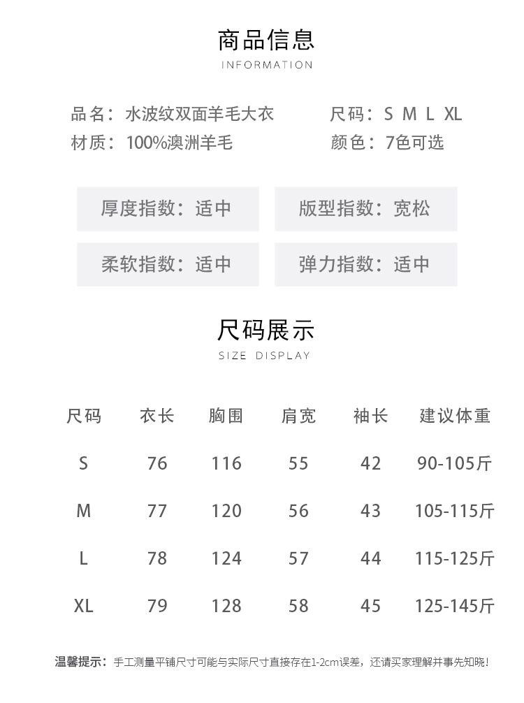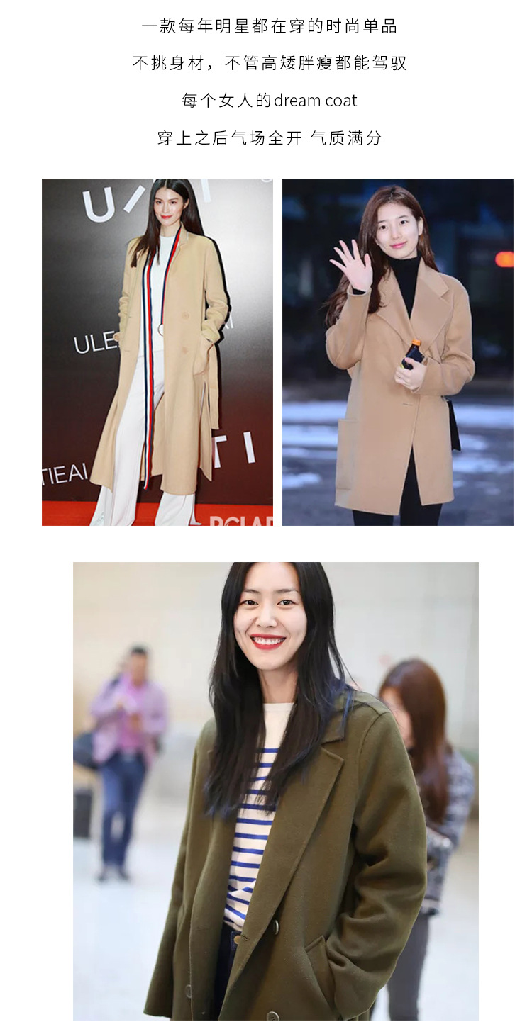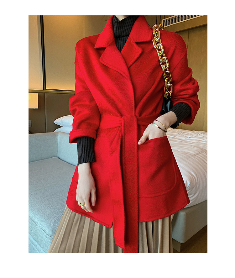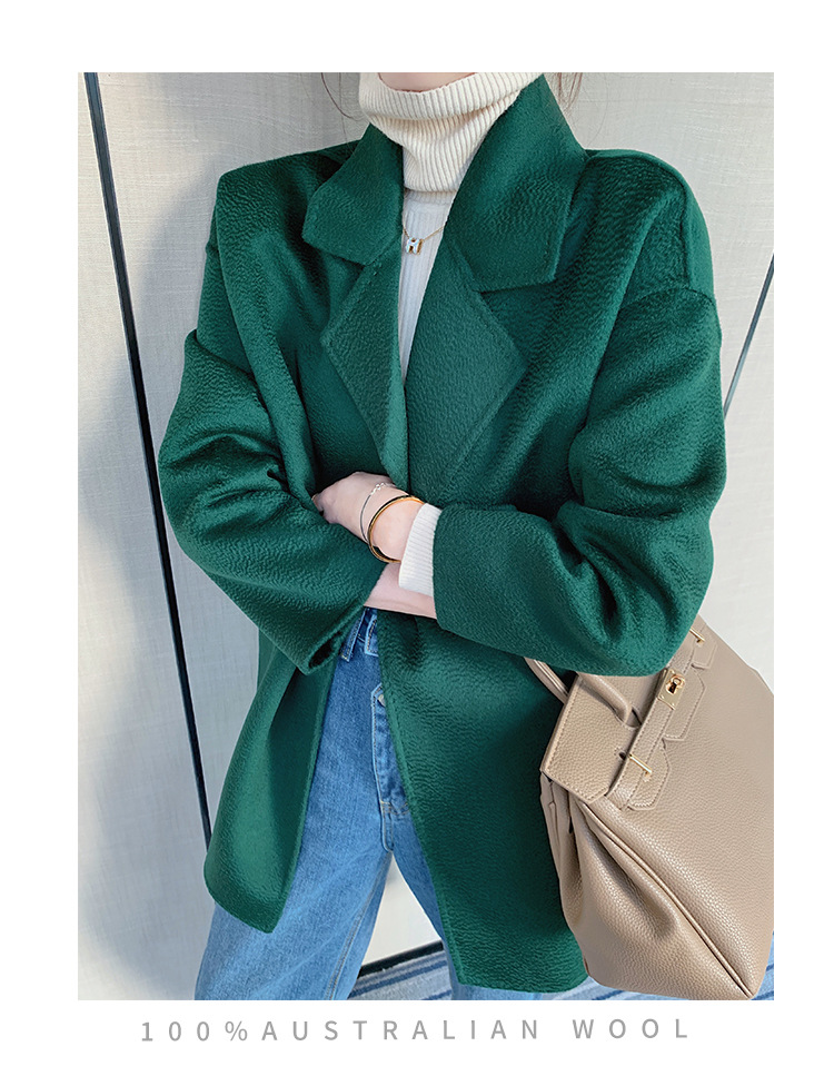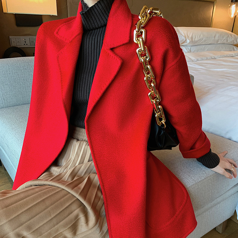 2024 가을과 겨울 물 파문 양면 양모 캐시미어 코트 여성용 중형 및 롱 나이트 가운 바람 느슨한 울 코트
