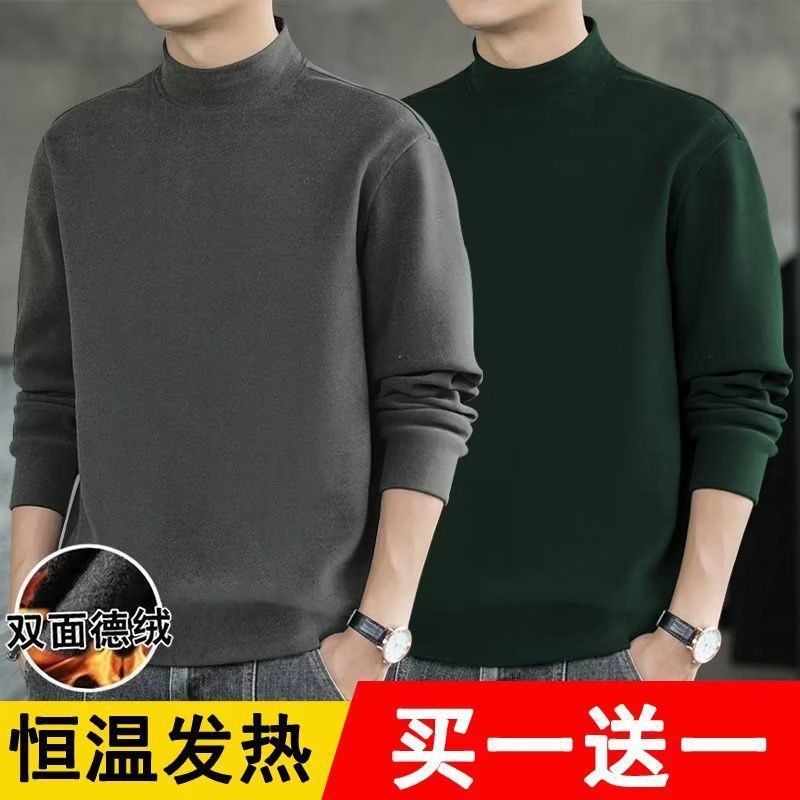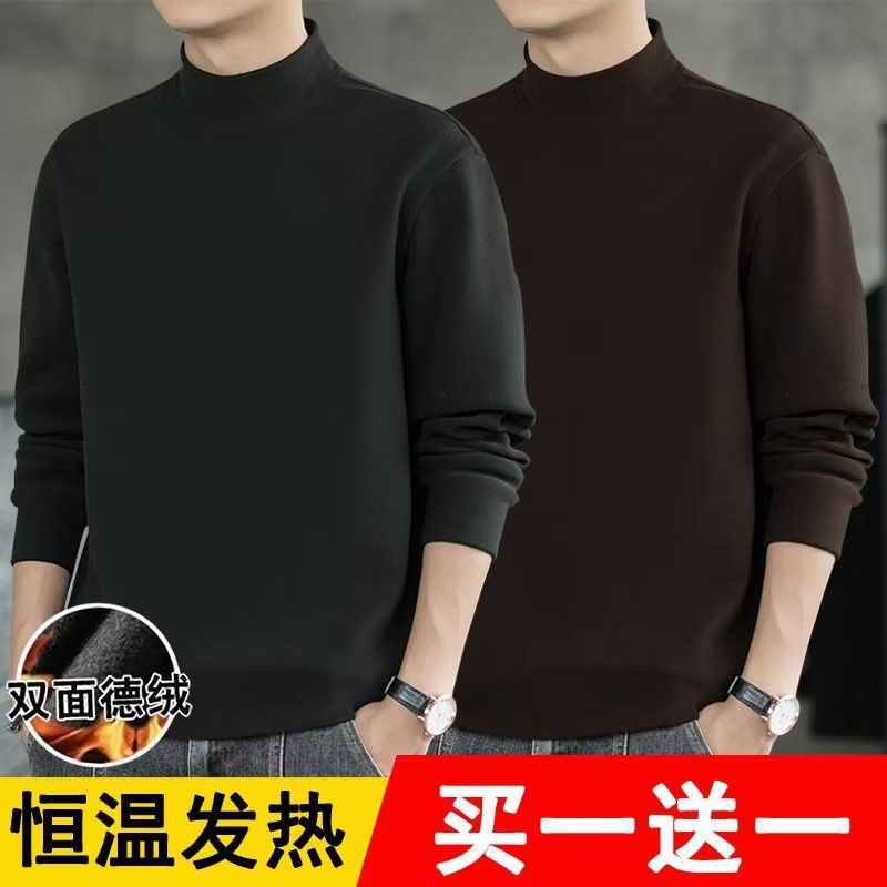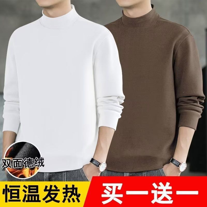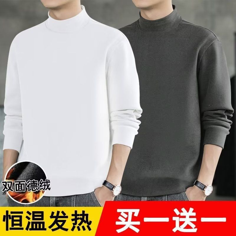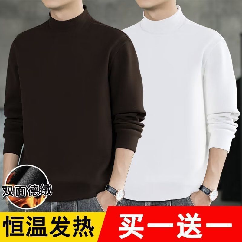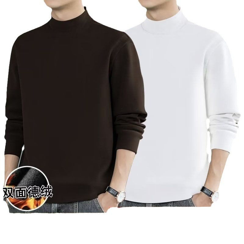 반높이 칼라베이스 셔츠 남자 양면 기모 열 속옷 내복 슬림핏 긴팔 티셔츠 가을과 겨울 올매치