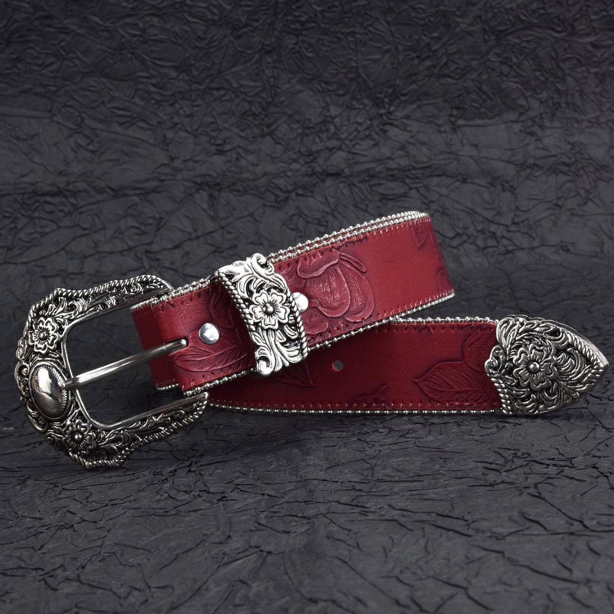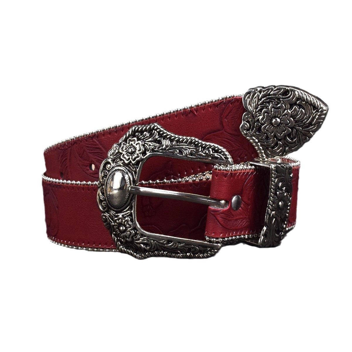 국경을 넘는 인기 보헤미안 스타일 여성용 조각 버클 가죽 벨트 레트로 엠보싱 벨트 펑크 청바지