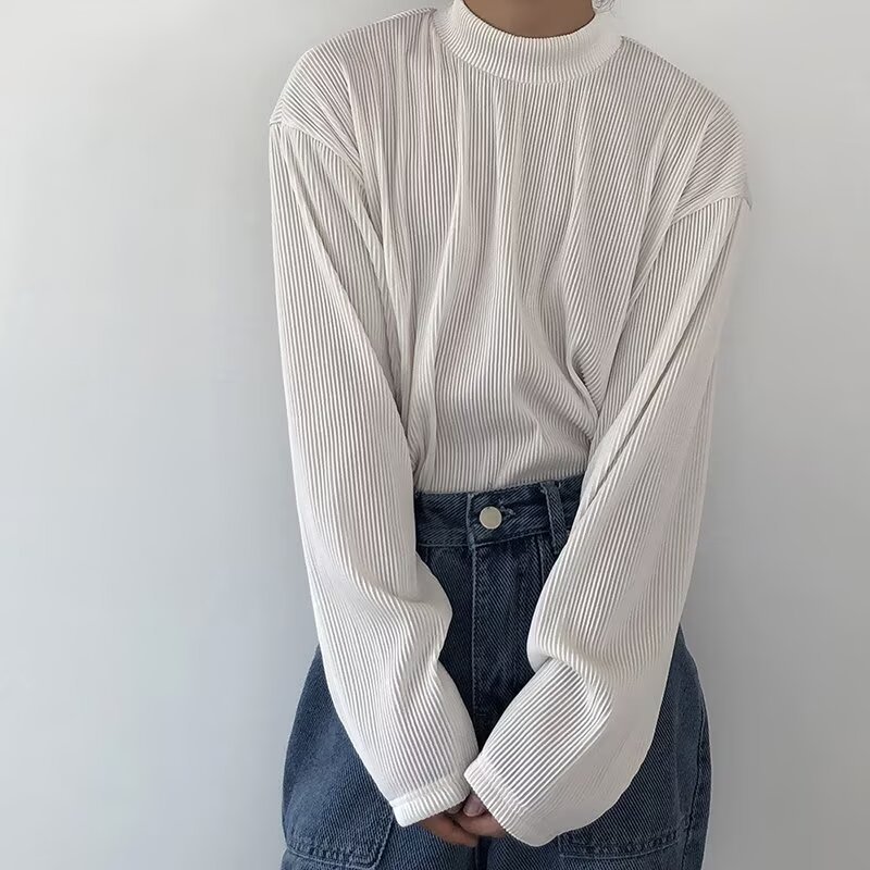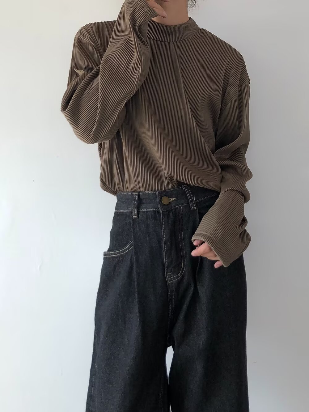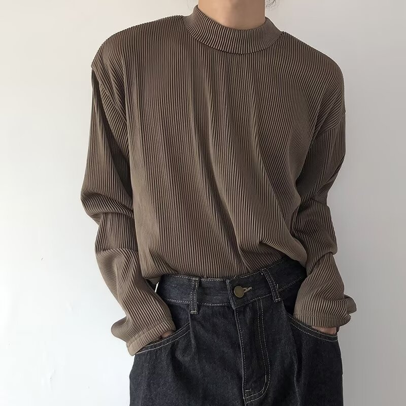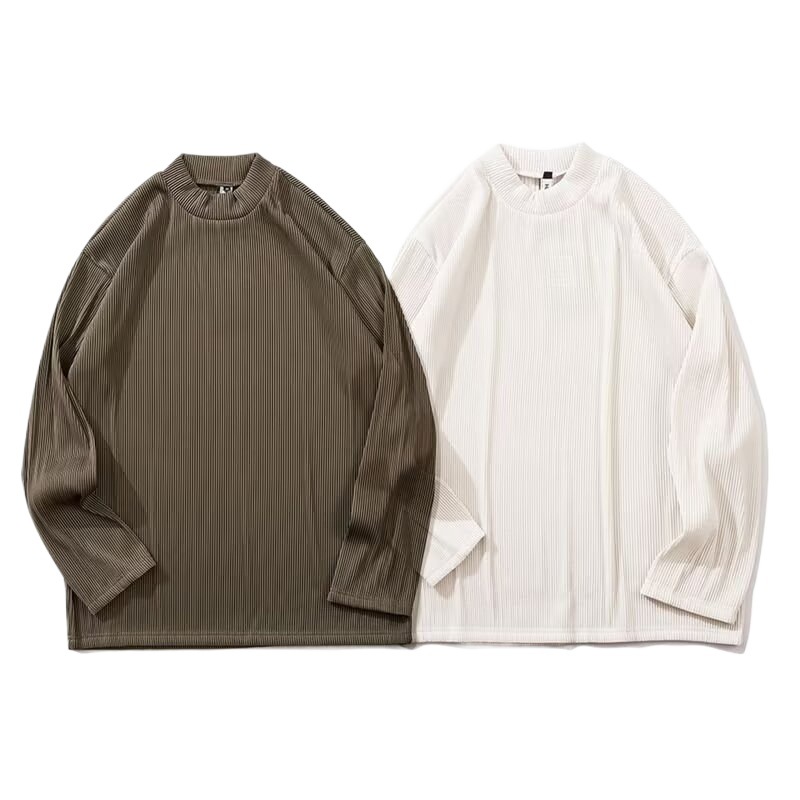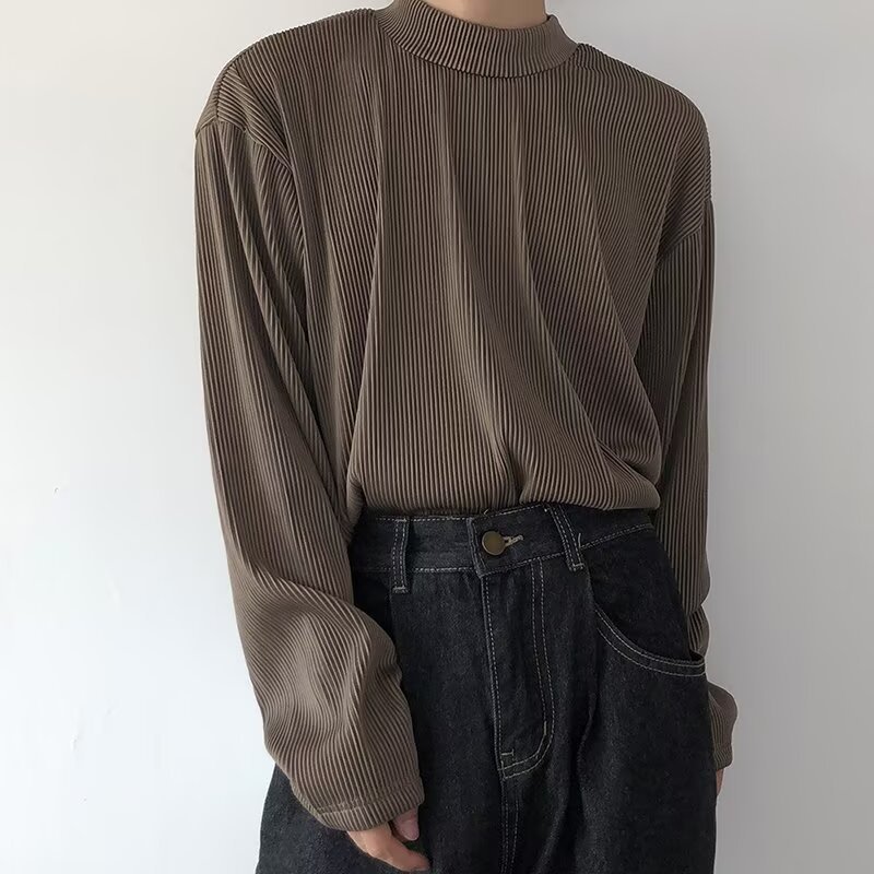 가벼운 성숙한 스타일 긴팔 티셔츠 남성용 반 높이 칼라 유행 브랜드 라운드 넥 가을 내베이스 셔츠 루즈 탑 패션