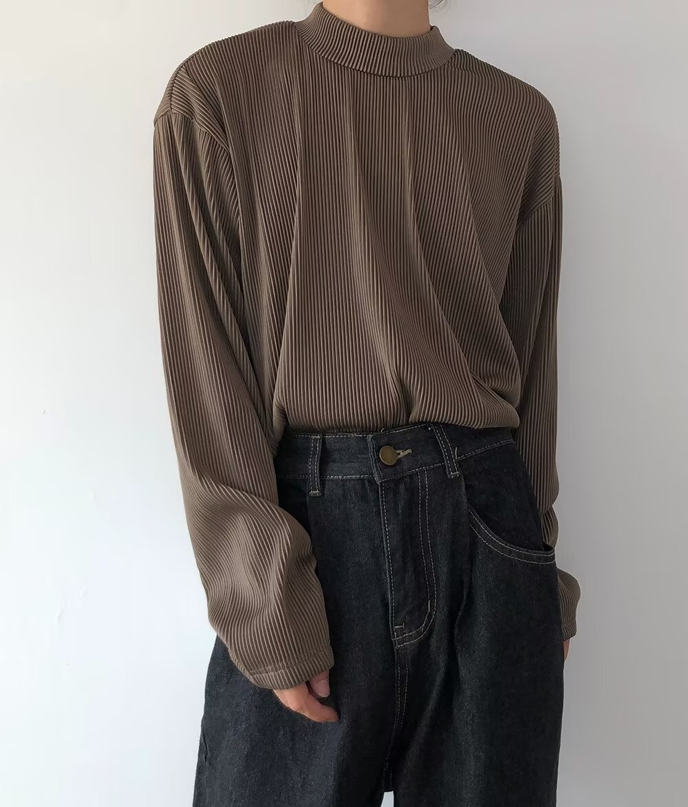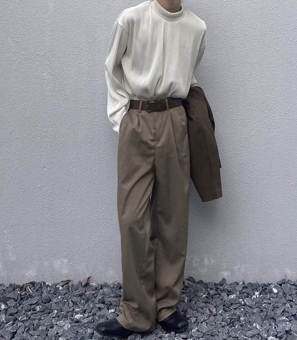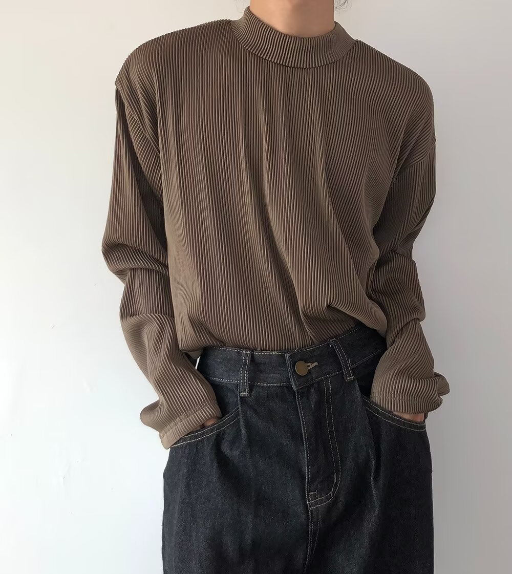 가벼운 성숙한 스타일 긴팔 티셔츠 남성용 반 높이 칼라 유행 브랜드 라운드 넥 가을 내베이스 셔츠 루즈 탑 패션