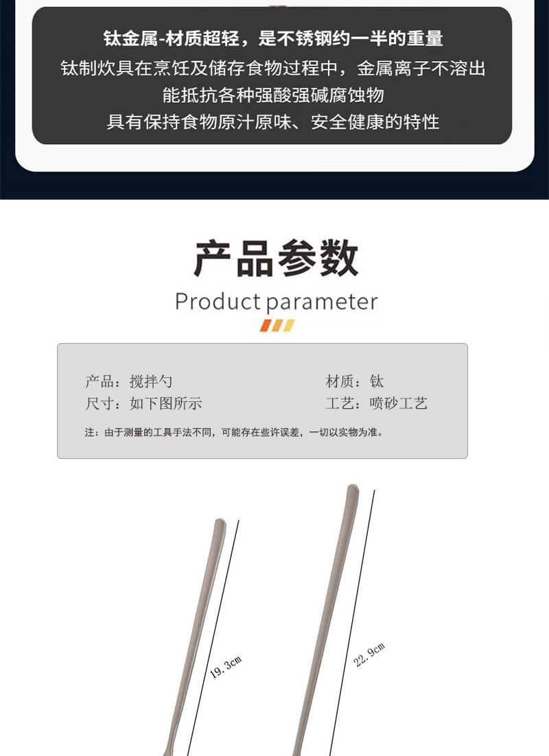 순수 티타늄 짧은 손잡이 믹싱 스푼