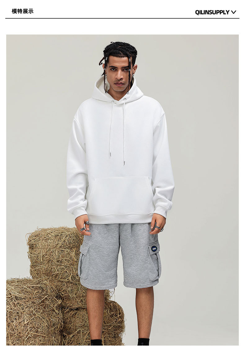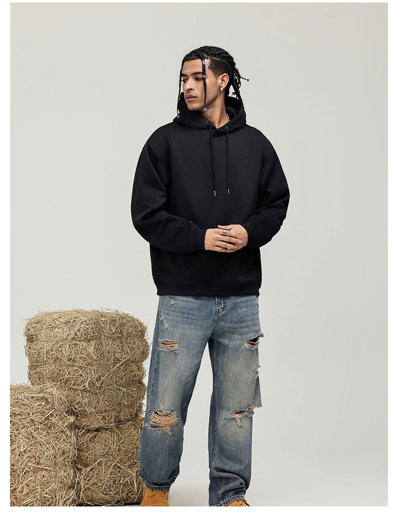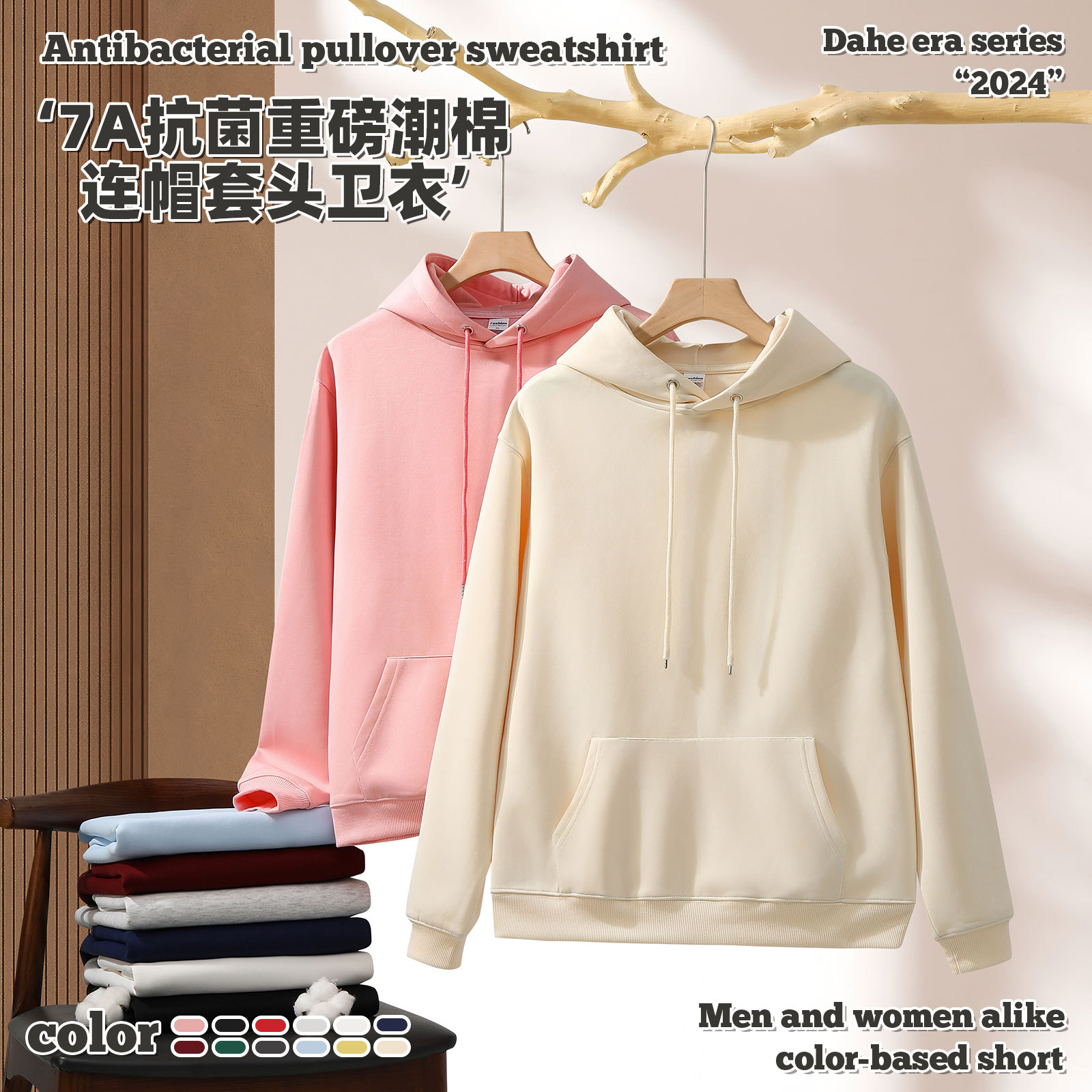 가을과 겨울 새로운 7A 항균 조수면 스웨터 코트 어깨 캐주얼 후드 풀오버 후드 330G 무거운 남성 의류