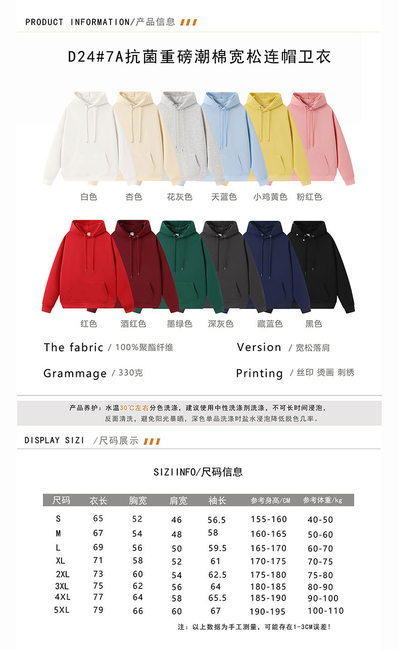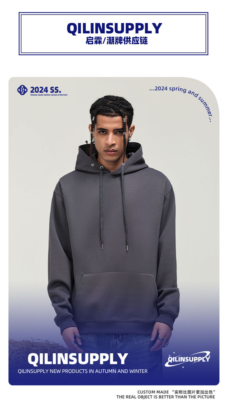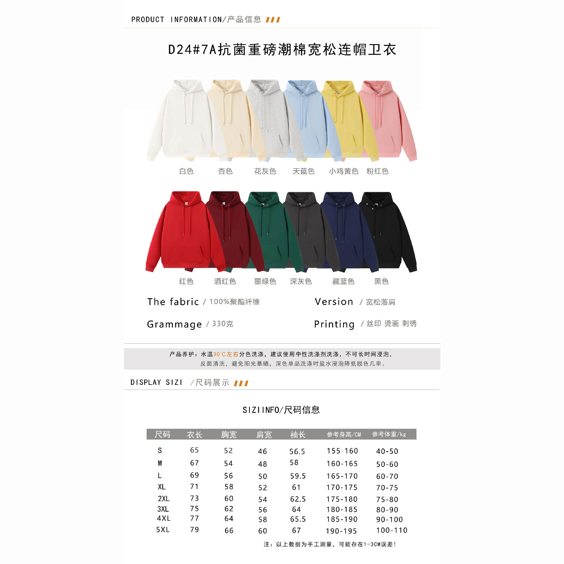가을과 겨울 새로운 7A 항균 조수면 스웨터 코트 어깨 캐주얼 후드 풀오버 후드 330G 무거운 남성 의류