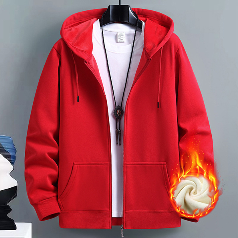 헤비 플리스 안감 후드티 남성용 한국 스타일 트렌디 후드 스포츠 셔츠 남학생용 자켓